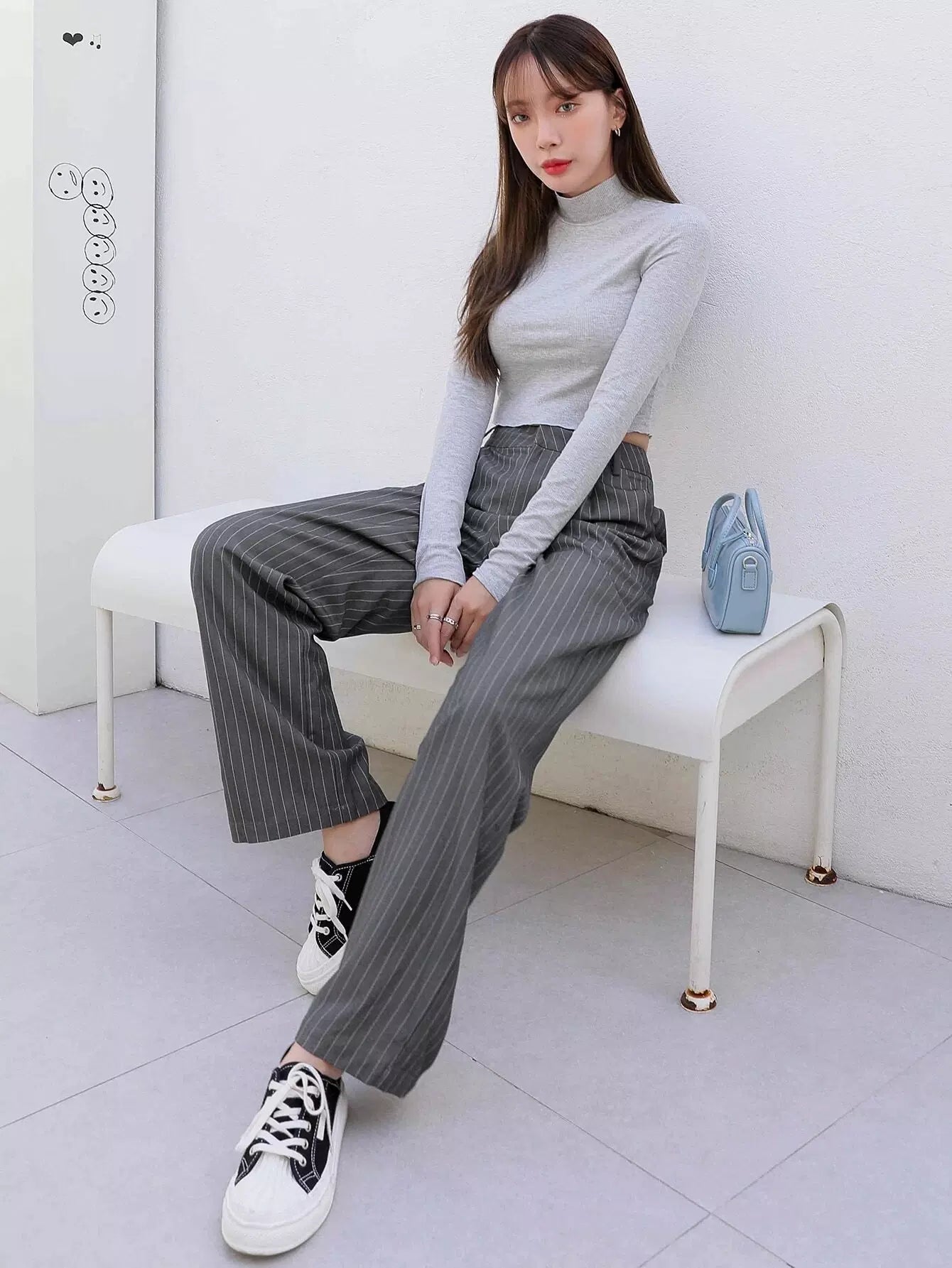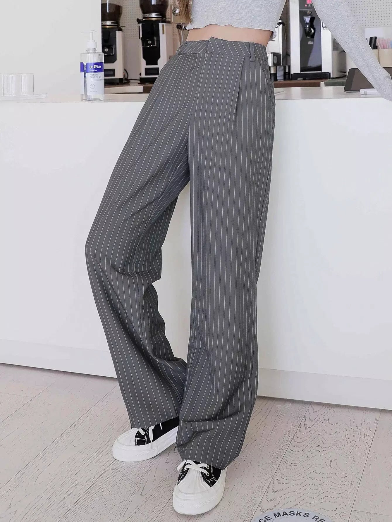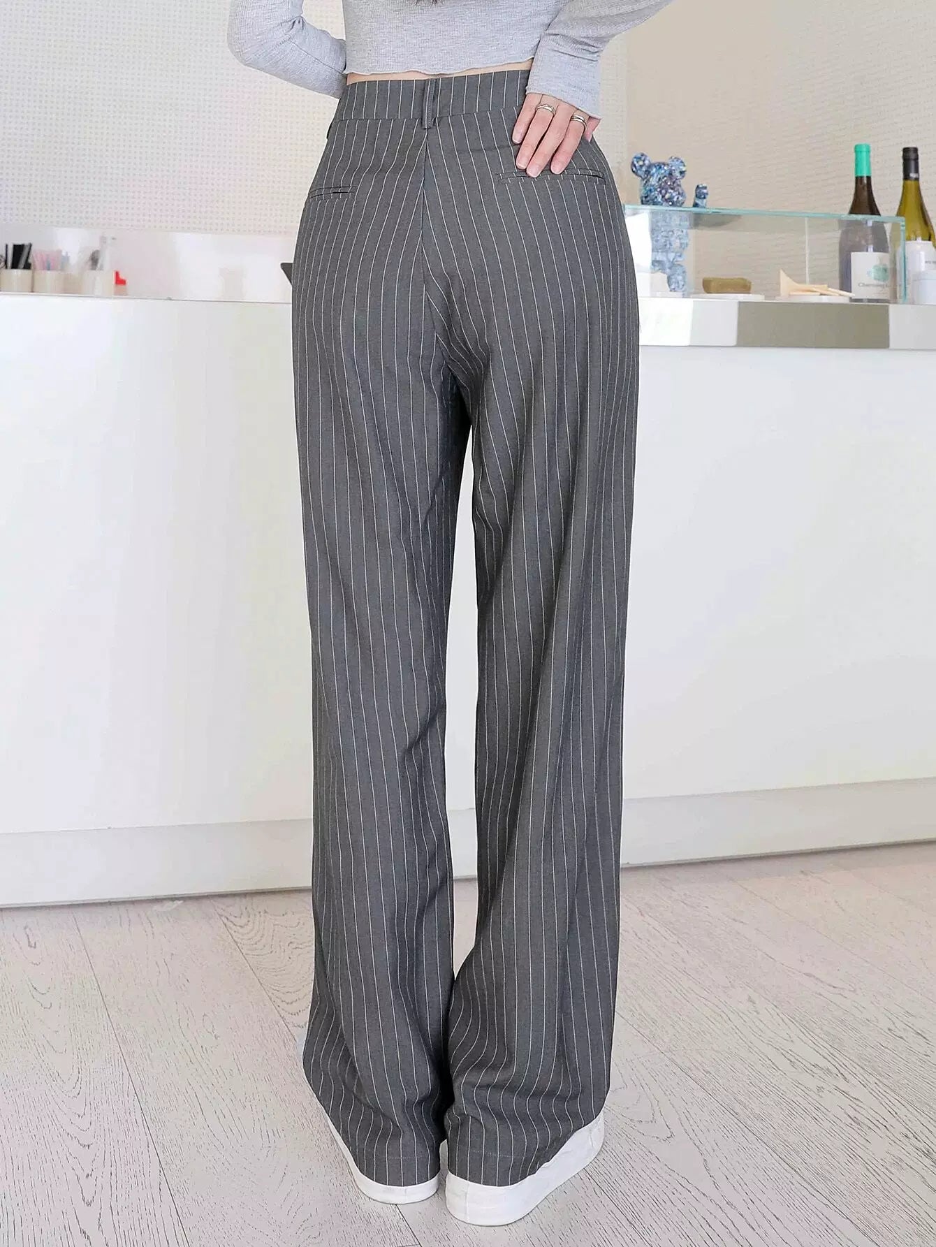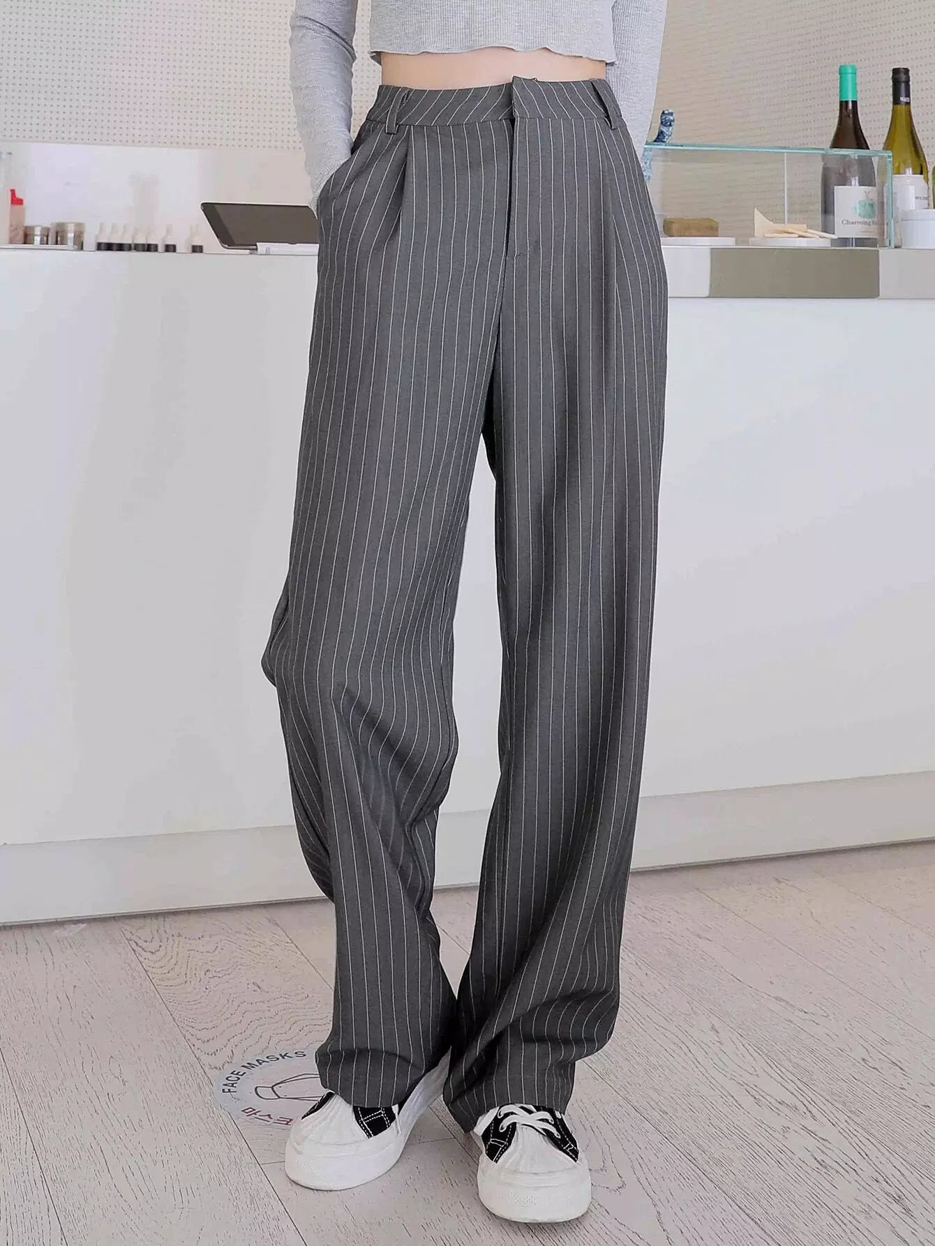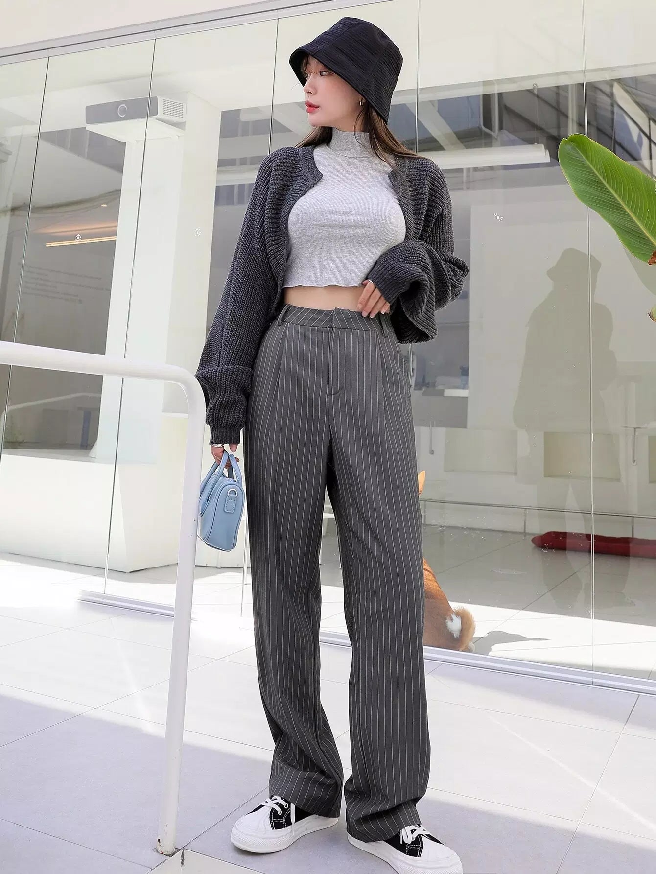 بنطلون مُفصل بطباعة خطوط رفيعة مع طيات أمامية