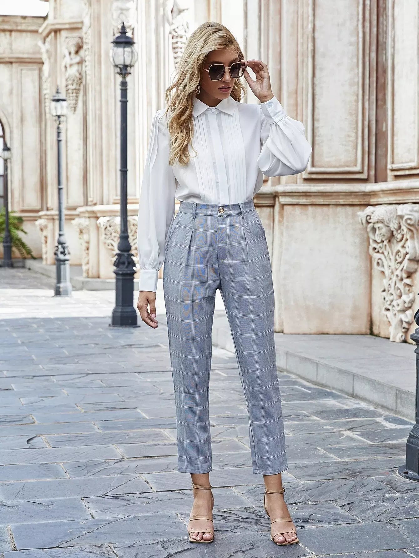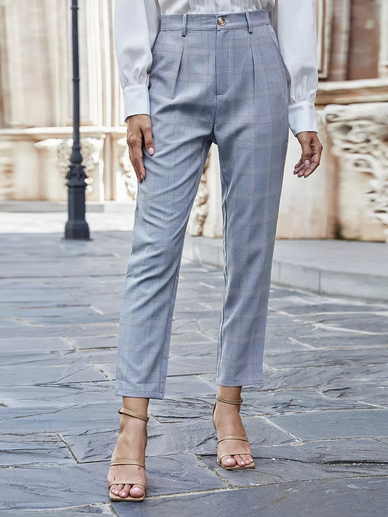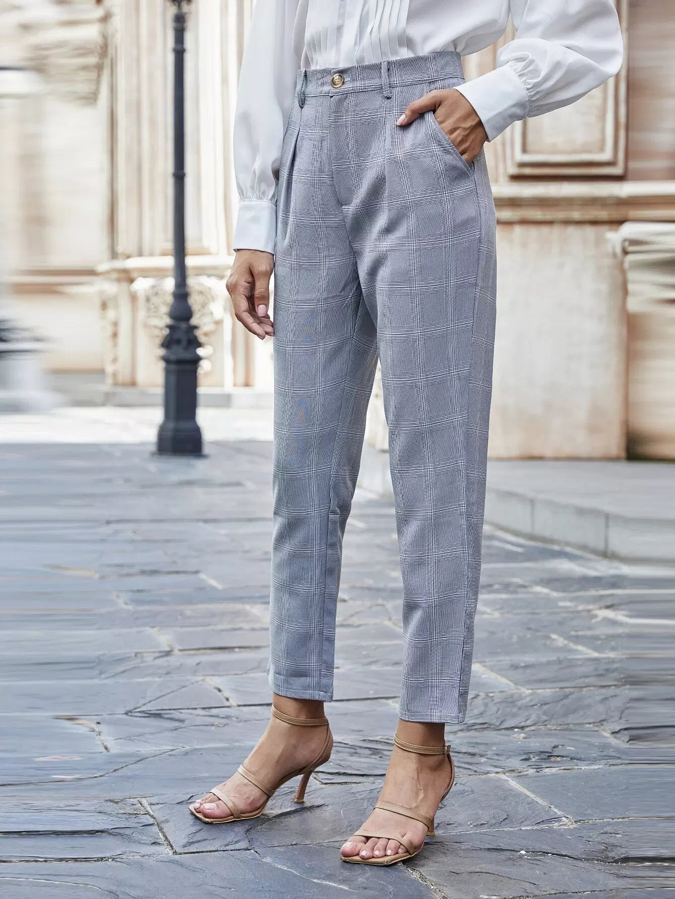 النساء - بنطال خياط منقوش عالي الارتفاع