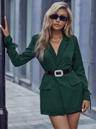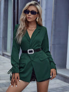 فستان بلايزر بياقة ياقة سادة بياقة عقدة سادة بدون حزام