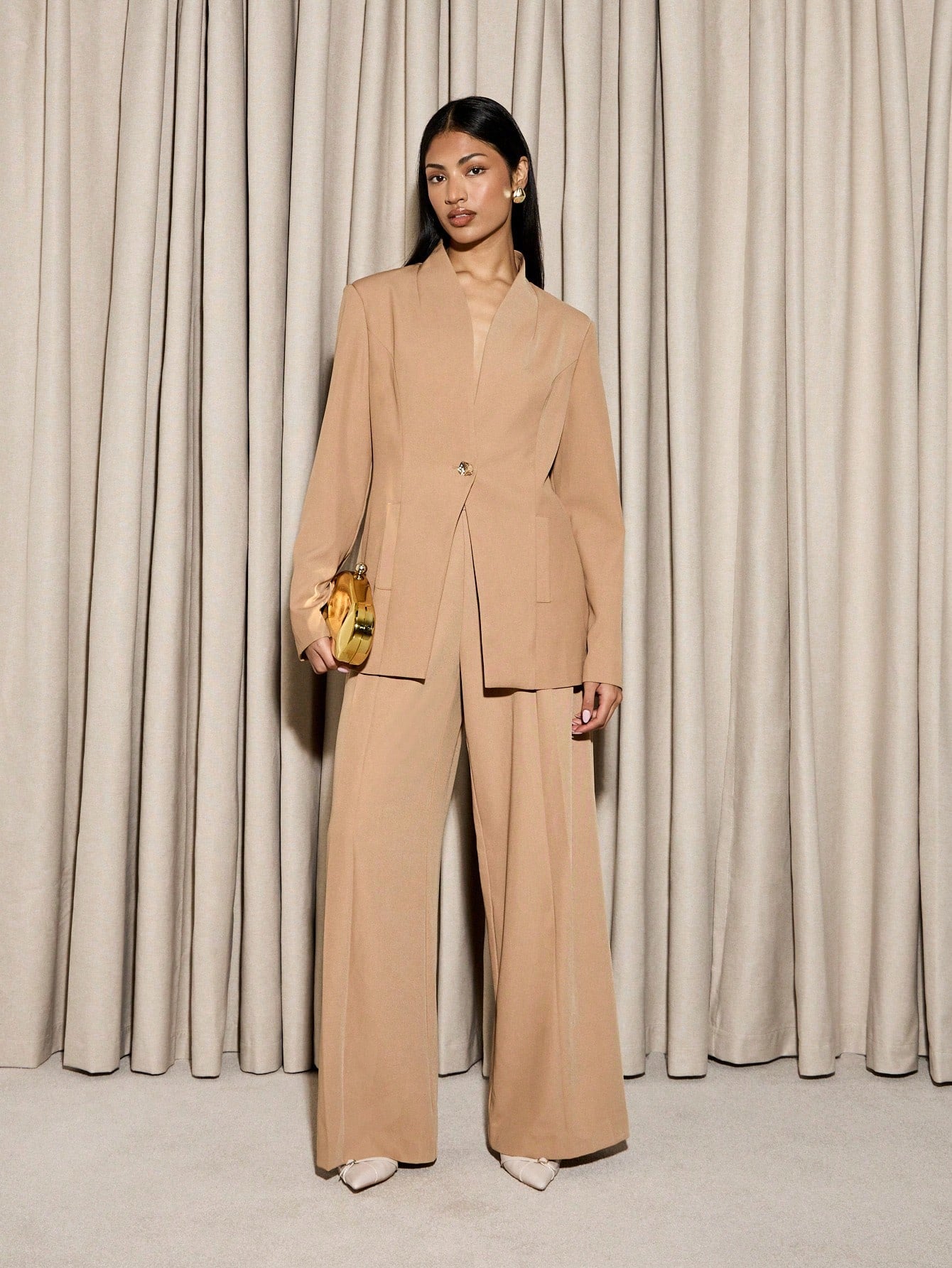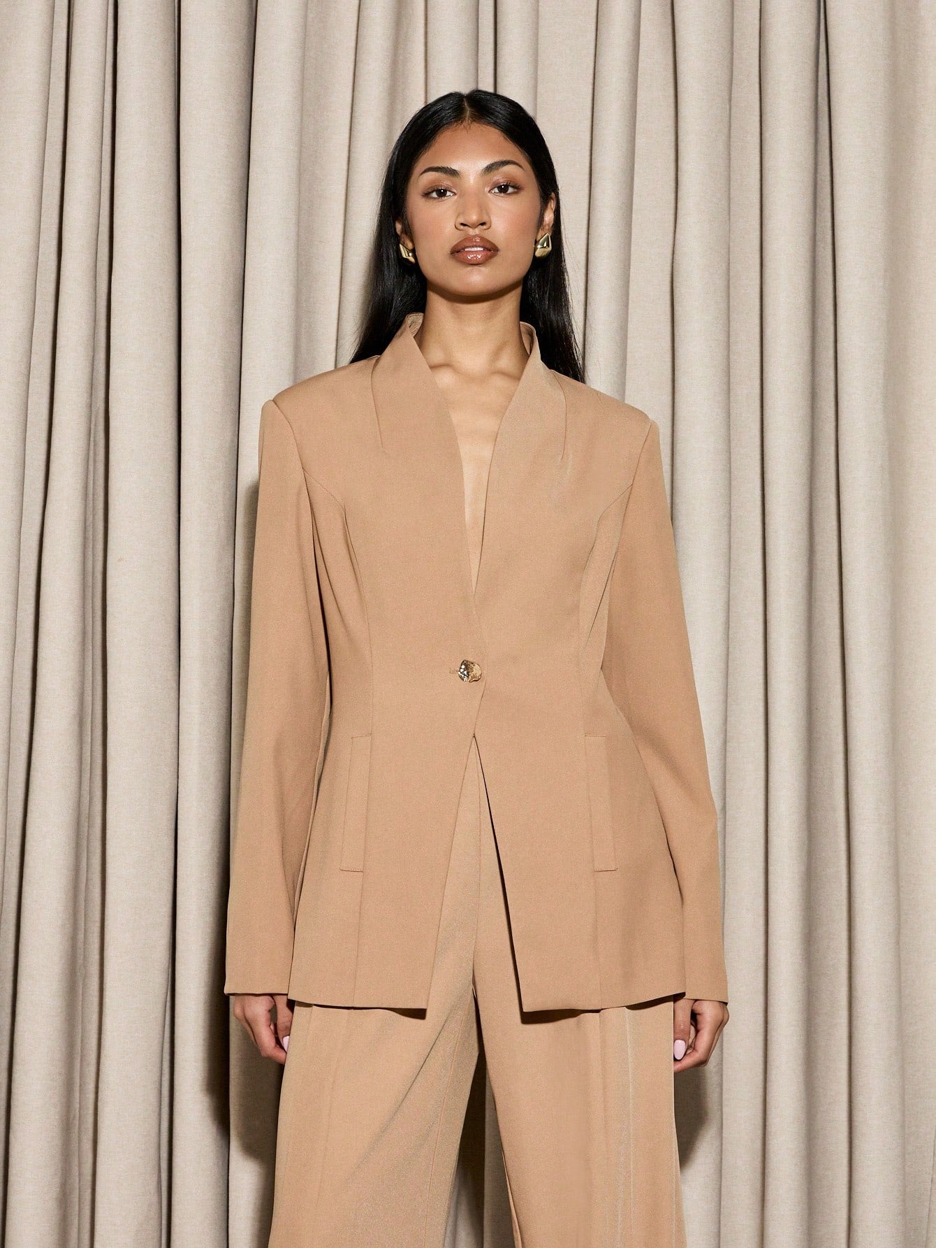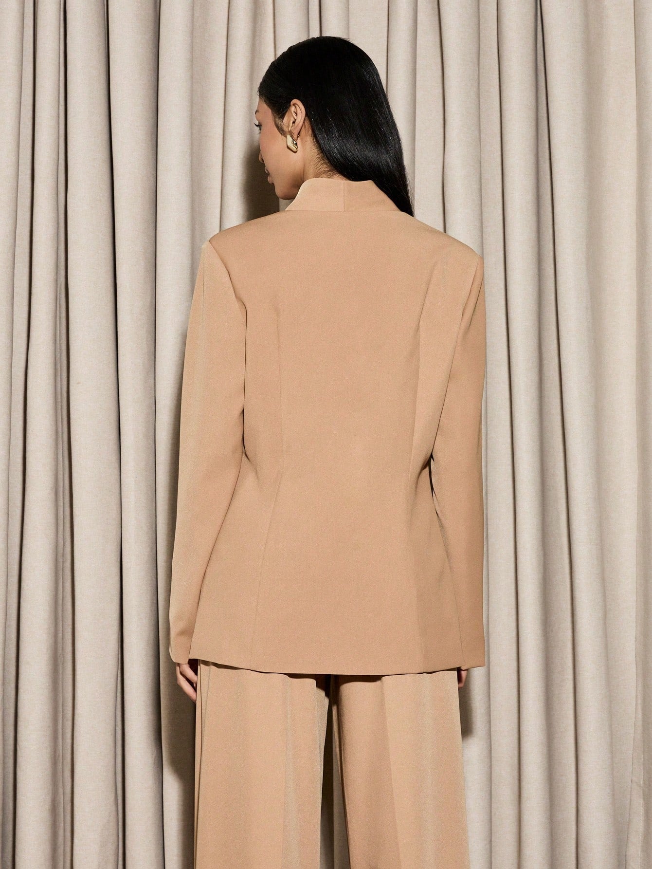 AiiRZ Professional Cross Over High Neck Blazer Single Button Office Wear Business Formal Tailored Suit