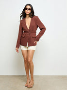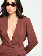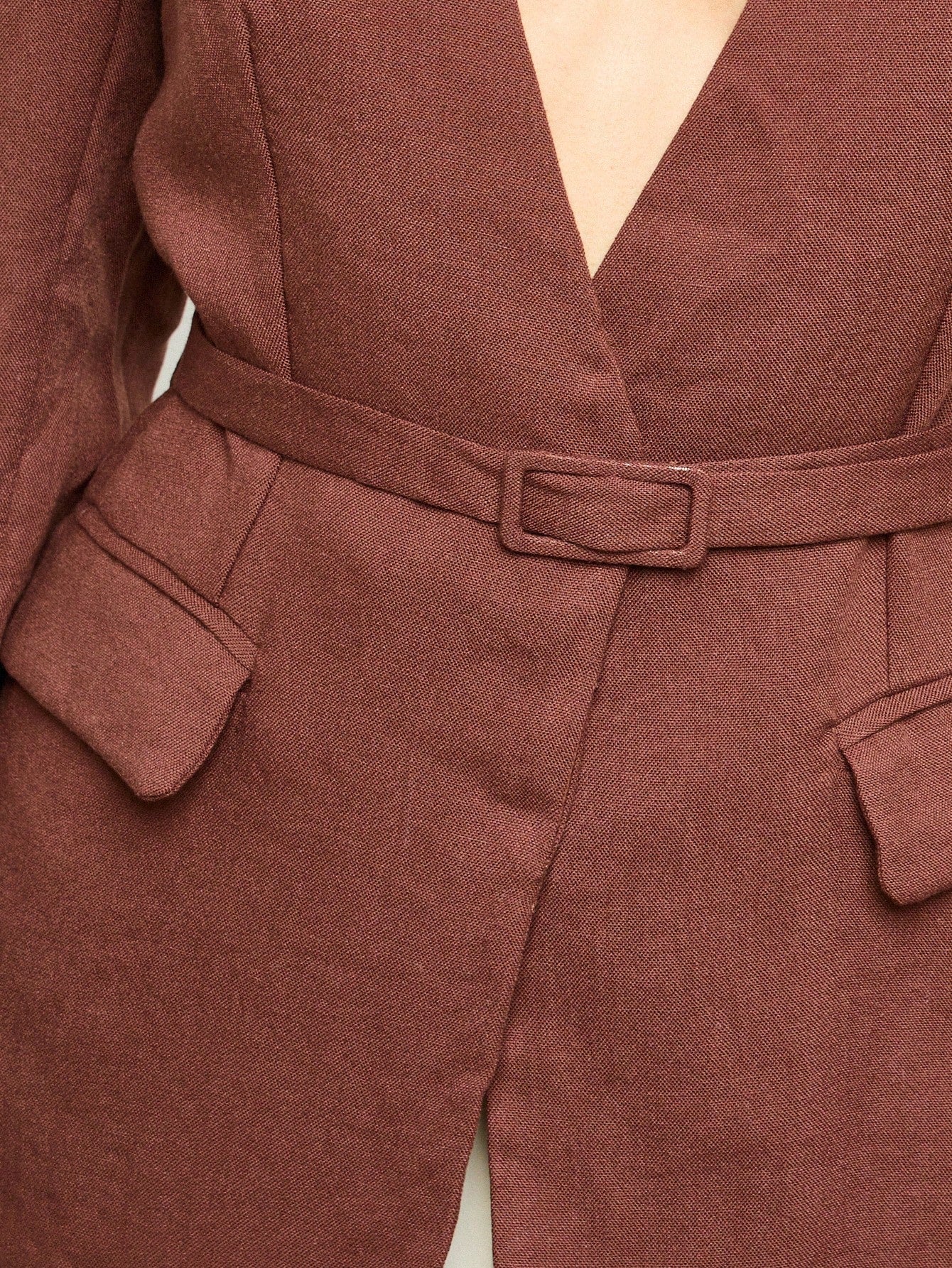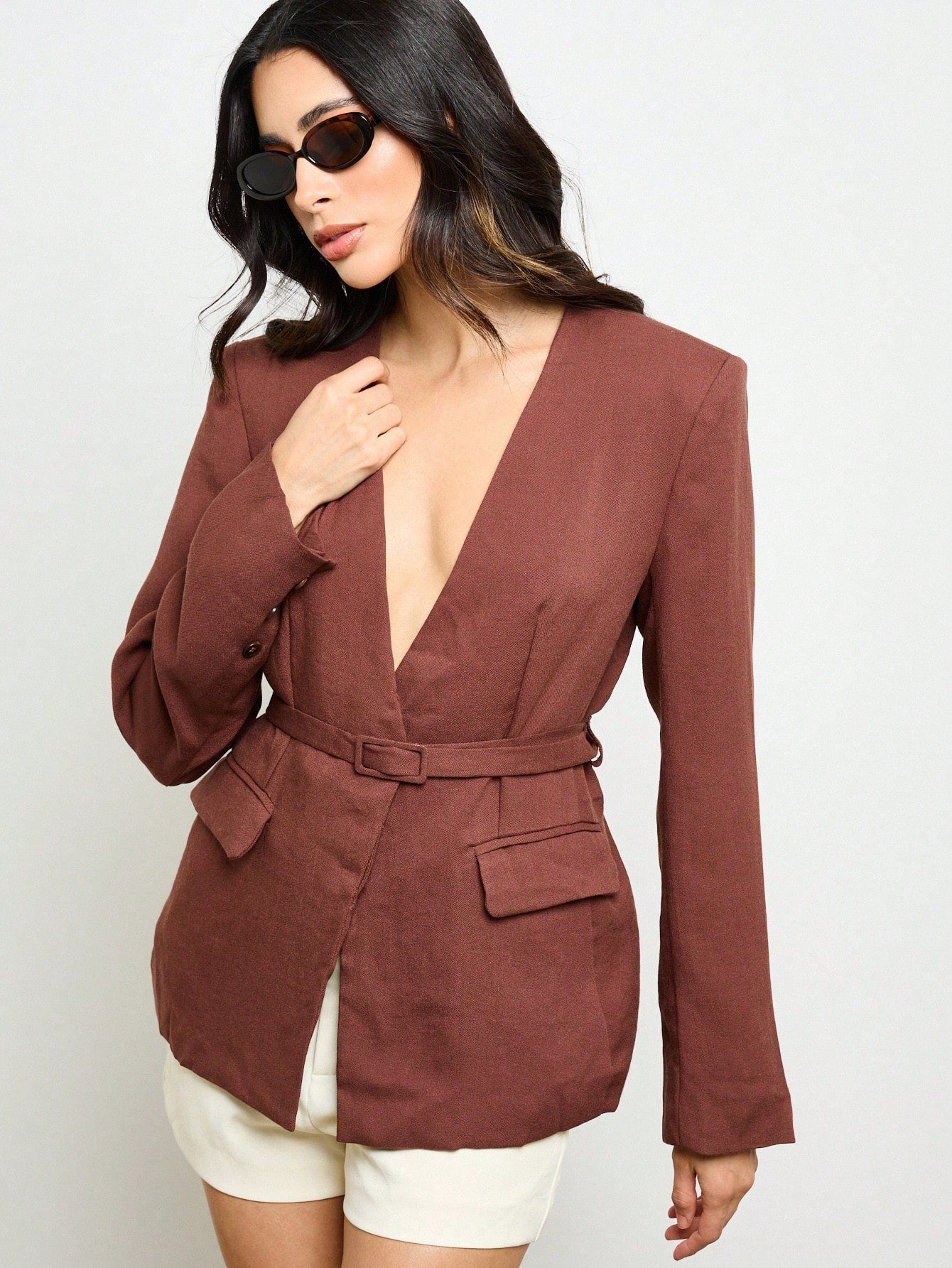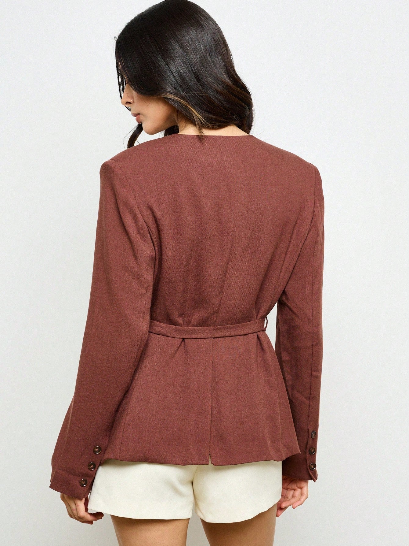 AiiRZ Professional Linen Suit Blazer Business Office Formal Belted Tailored Fall Winter Outerwear Fashion