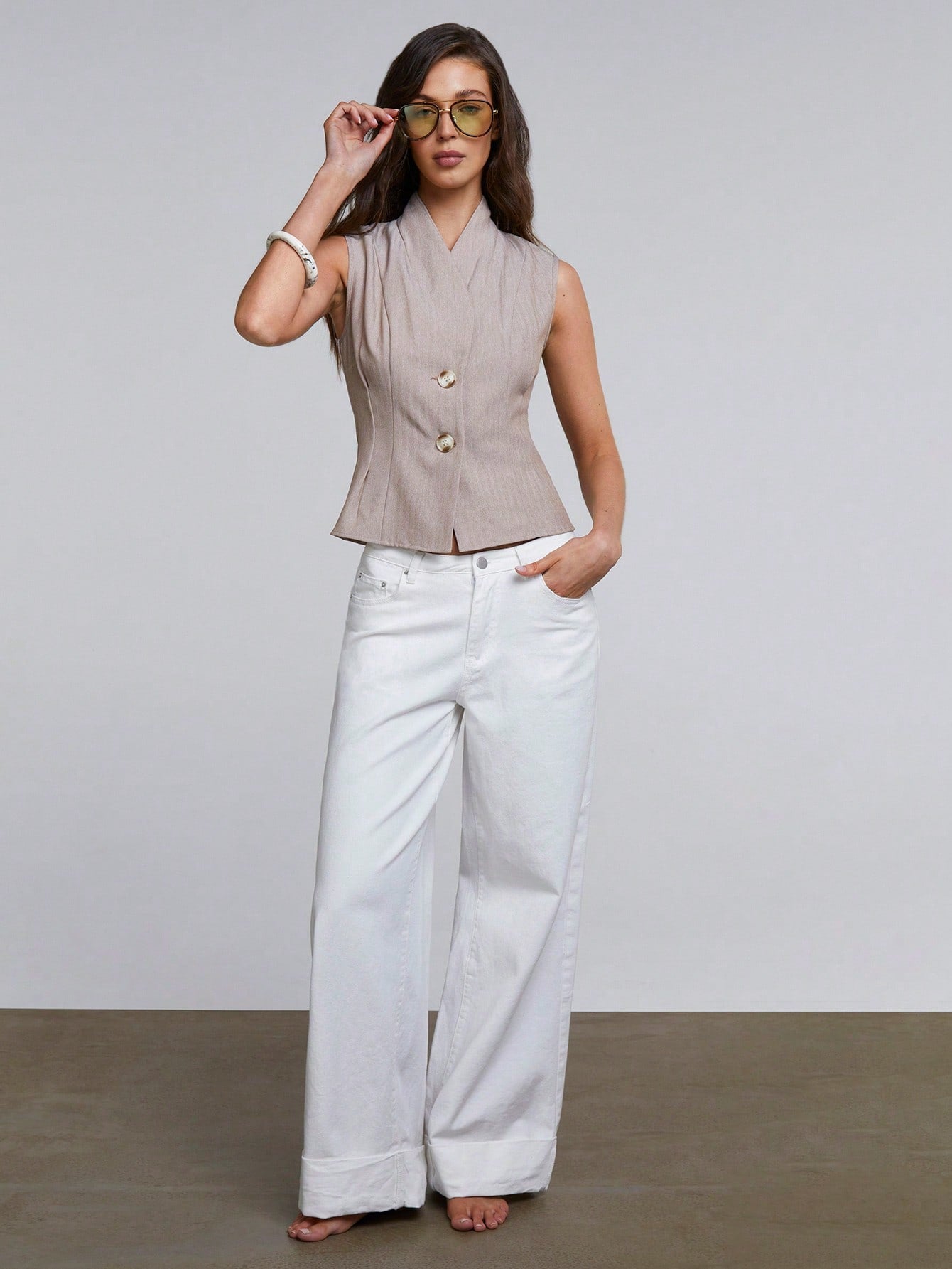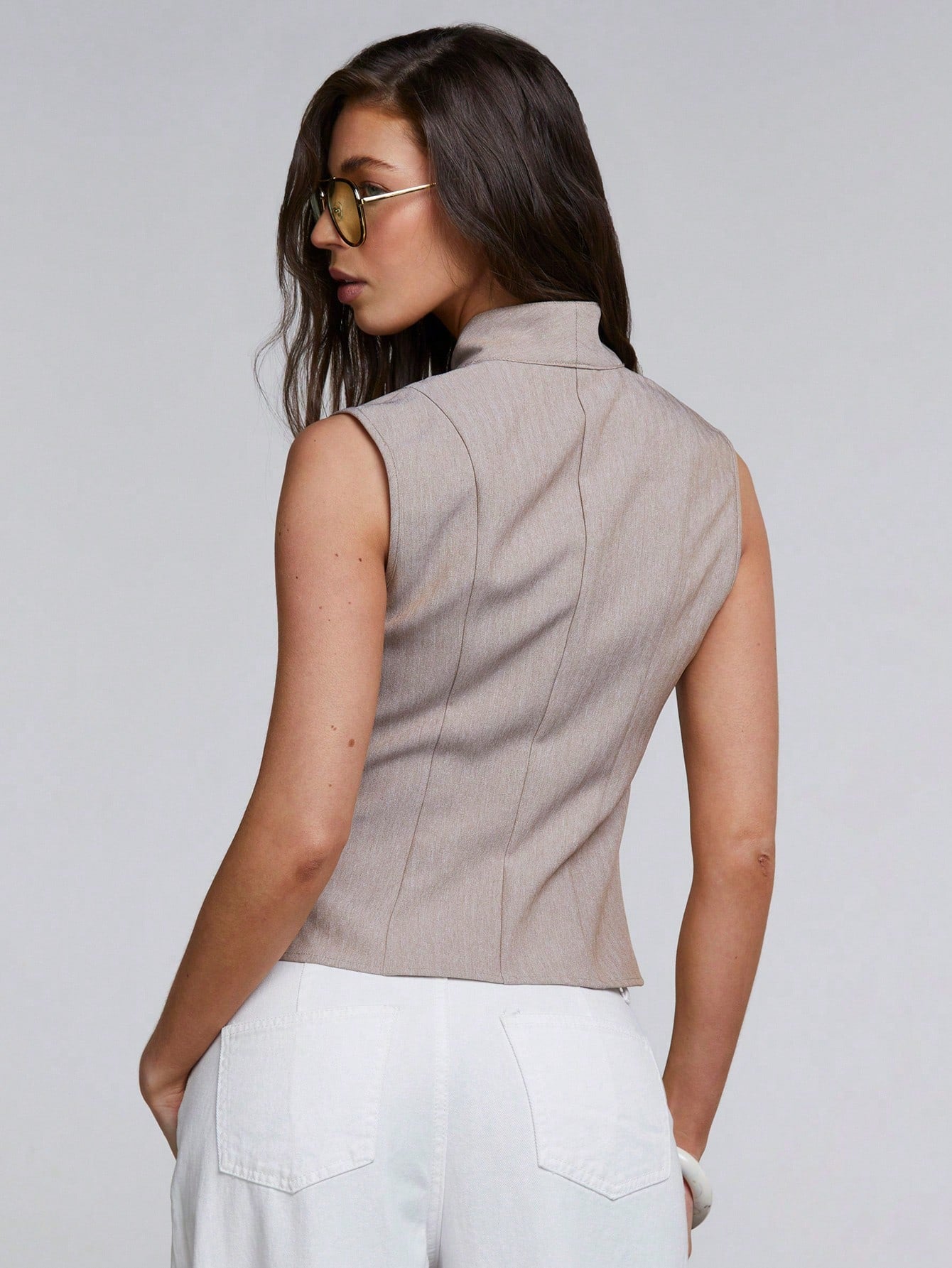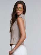 Athal Women's Mocha Brown Sleeveless Shawl Collar Blazer Vest: Casual, Regular Length, Woven Fabric