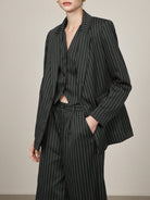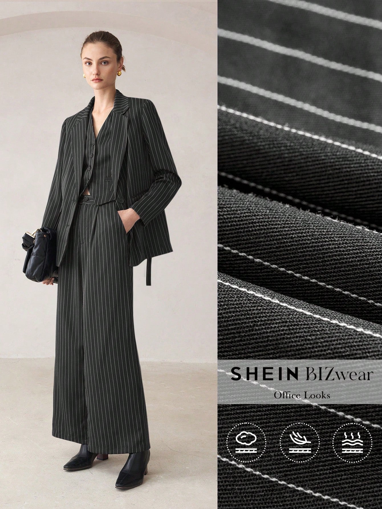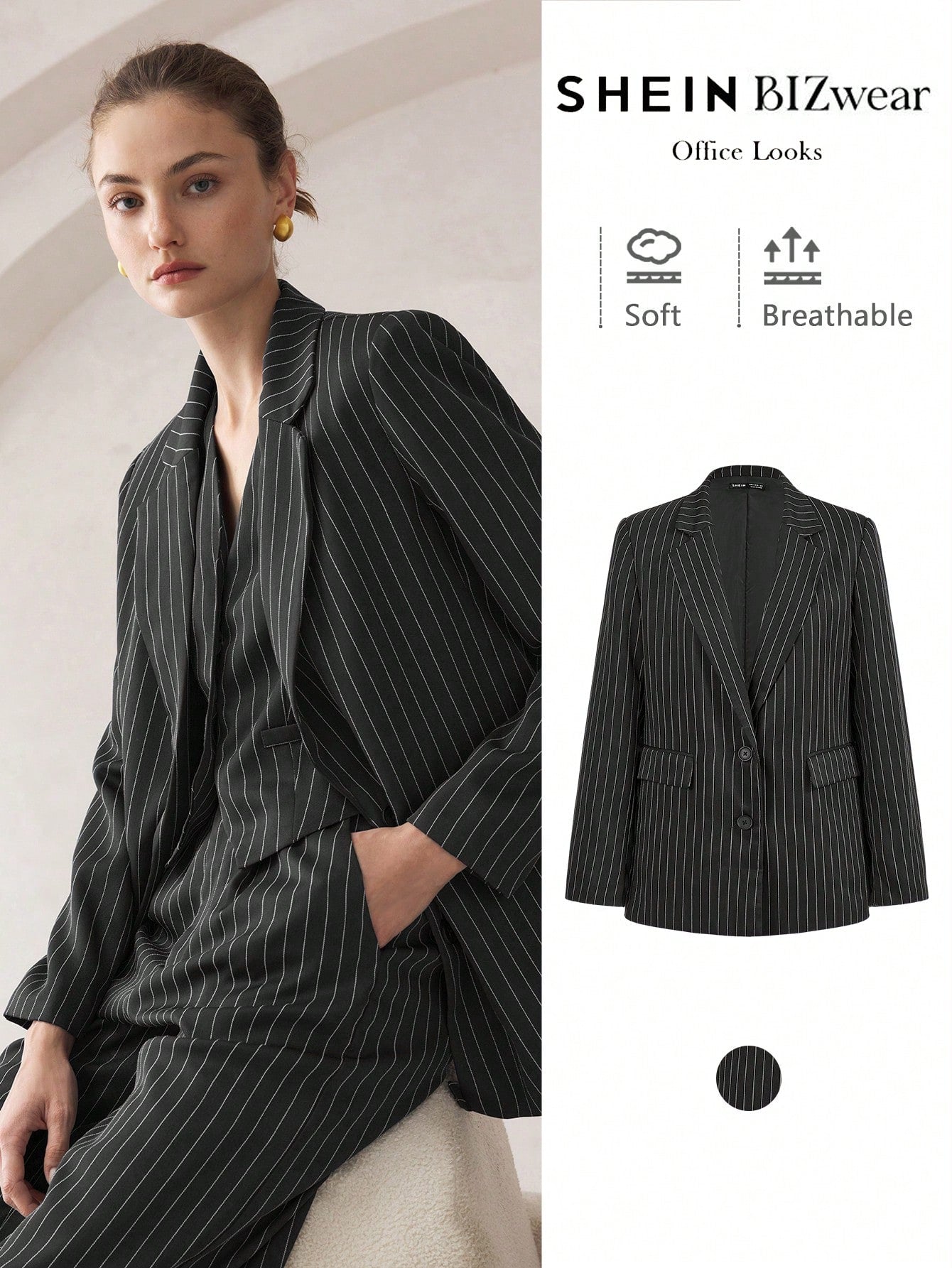 BizChic Women's Striped Print Lapel Collar Soft Blazer