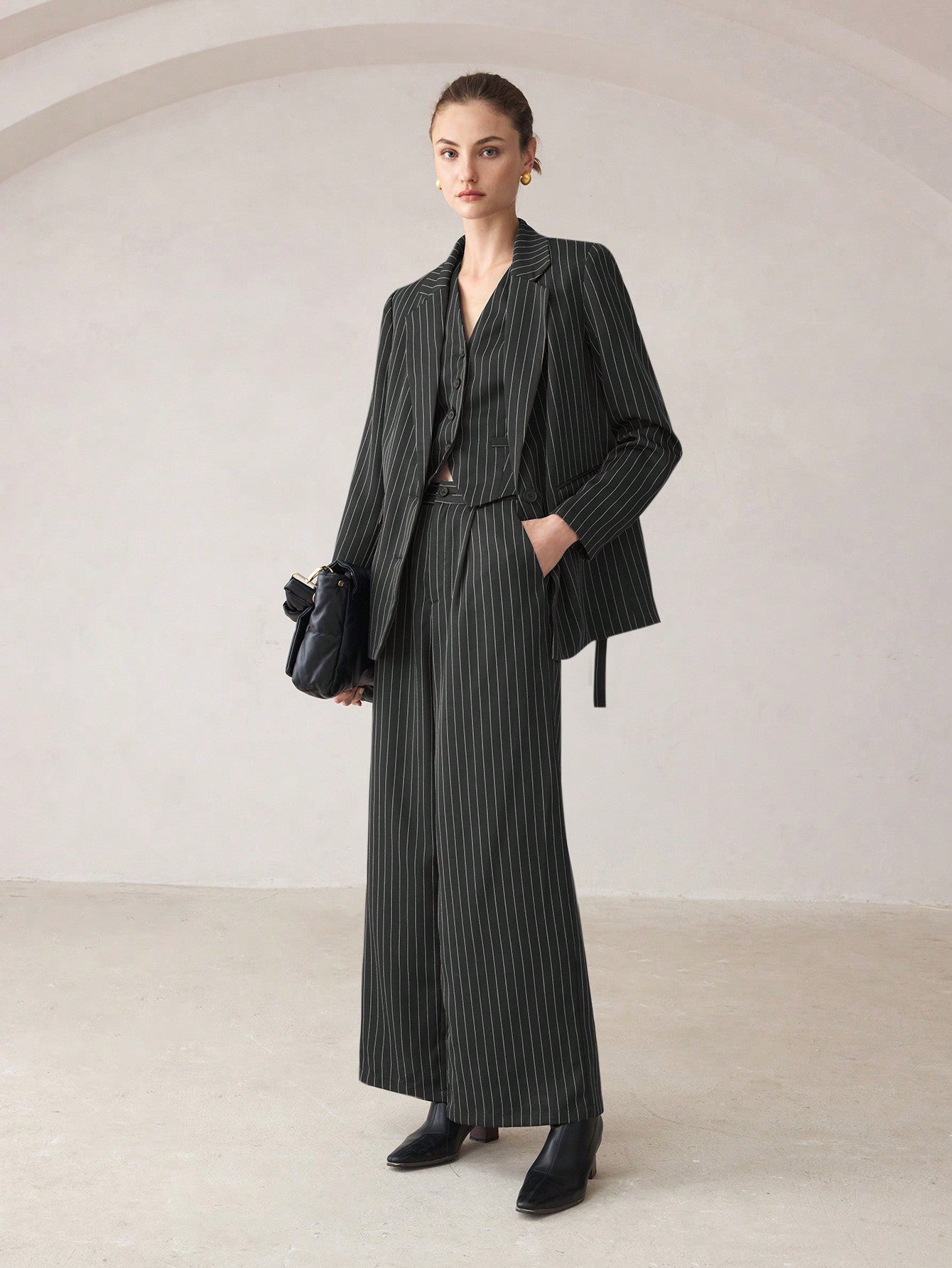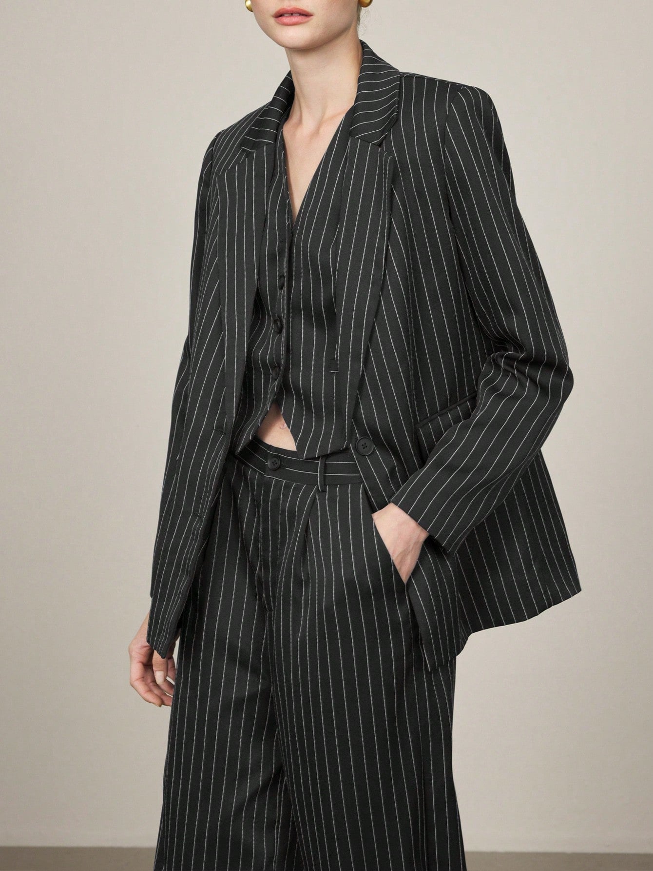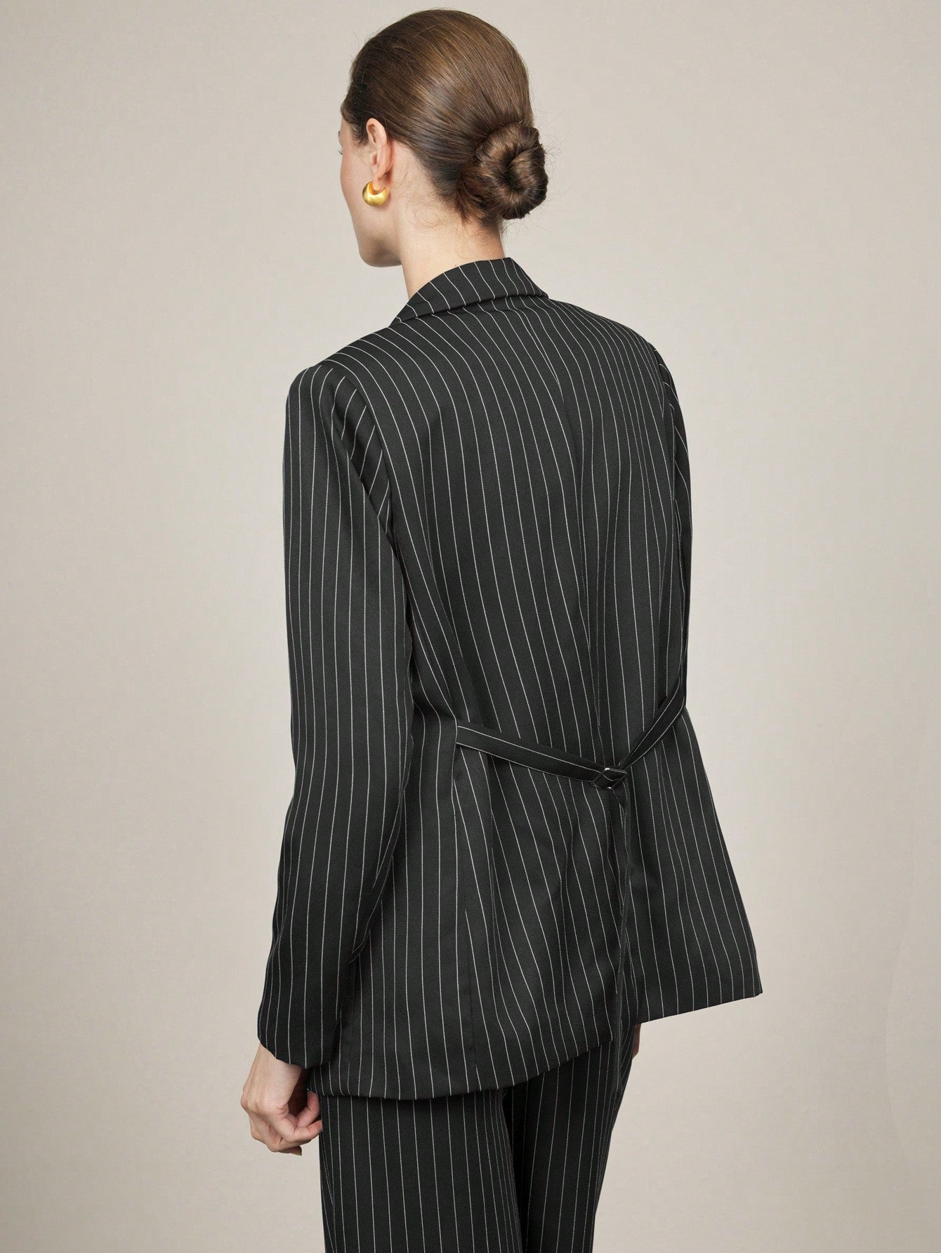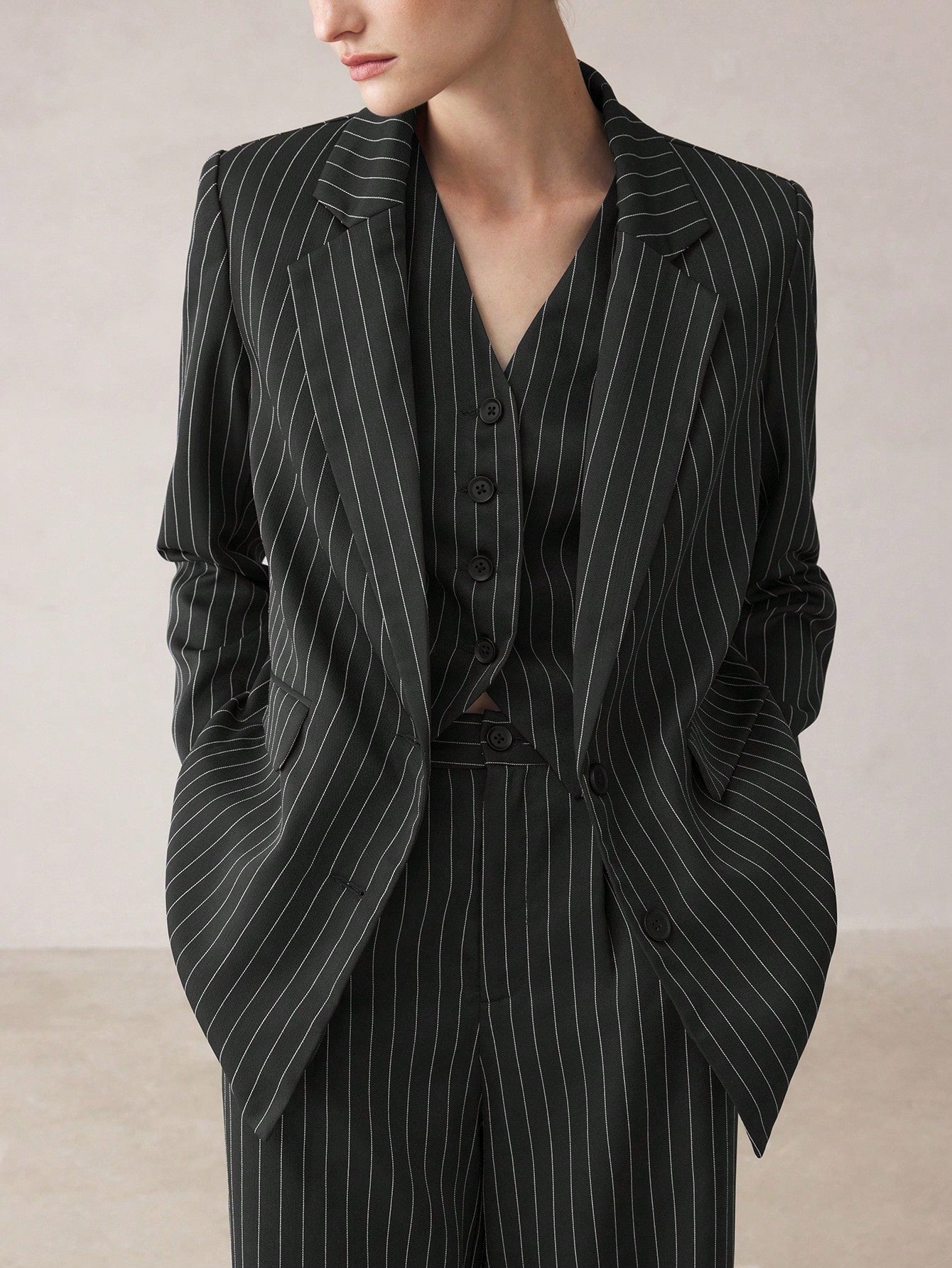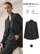 سترة نسائية ناعمة بياقة طية صدر مخططة من BizChic