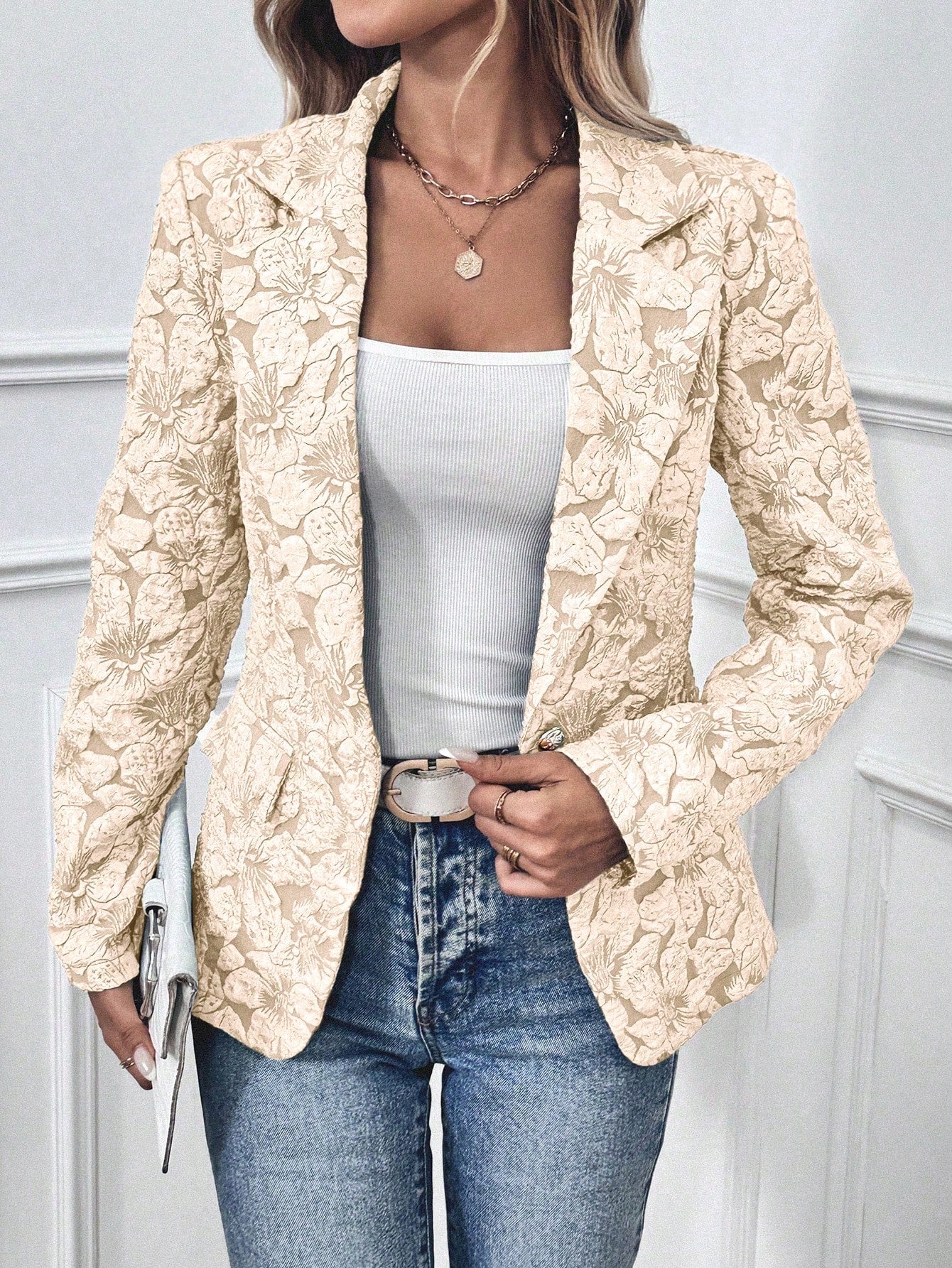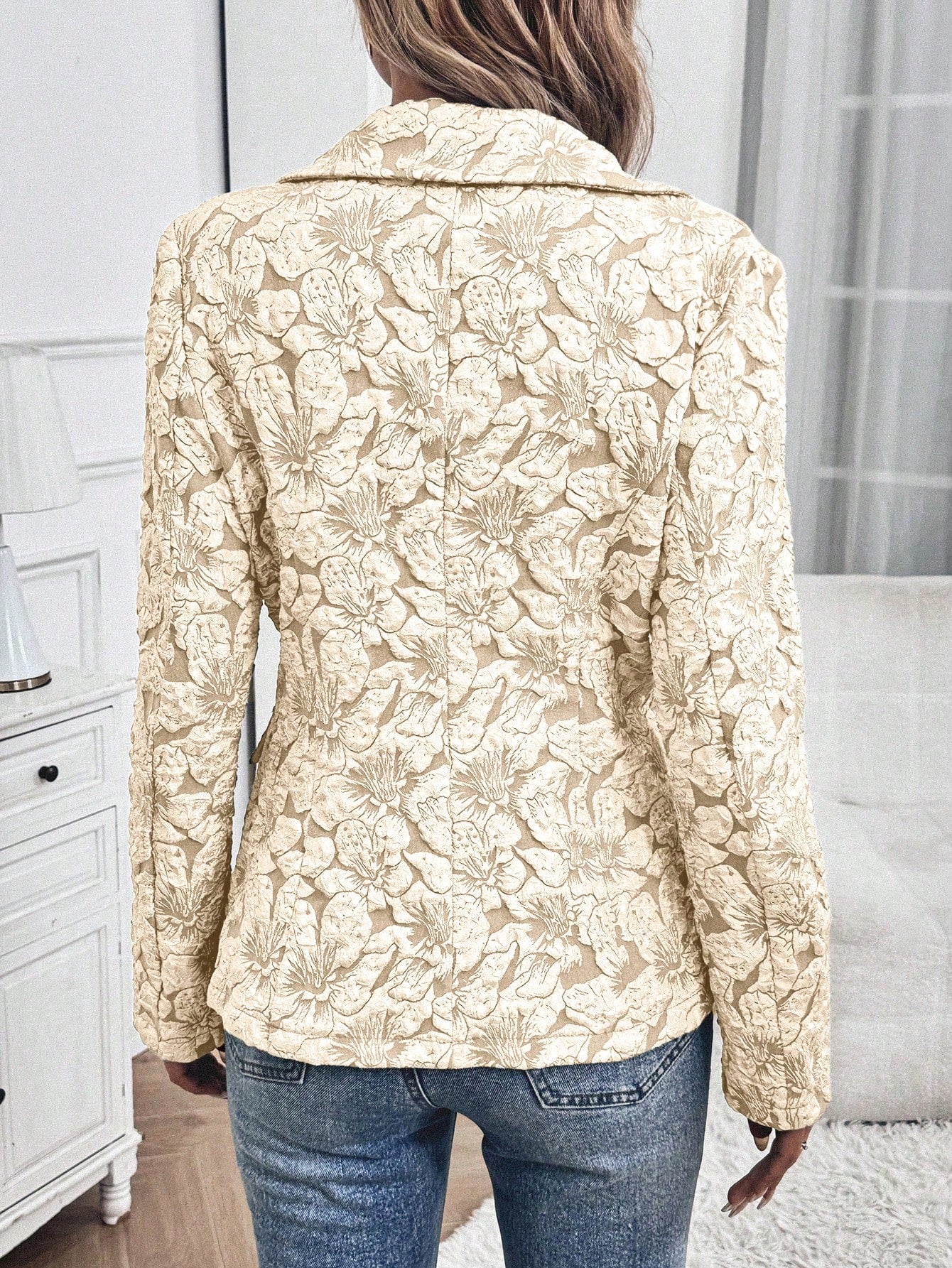 Celisse Women's Floral Dobby Ruffle Collar Long Sleeve Elegant Blazer, Autumn Fall Cloth For Women