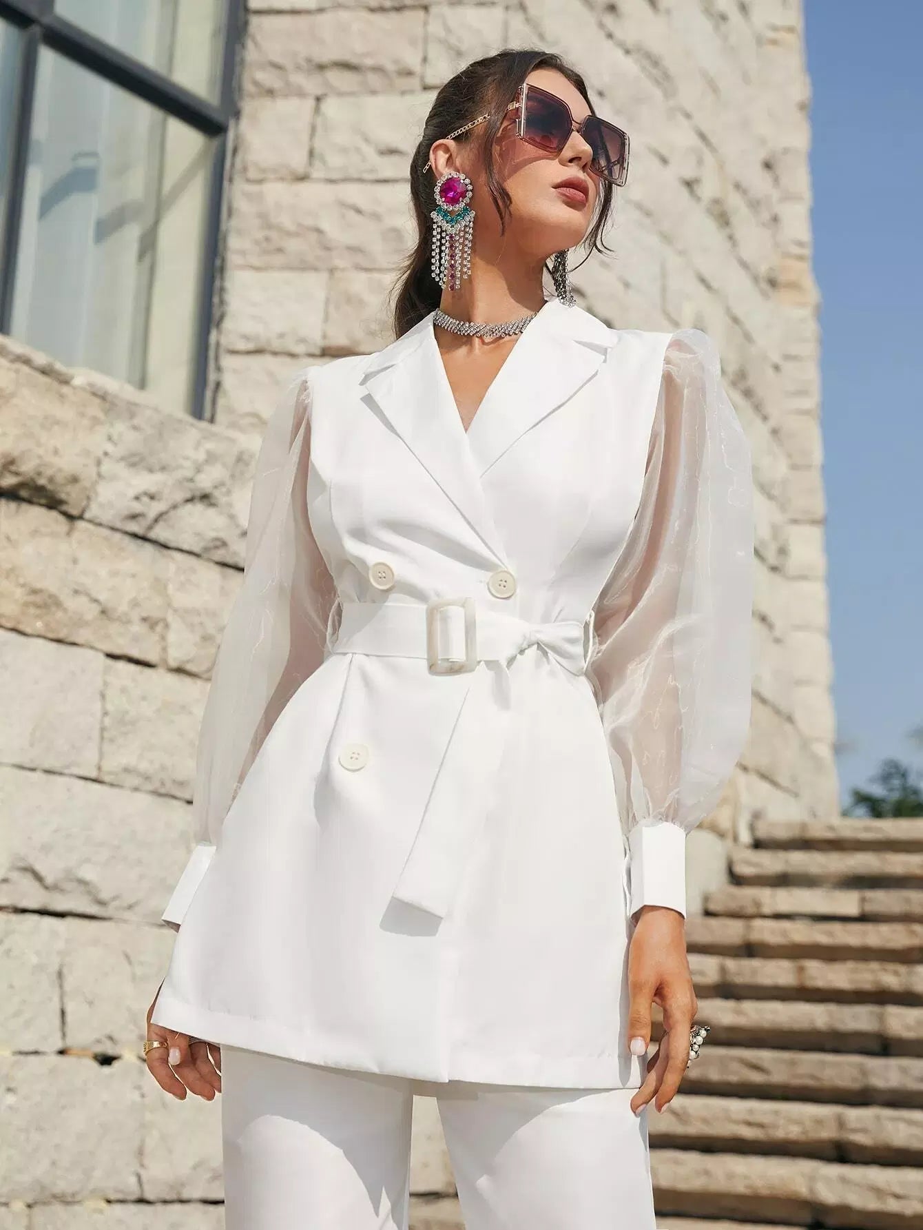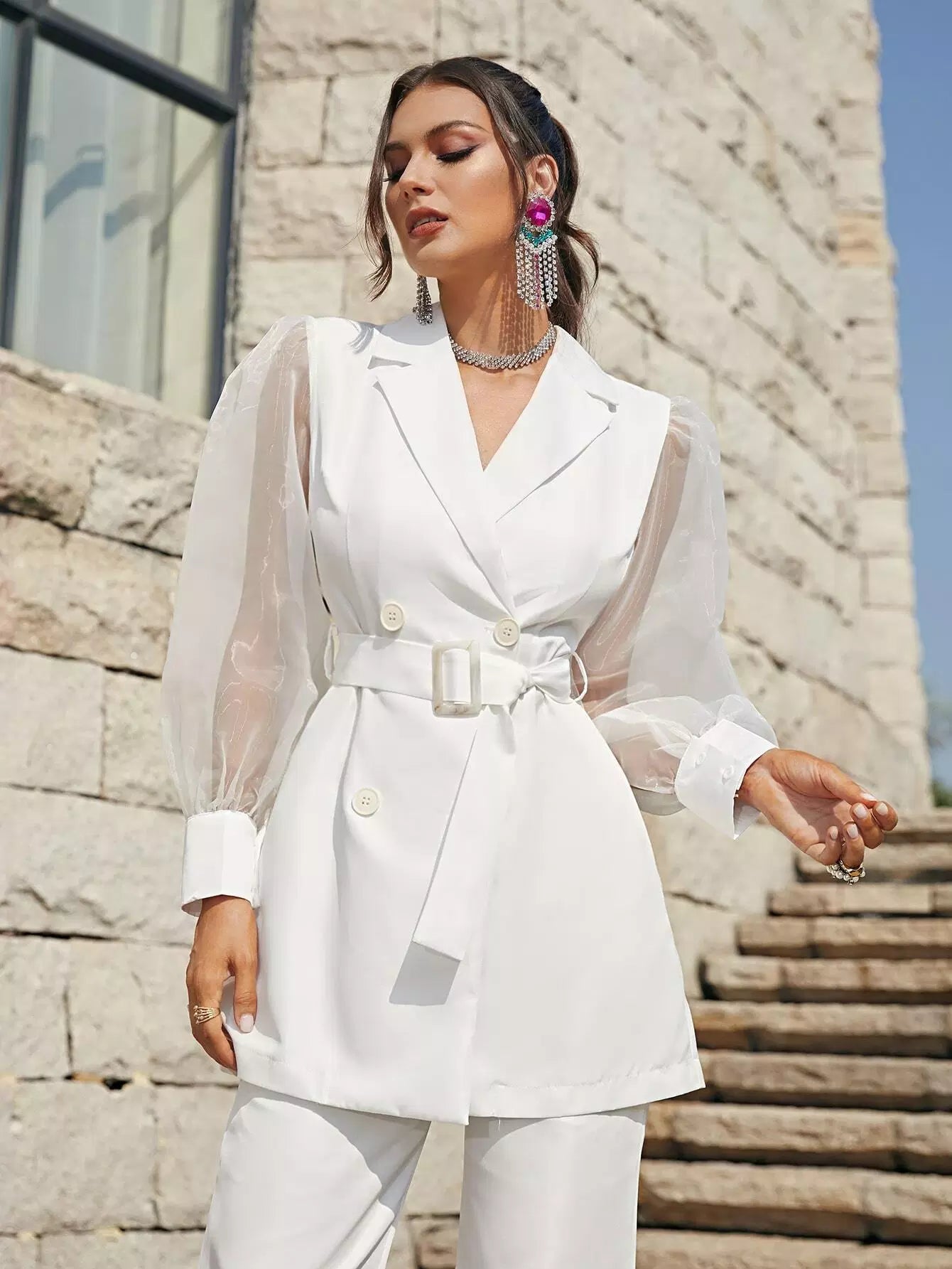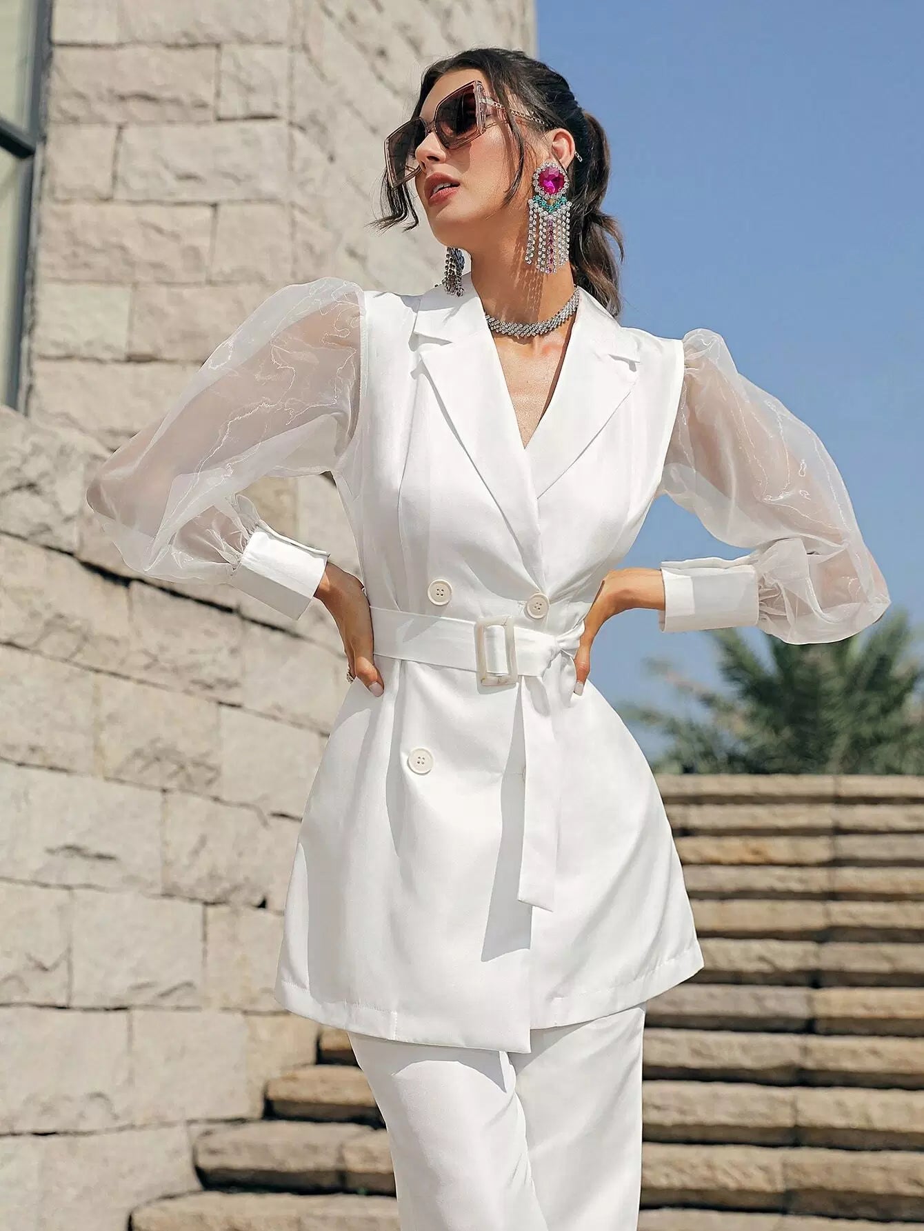 سترة شبكية متباينة وأكمام ساق لحم الضأن مزدوجة الصدر بدون حزام