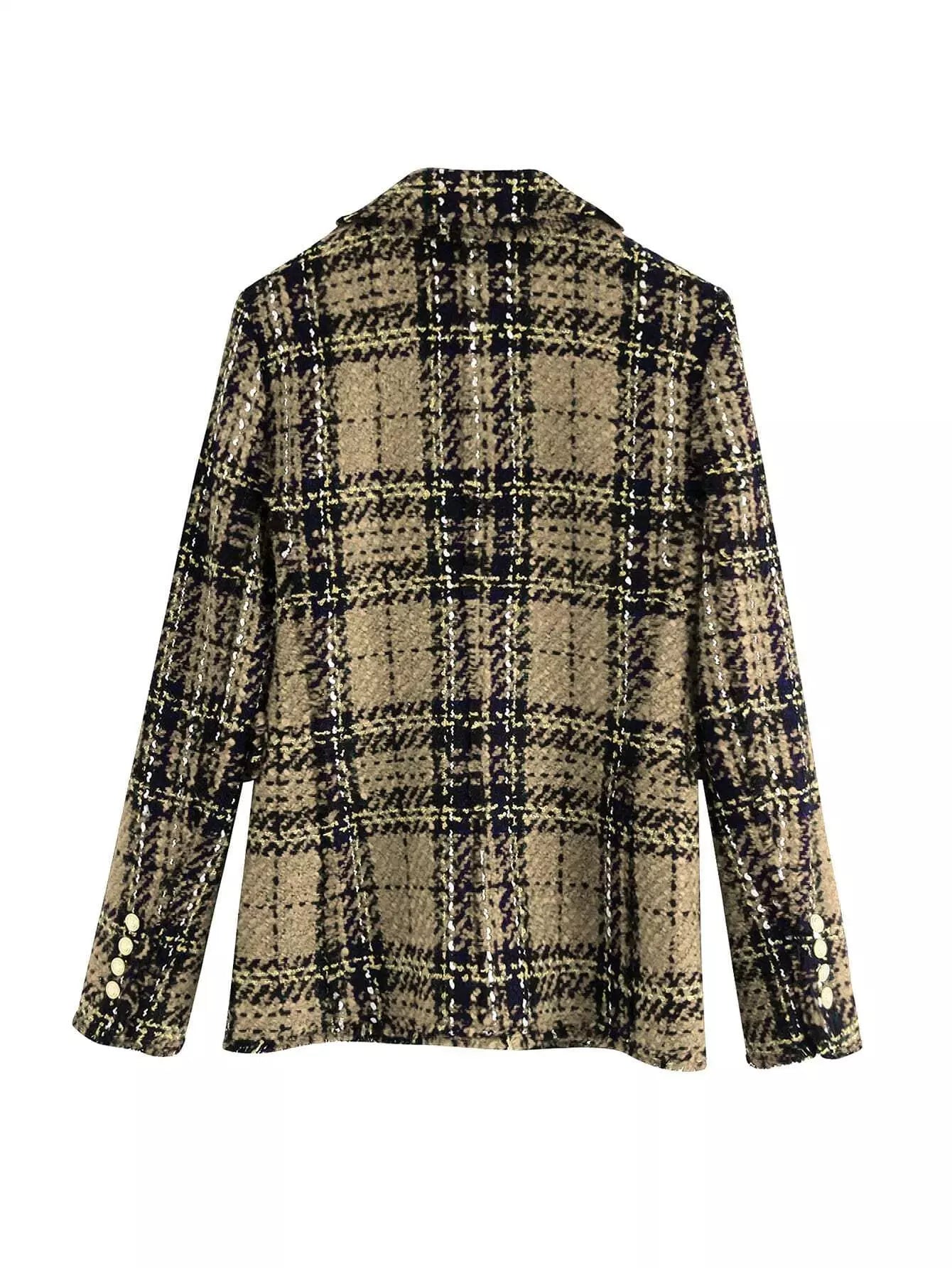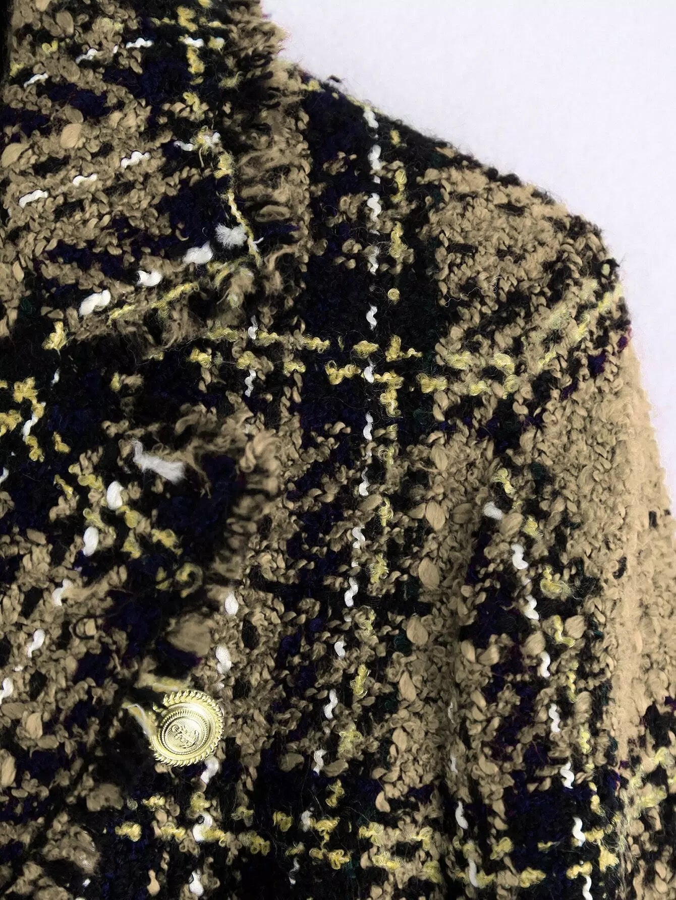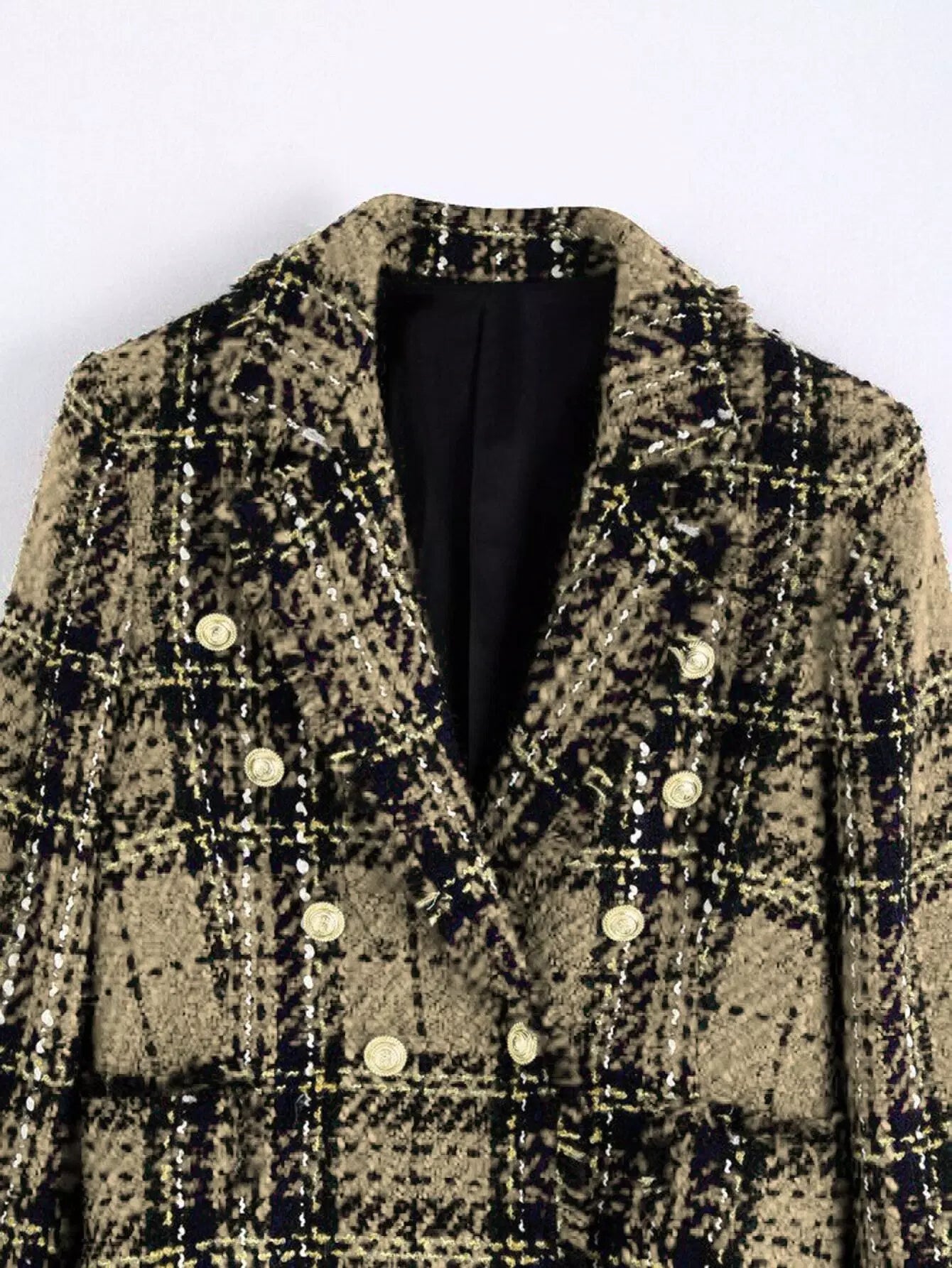 معطف تويد منقوش بأزرار مزدوجة منقوش