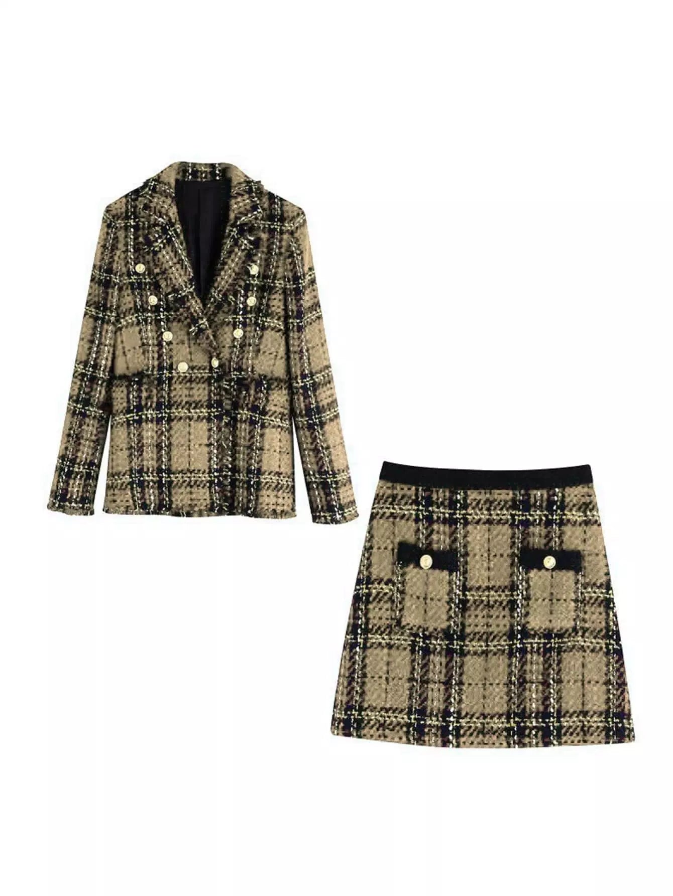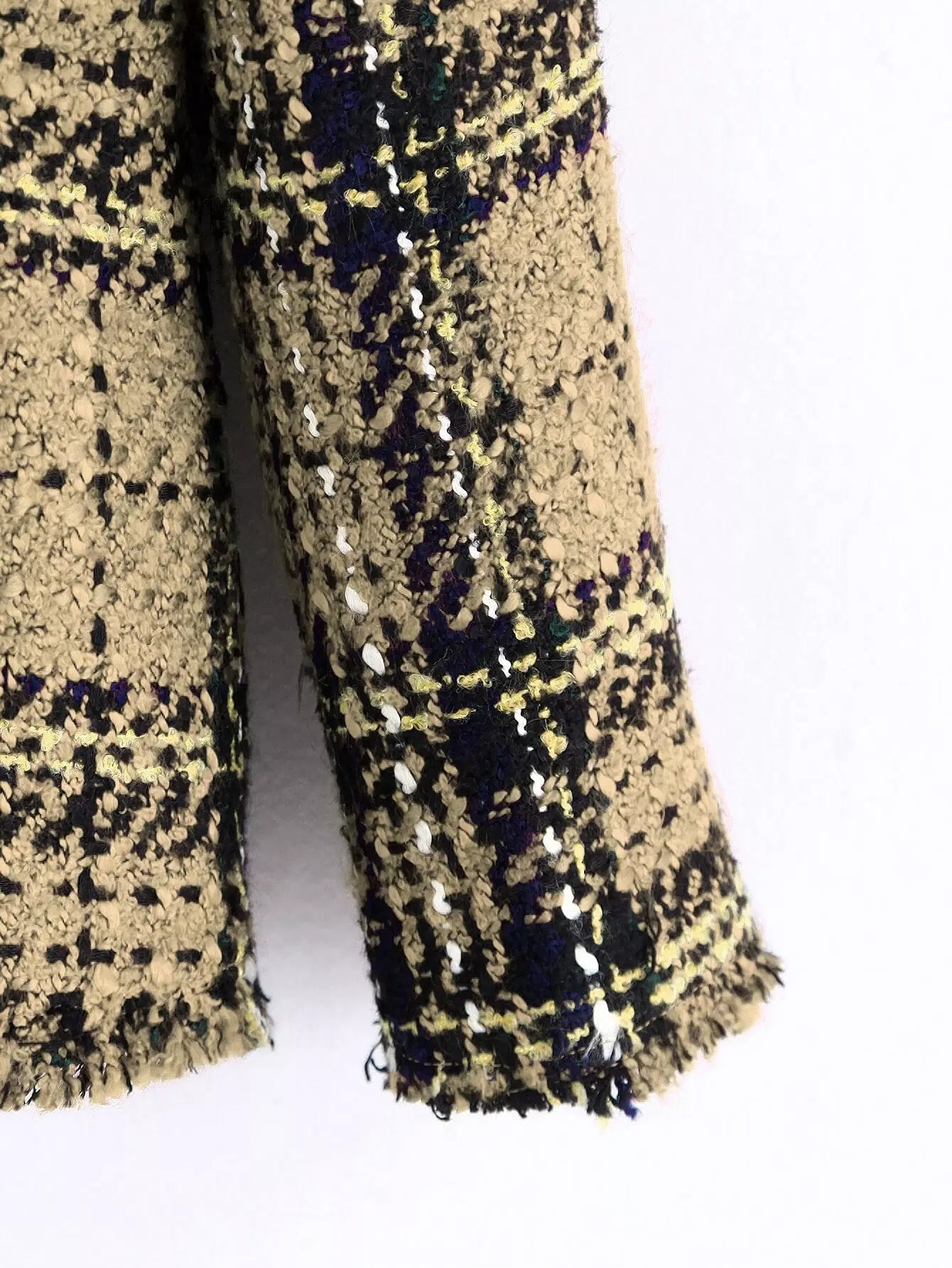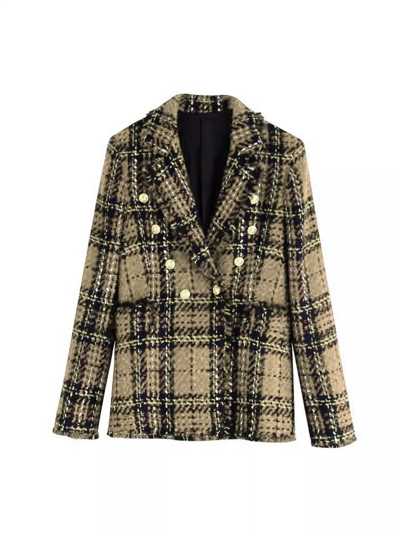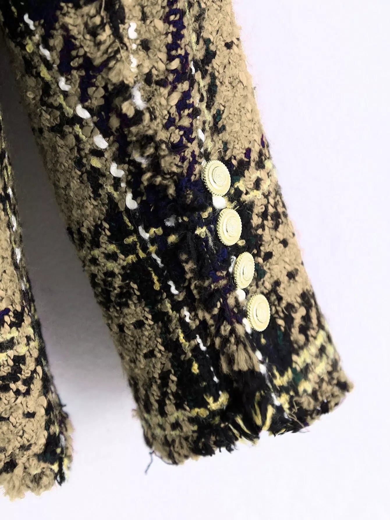 معطف تويد منقوش بأزرار مزدوجة منقوش