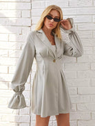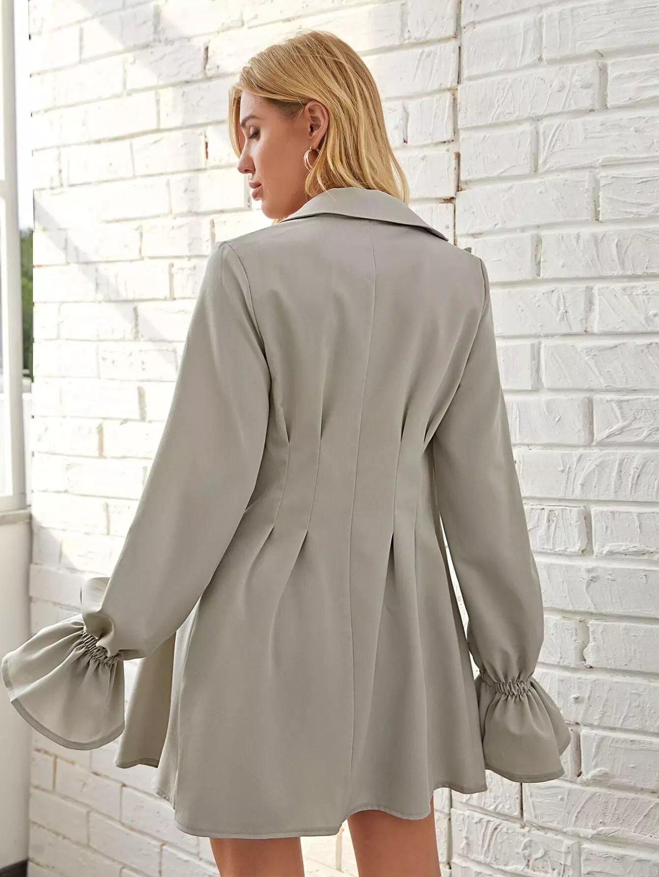 فستان بأكمام منفوشة بأزرار واحدة مطوي بأزرار مطوية