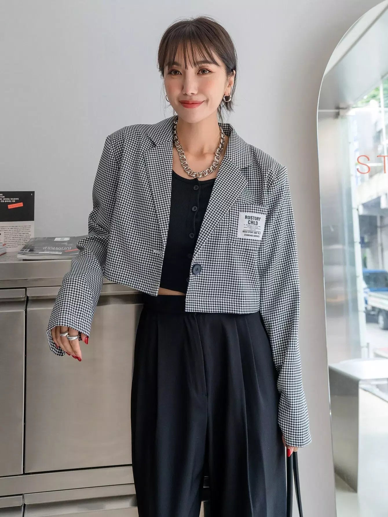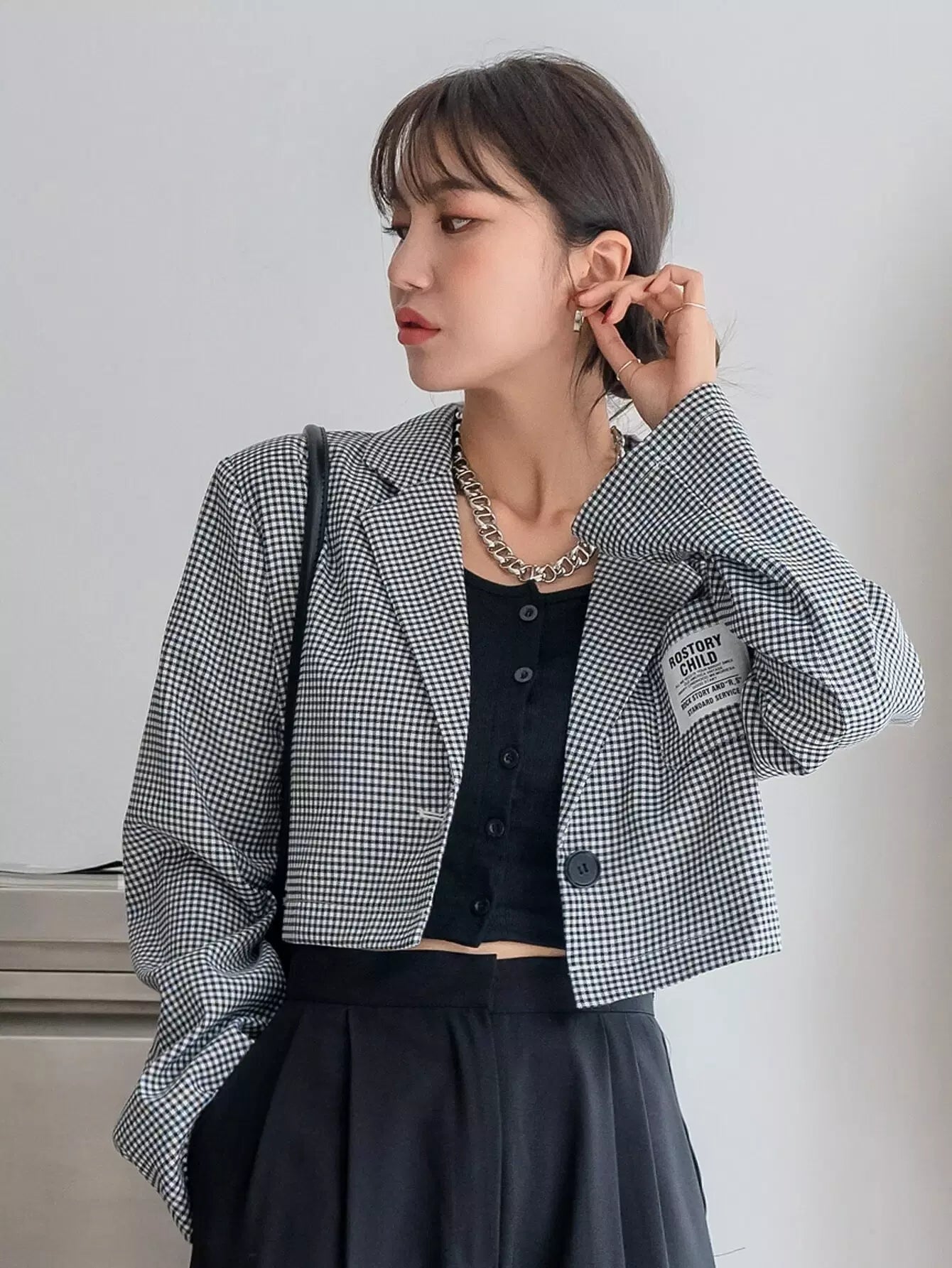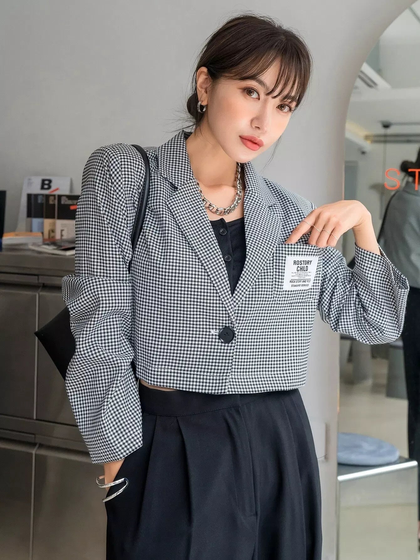 سترة قصيرة مرقعة بأزرار مرقعة بحروف من القماش القطني