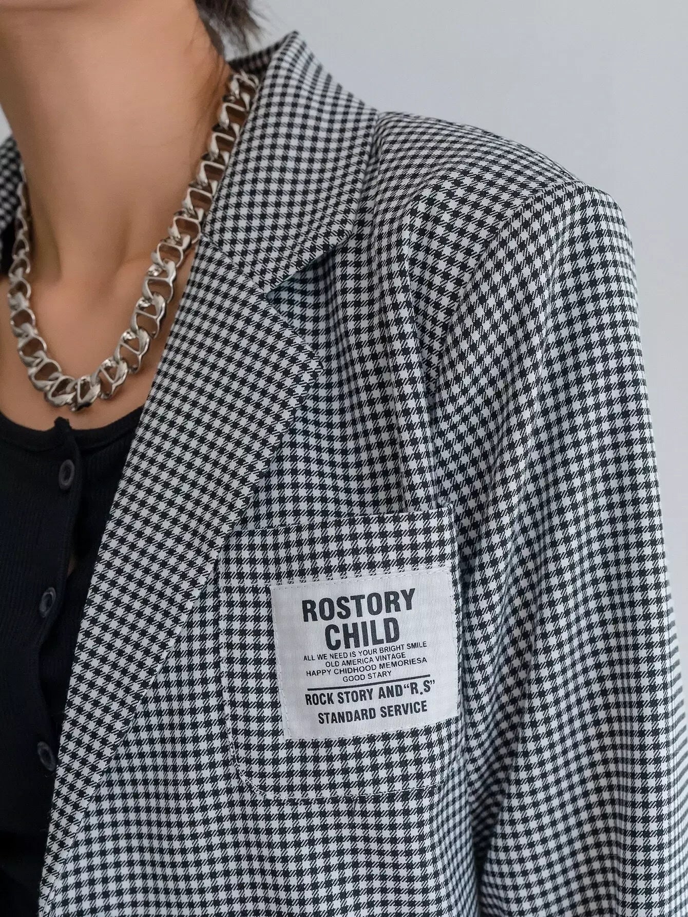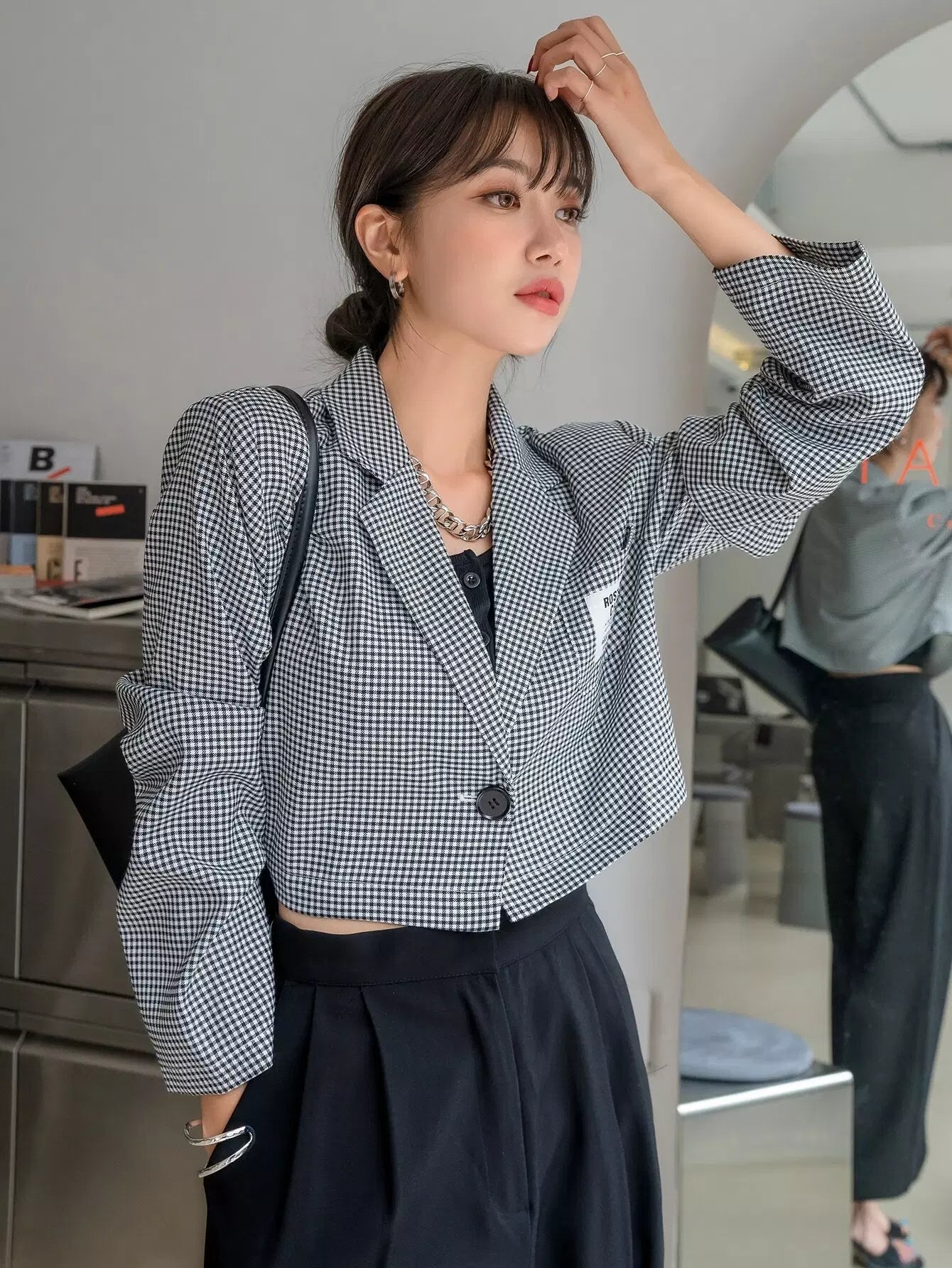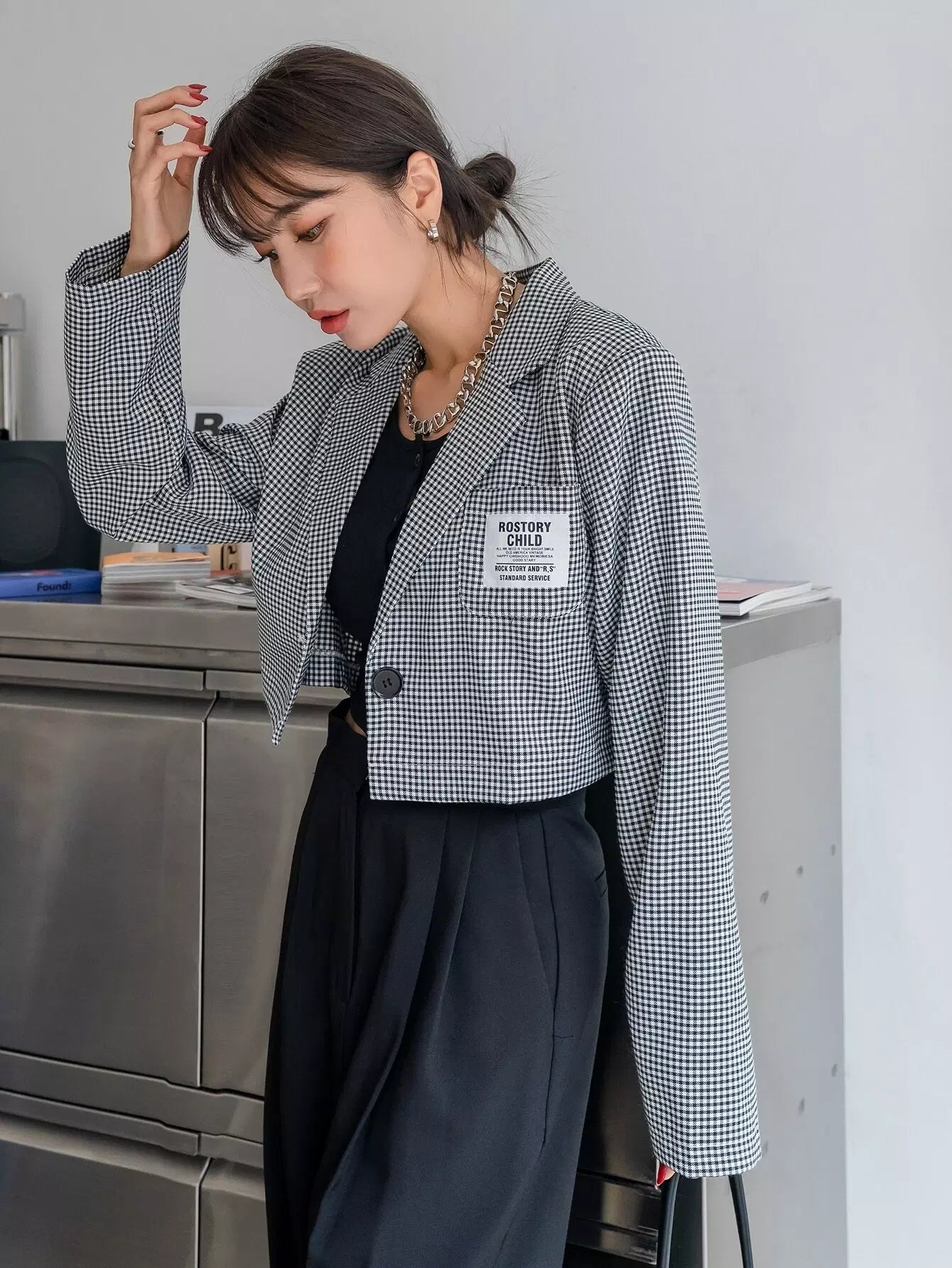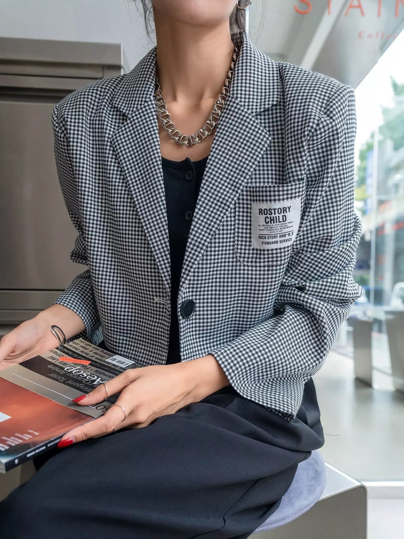 سترة قصيرة مرقعة بأزرار مرقعة بحروف من القماش القطني