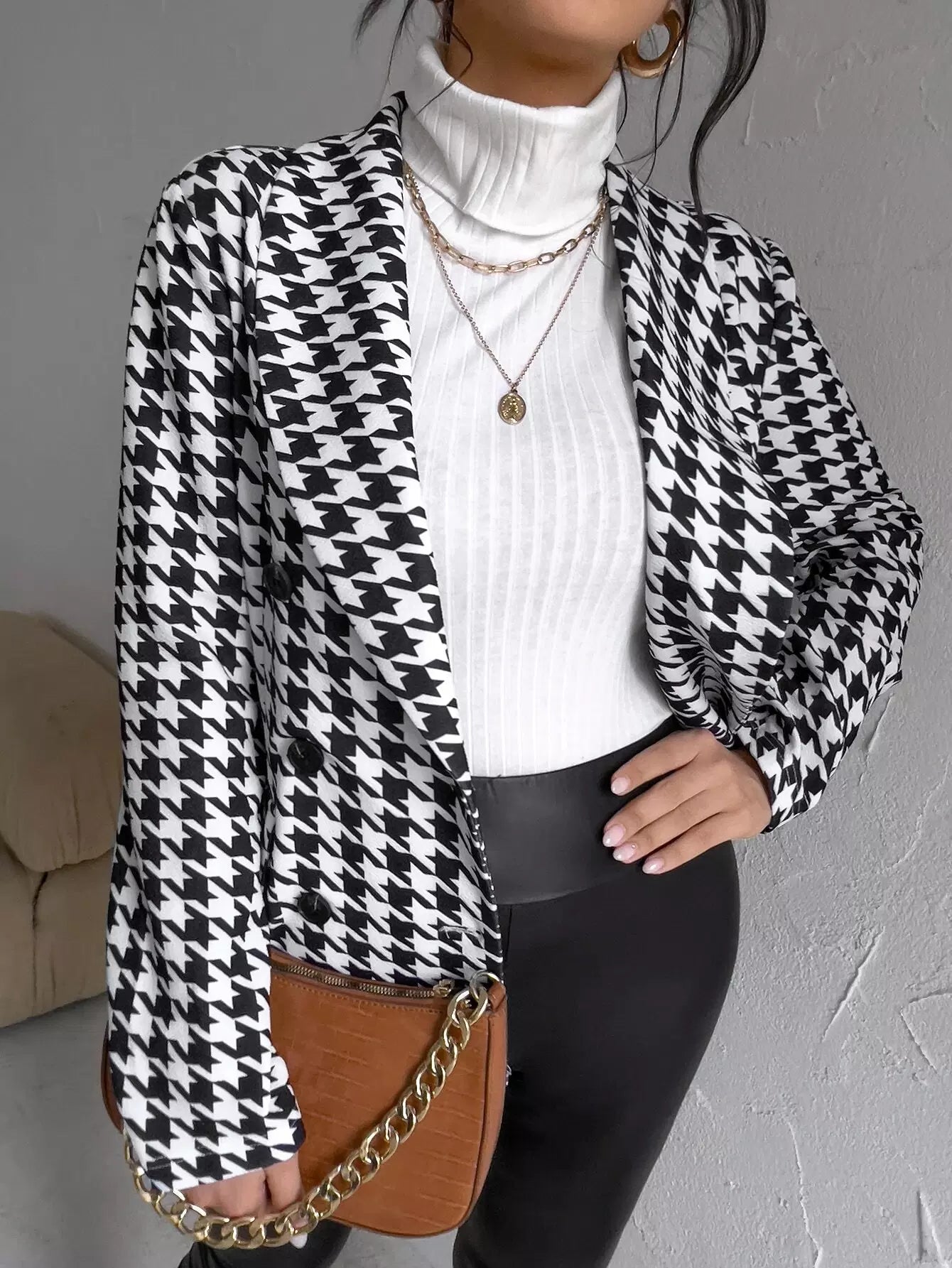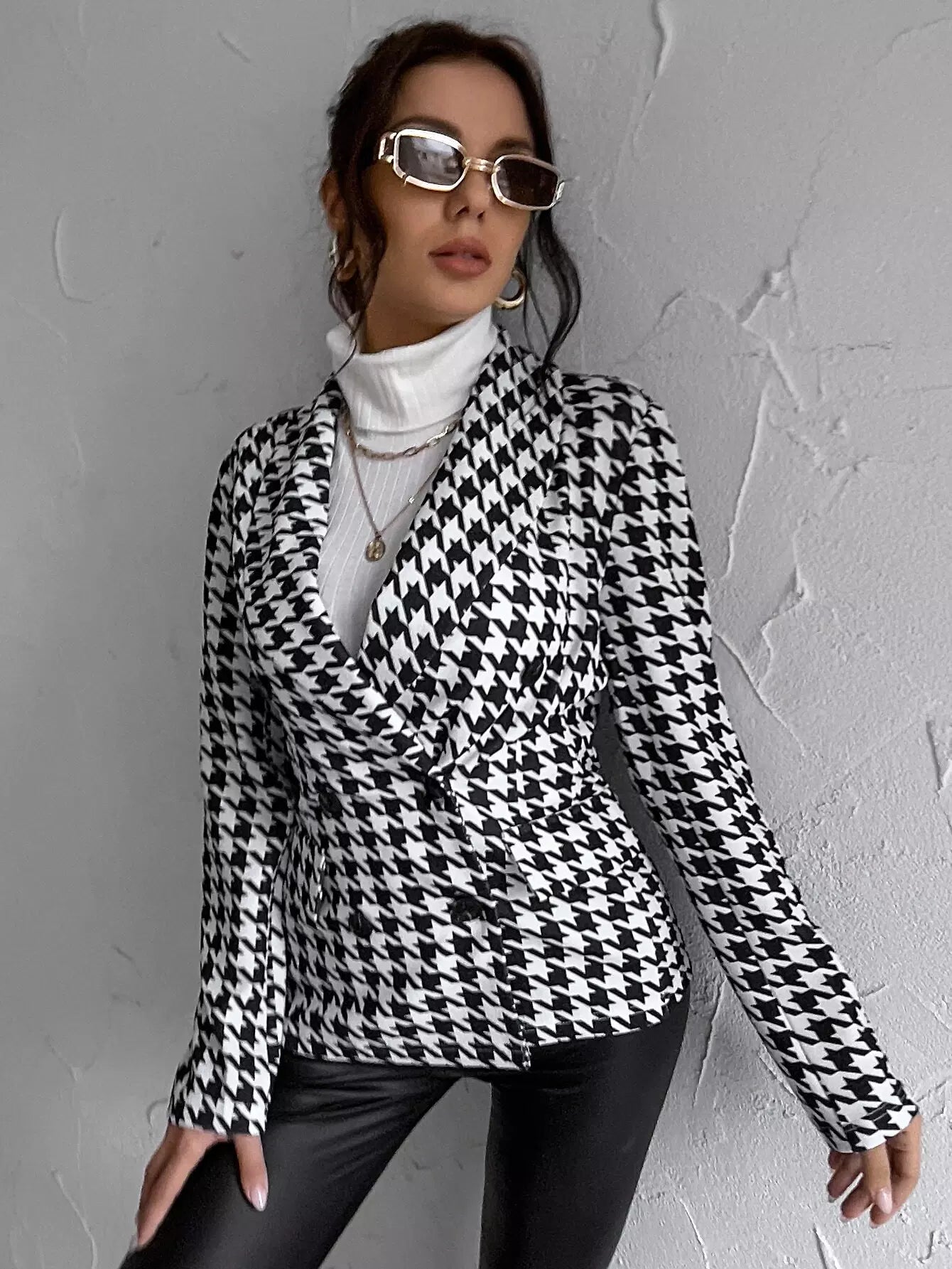 بليزر بطبعة هاوندستوث مزدوج الصدر بطبعة هاوندستوث
