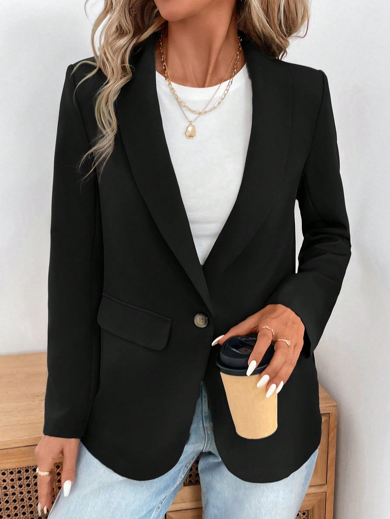 جاكيت بليزر نسائي جديد بلون أخضر رمادي فاتح بتصميم أزرار عند الخصر، من مجموعة خريف/شتاء LUNE 2024