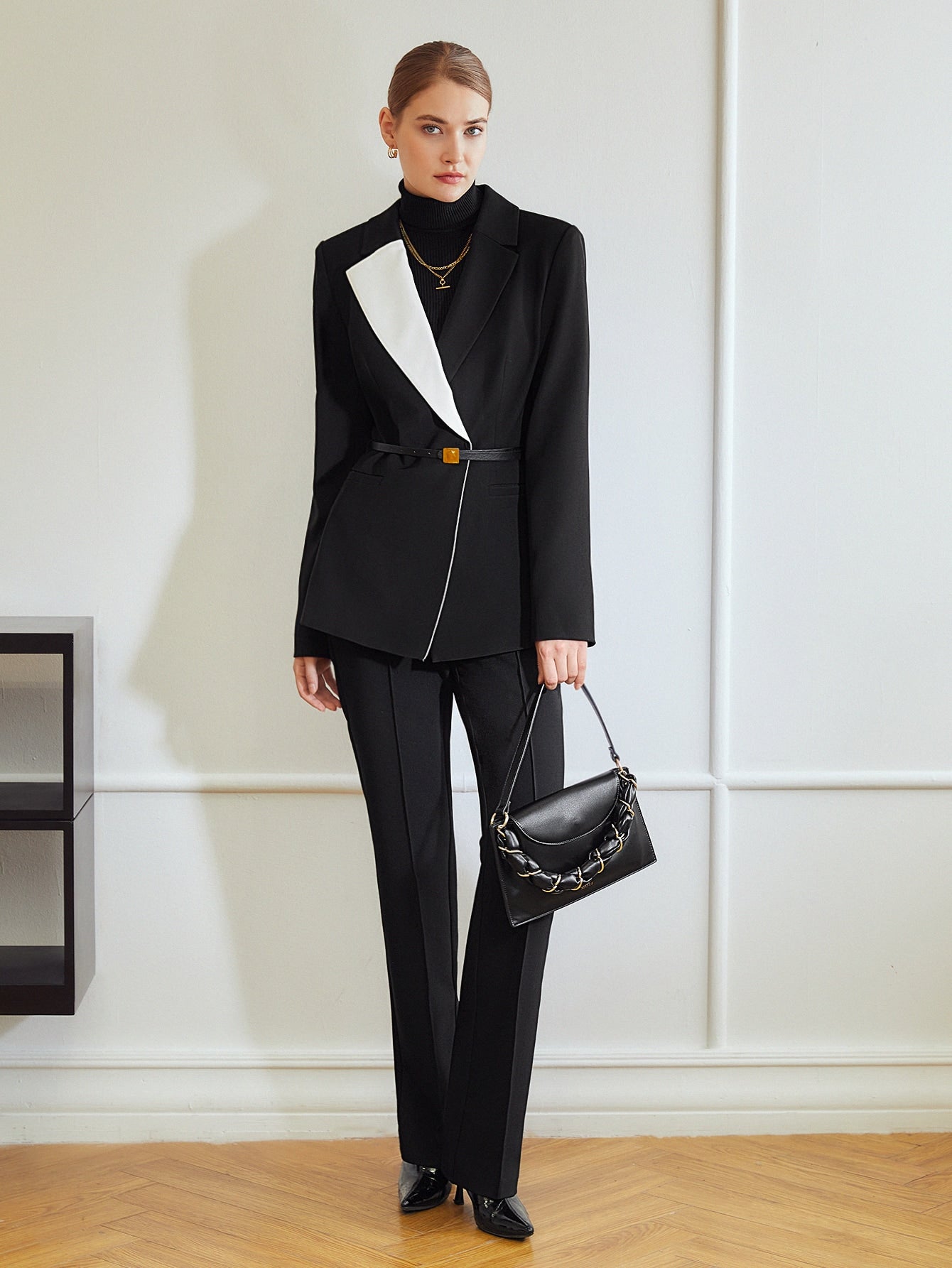 MOTF PREMIUM TWO TONE WRAP BELTED BLAZER