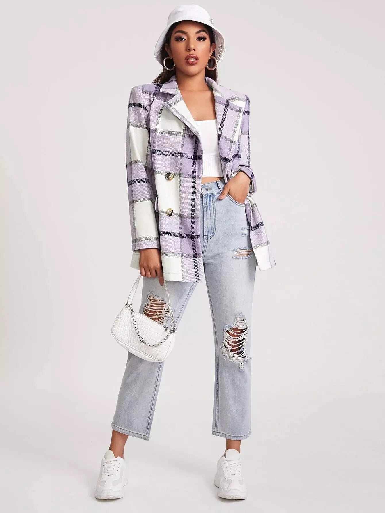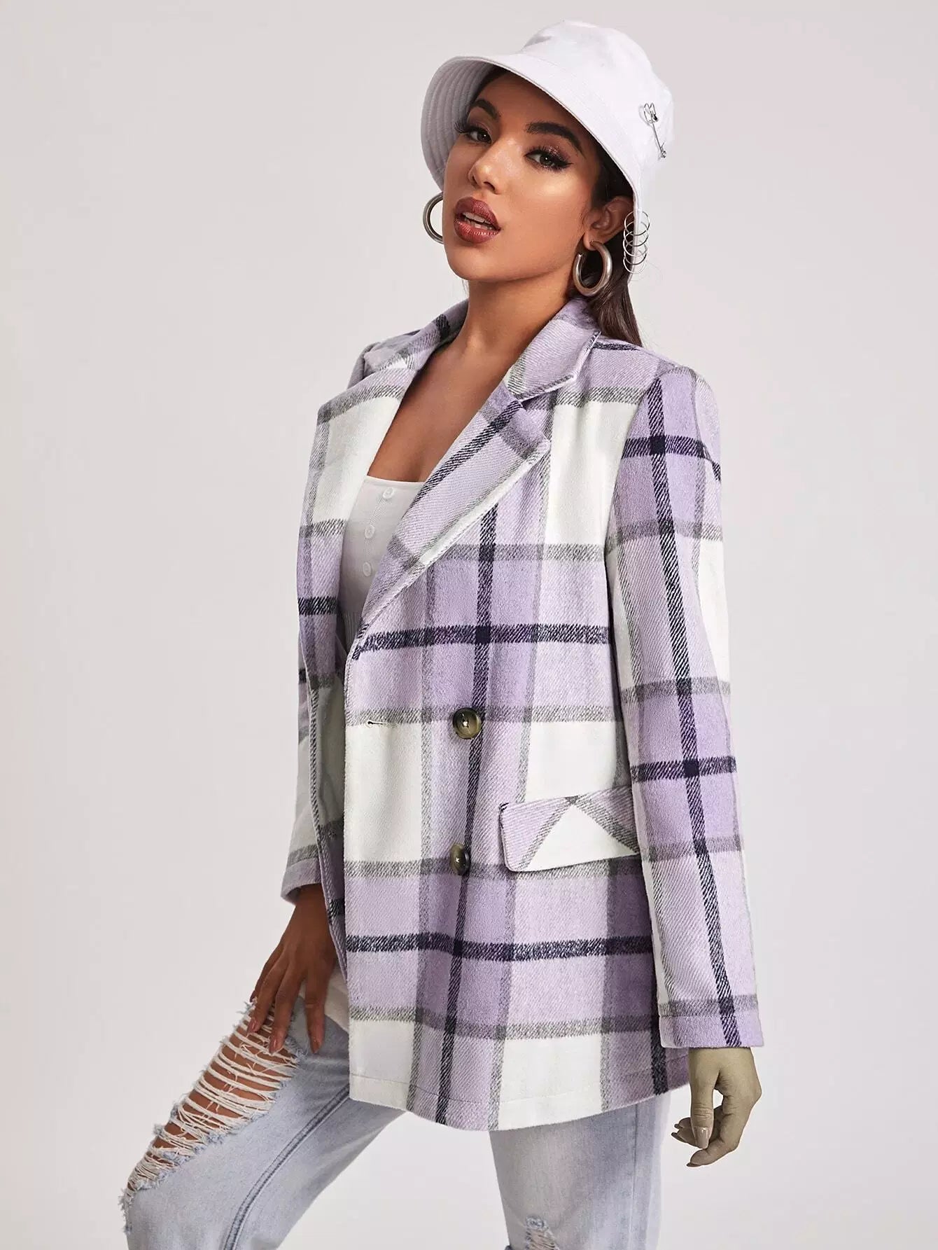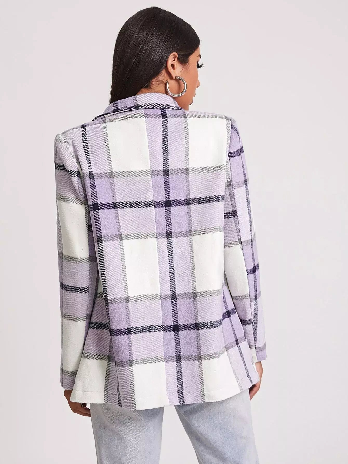 بليزر منقوش بأزرار أمامية وياقة مدببة