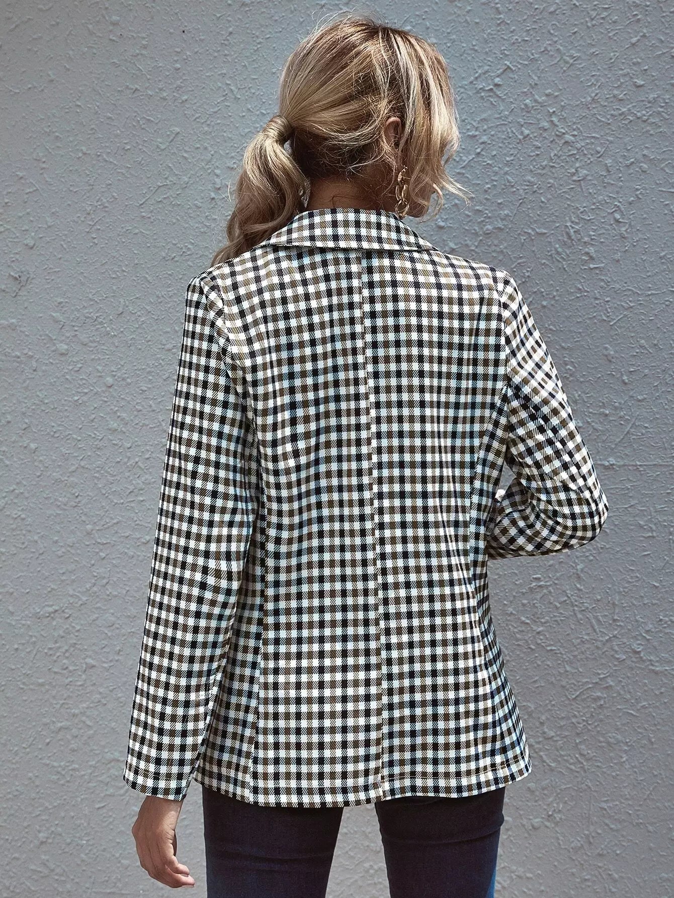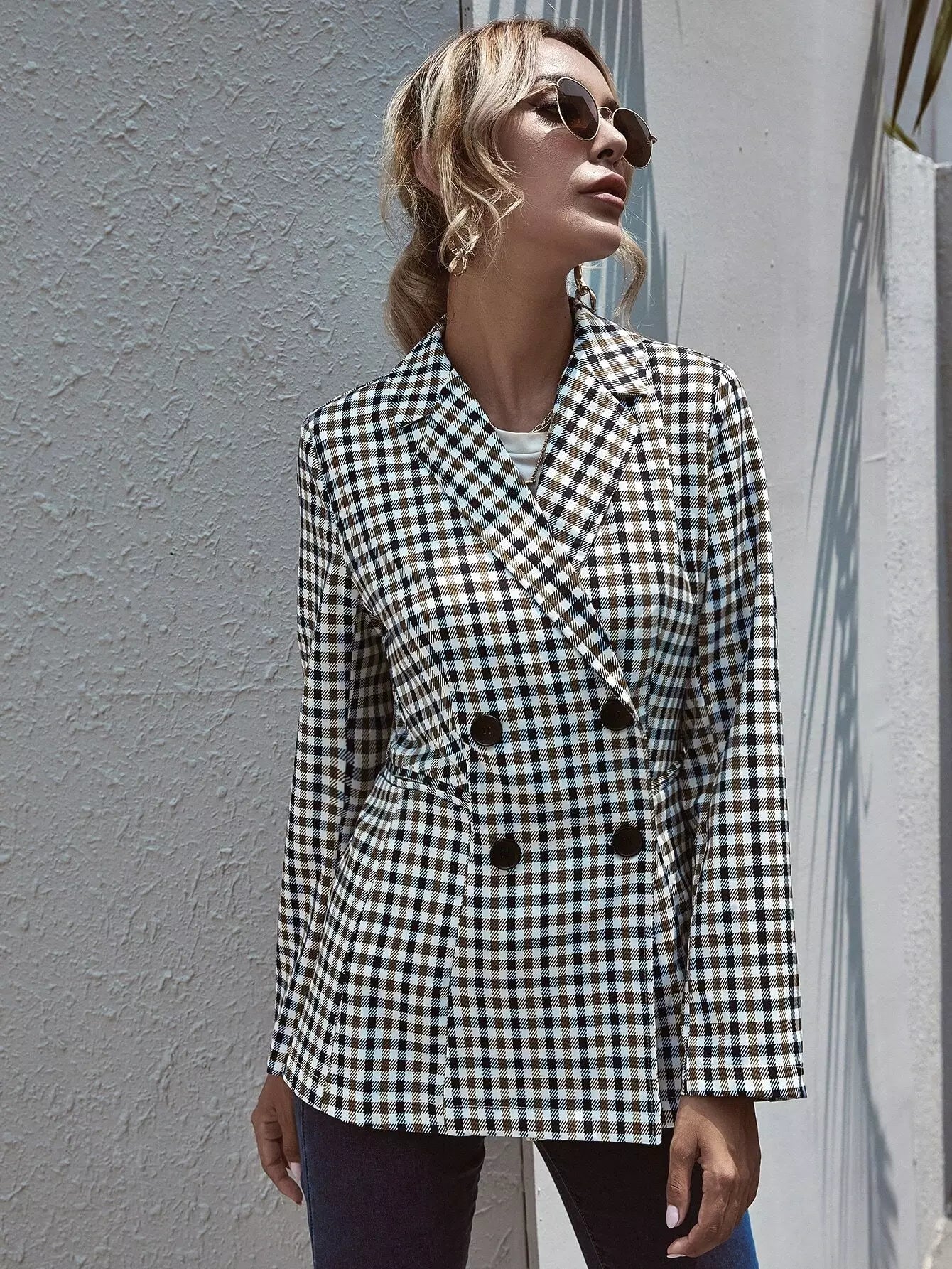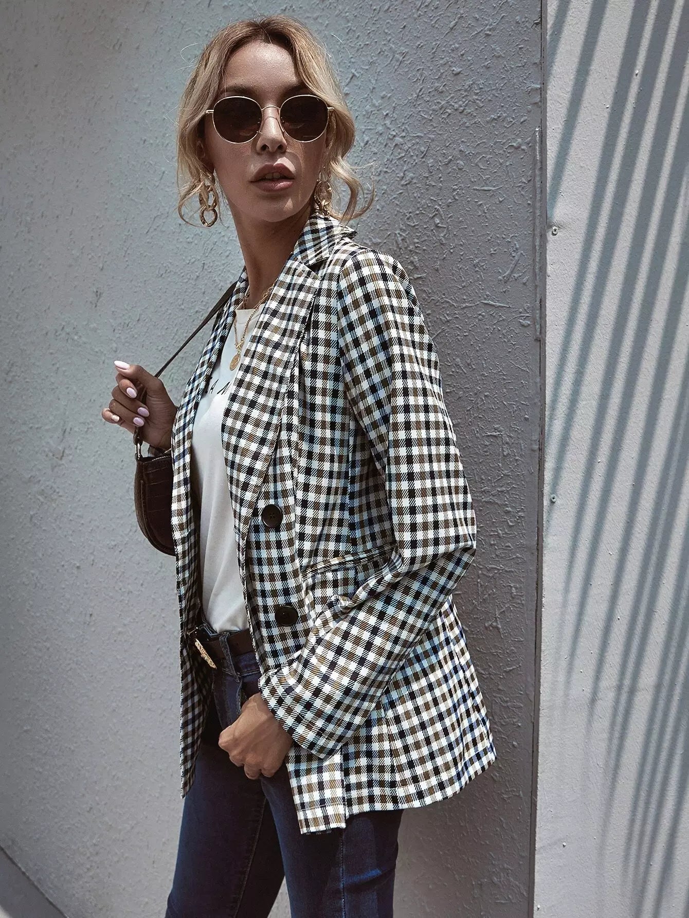 للنساء - سترة منقوشة بياقة طية صدر السترة وأزرار مزدوجة