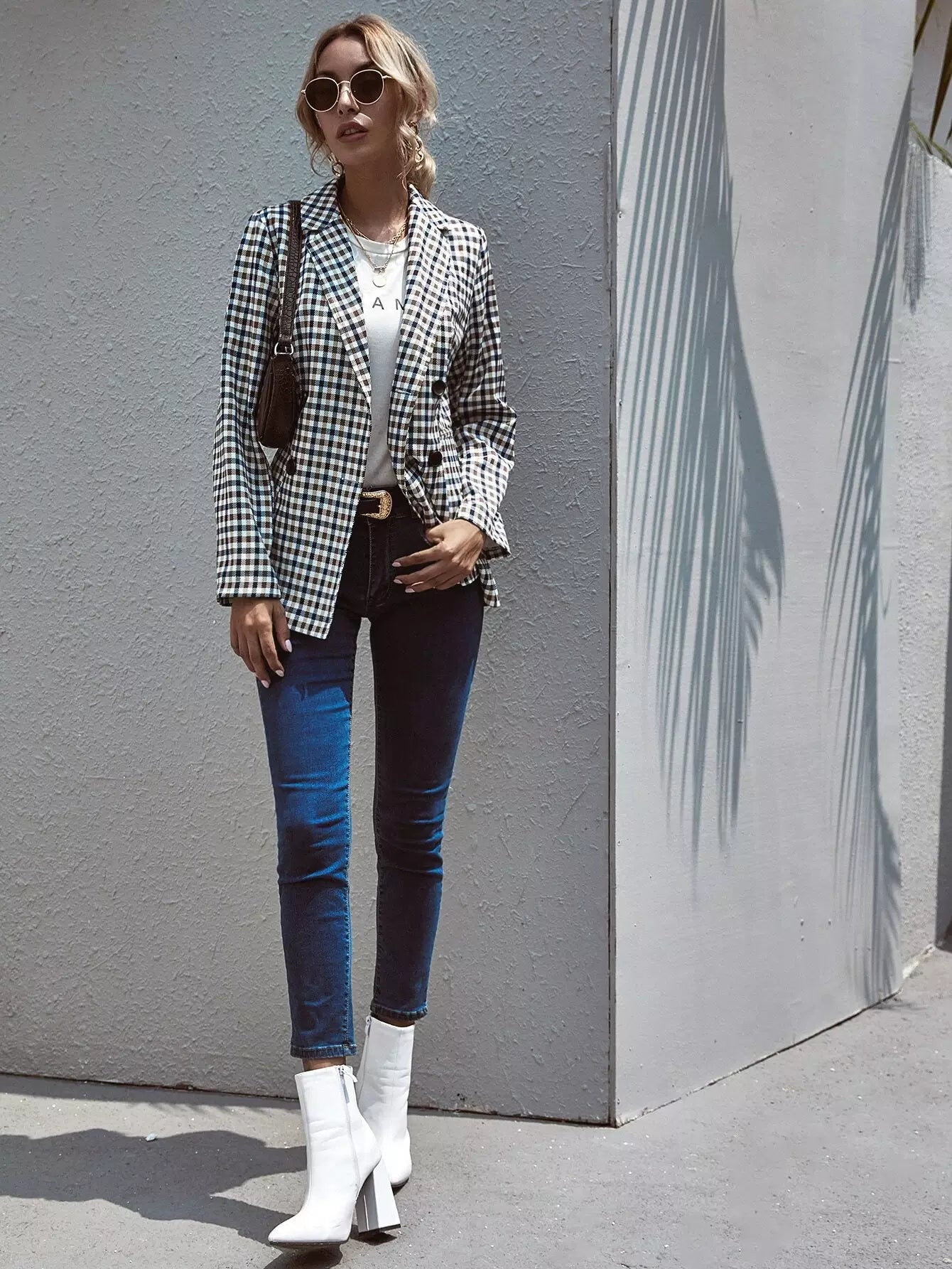 بليزر بياقة منقوشة بياقة منقوشة بياقة مزدوجة بأزرار مزدوجة