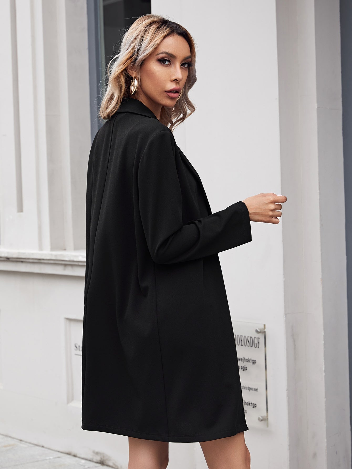 بليزر طويل مفتوح من الأمام من Priv©، مناسب لفصل الشتاء، أنيق وعملي باللون الأسود
