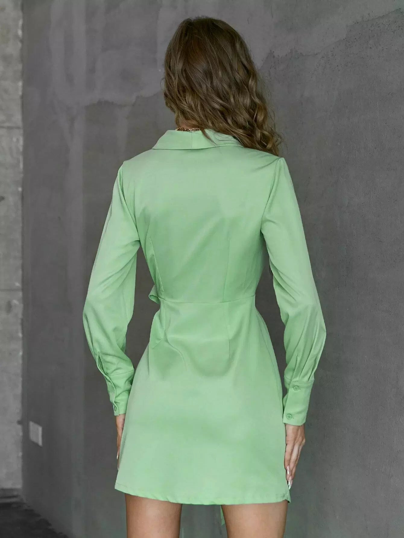 فستان بسترة برقبة شال بحافة غير متناظرة وربطة عنق جانبية ملفوفة