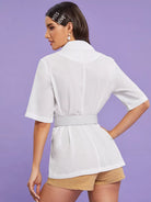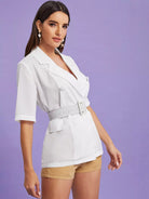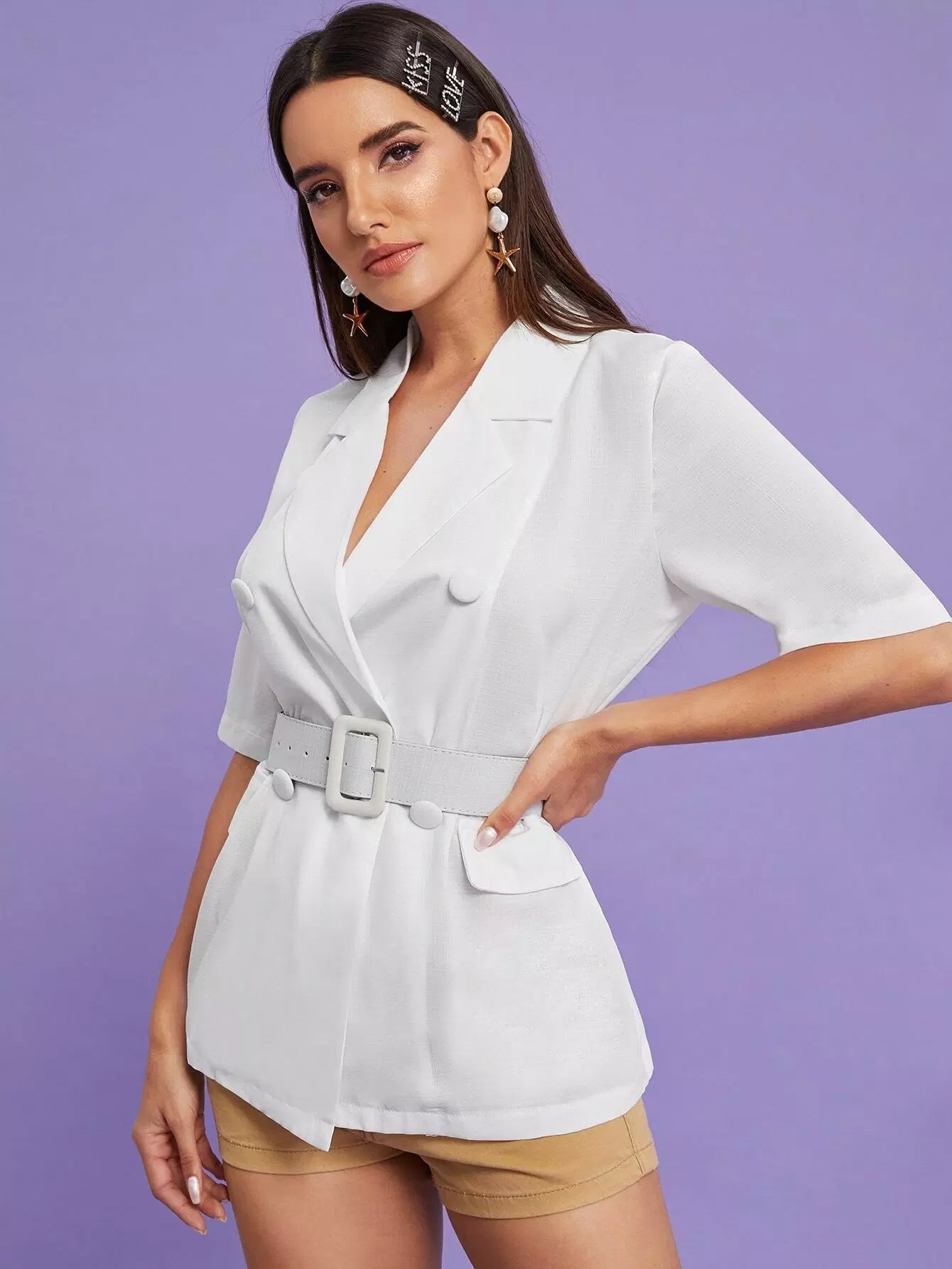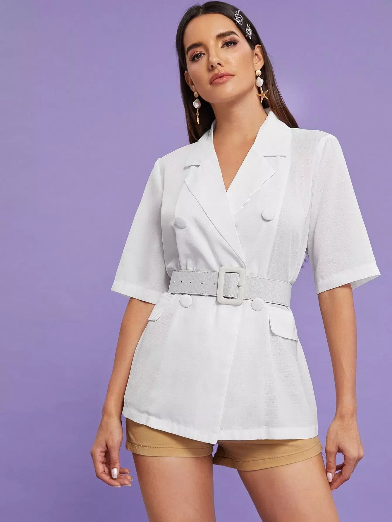 سترة سادة ذات أزرار مزدوجة الصدر بأزرار مزدوجة