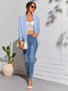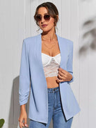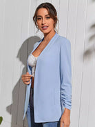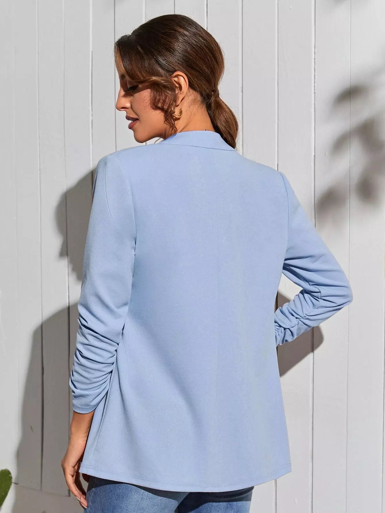 سترة سادة بأكمام مكشكشة سادة مفتوحة من الأمام