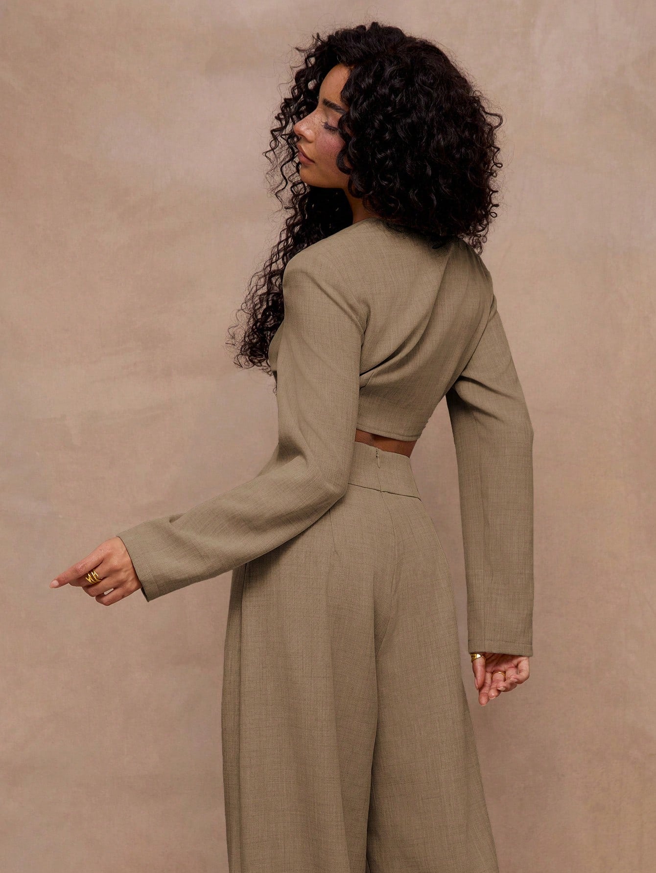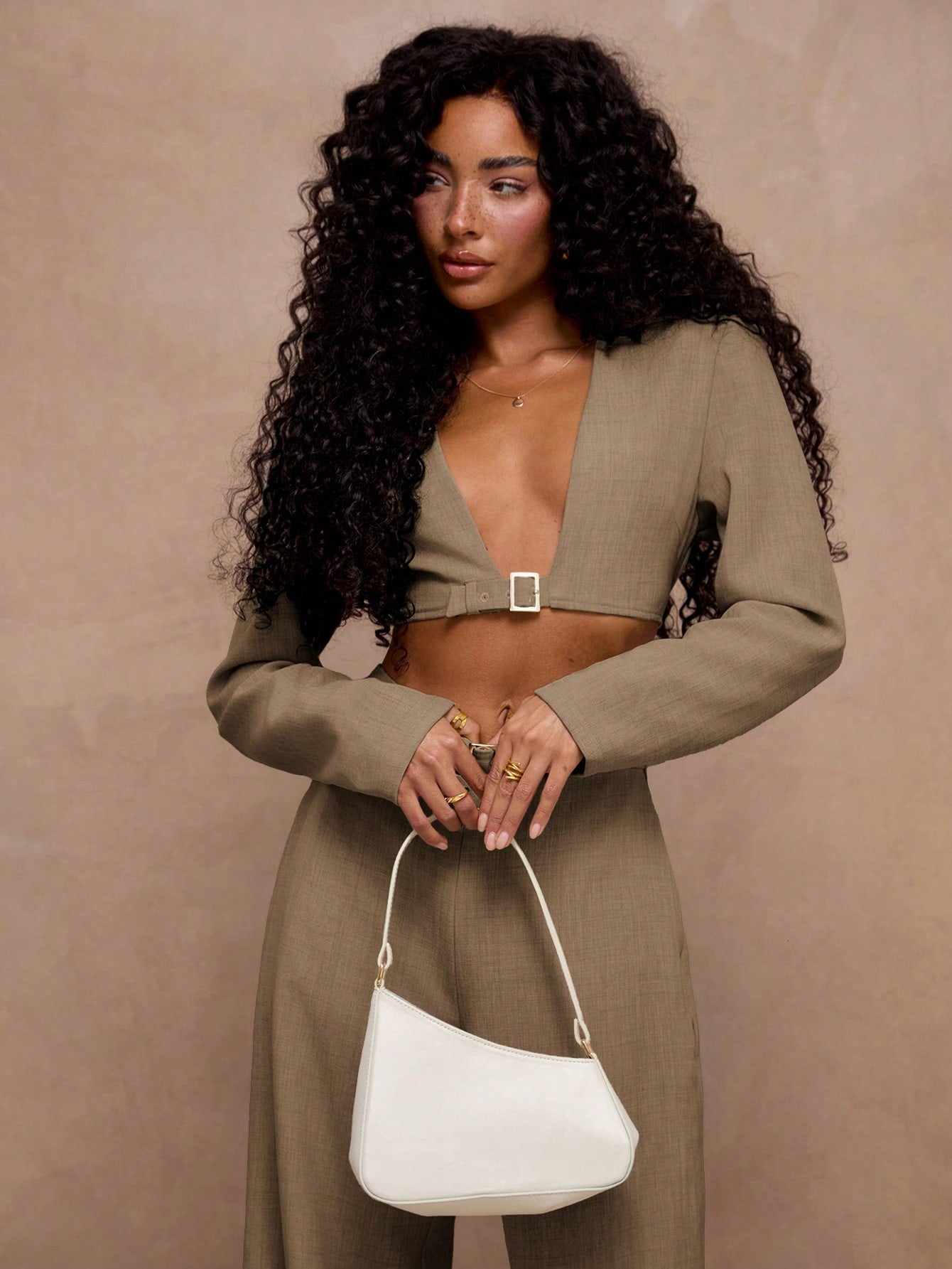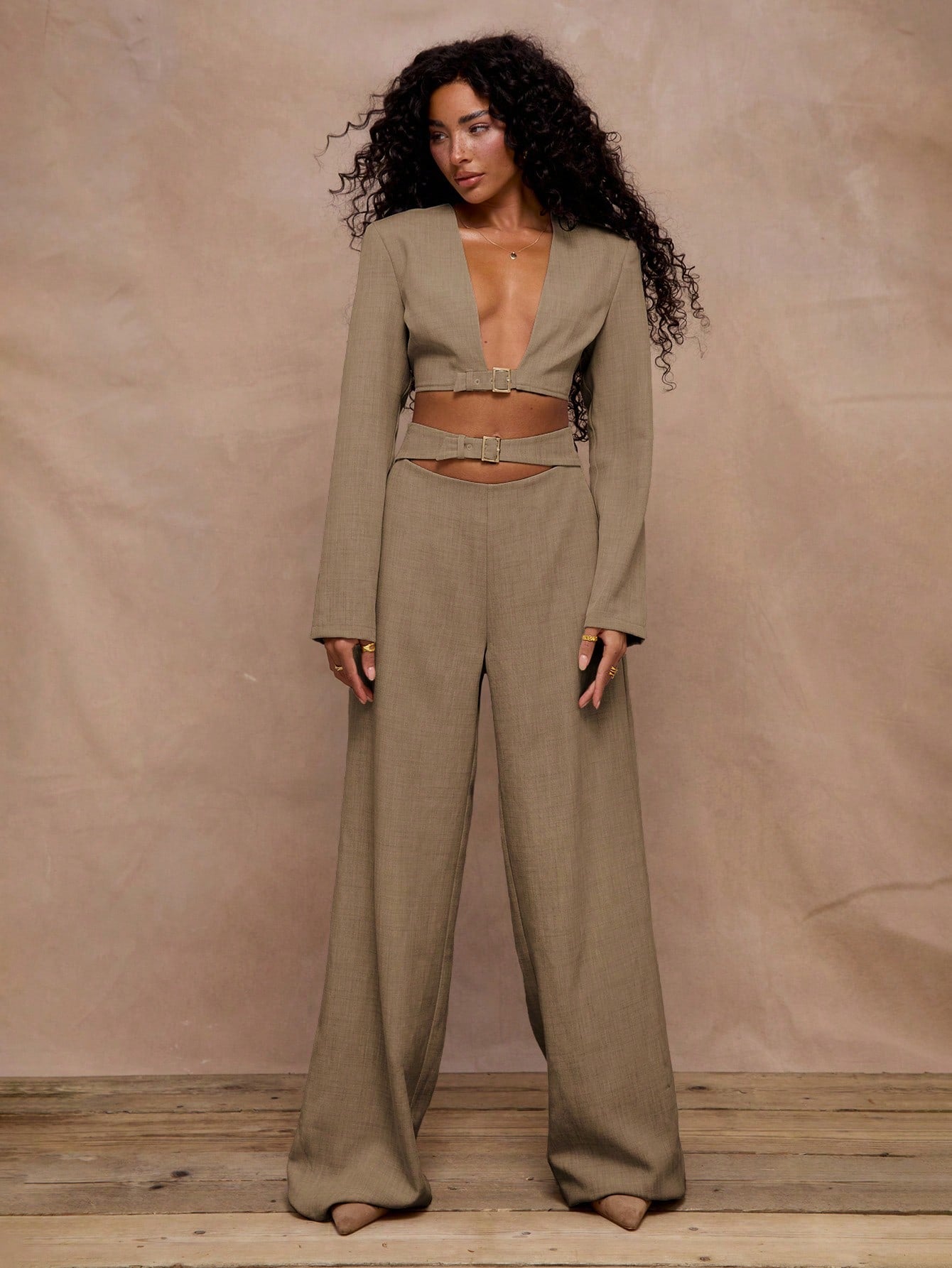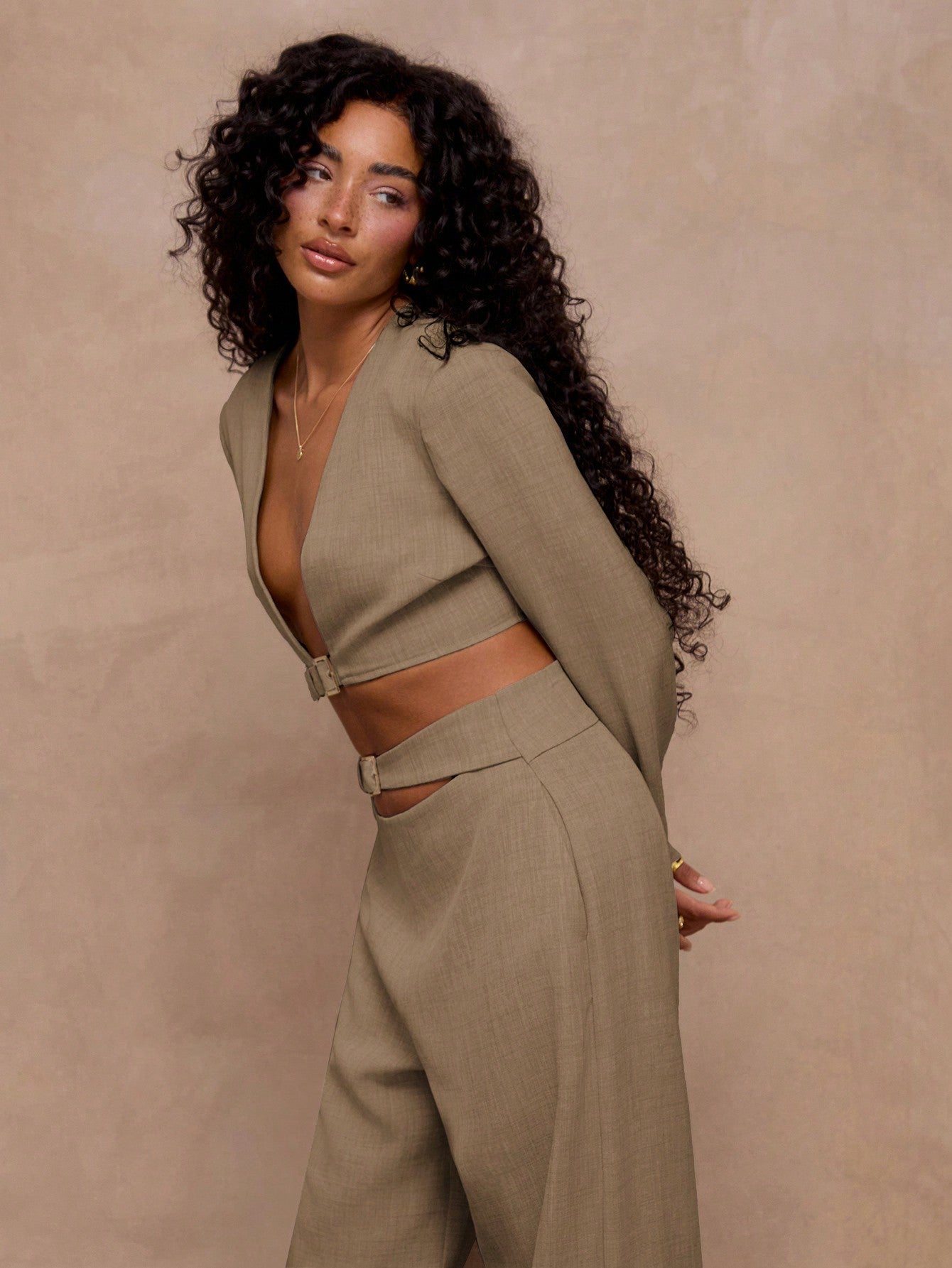 X Scheana MUSERA Tailored Buckle Fastening Front Detail Cropped Blazer V Neckline Professional Business
