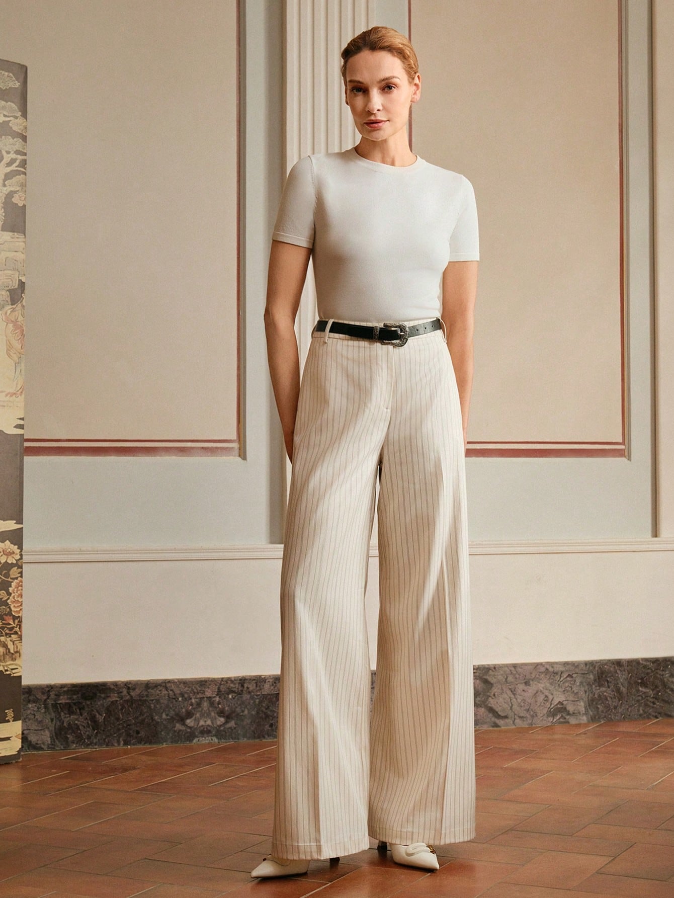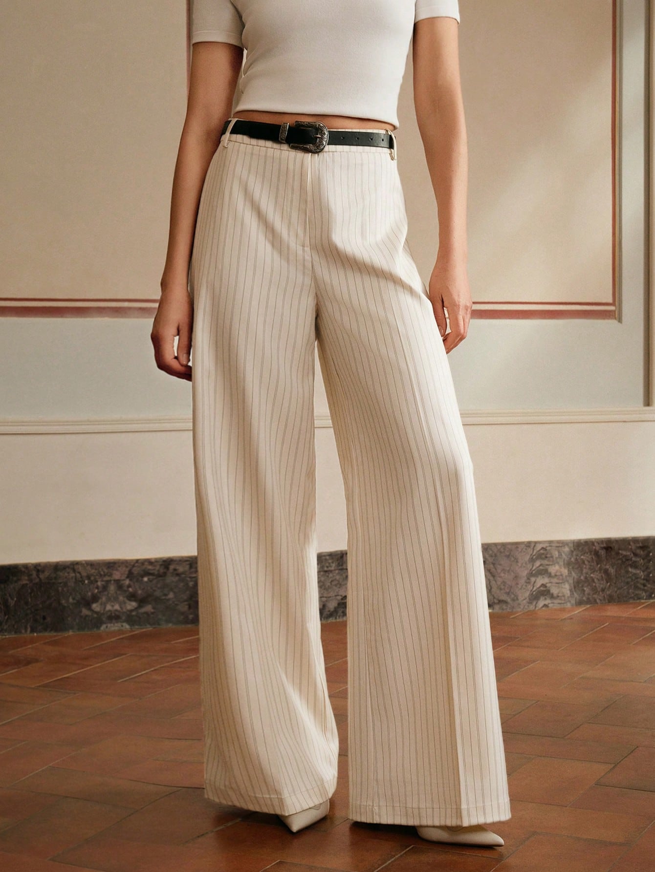 women Anewsta Elaire Casual Slouchy Striped Pants Slim Drape Suit Trousers Old Money