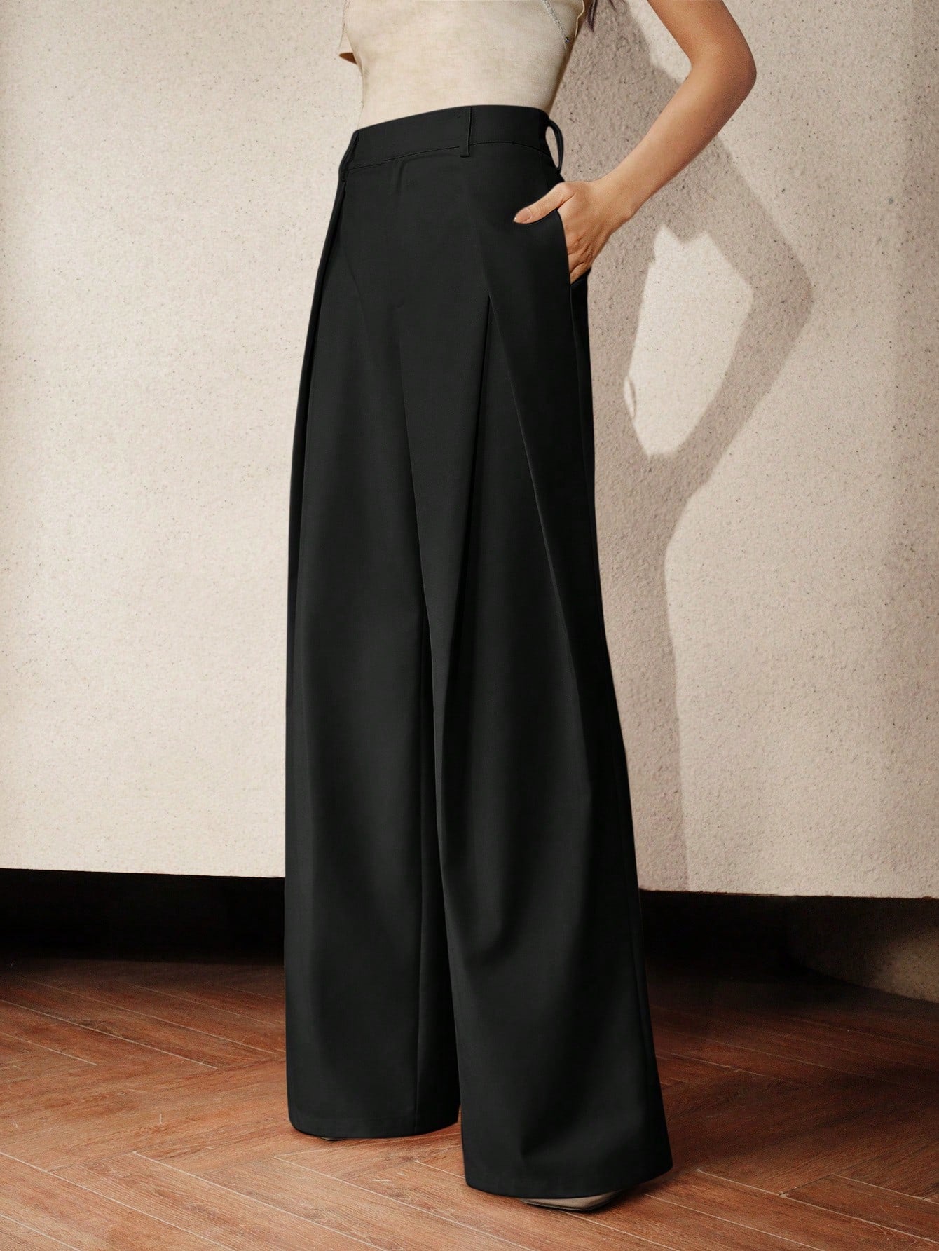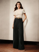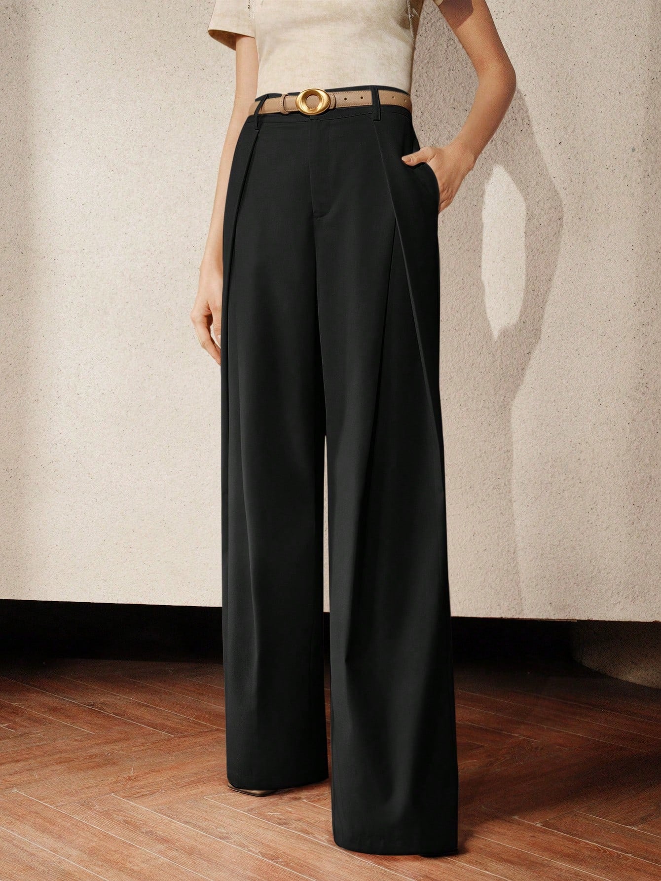 Anewsta Elaire Women High Waist Pleated Casual Wide Leg Pants