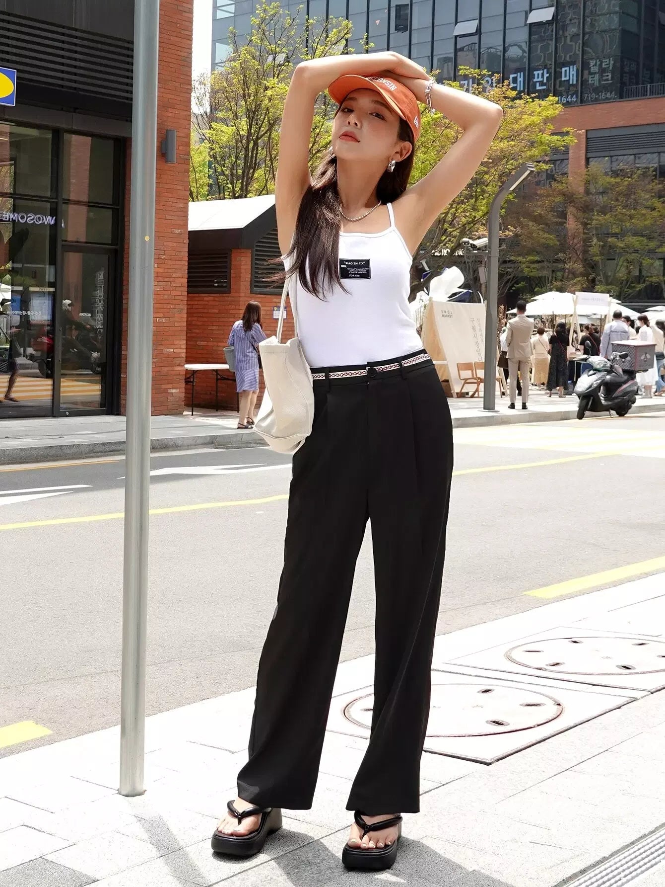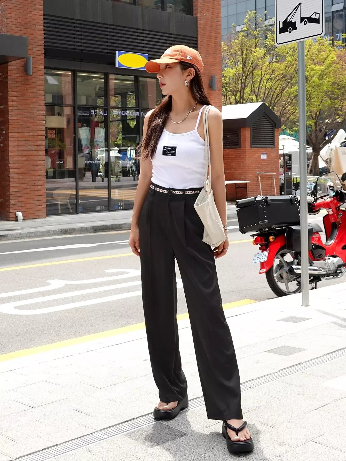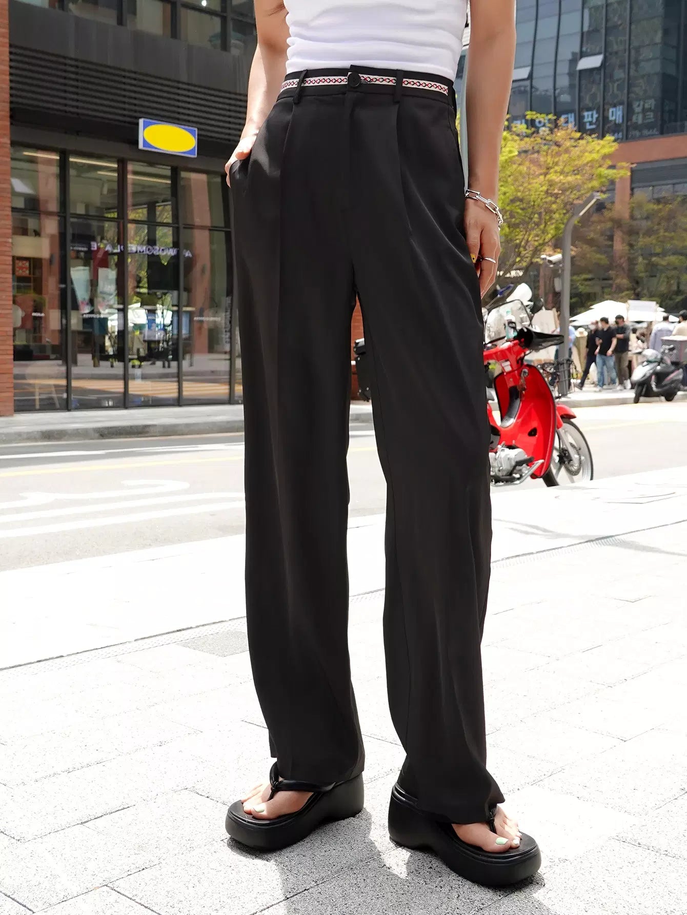 بنطلون بساق مستقيمة بشريط بلون مغاير