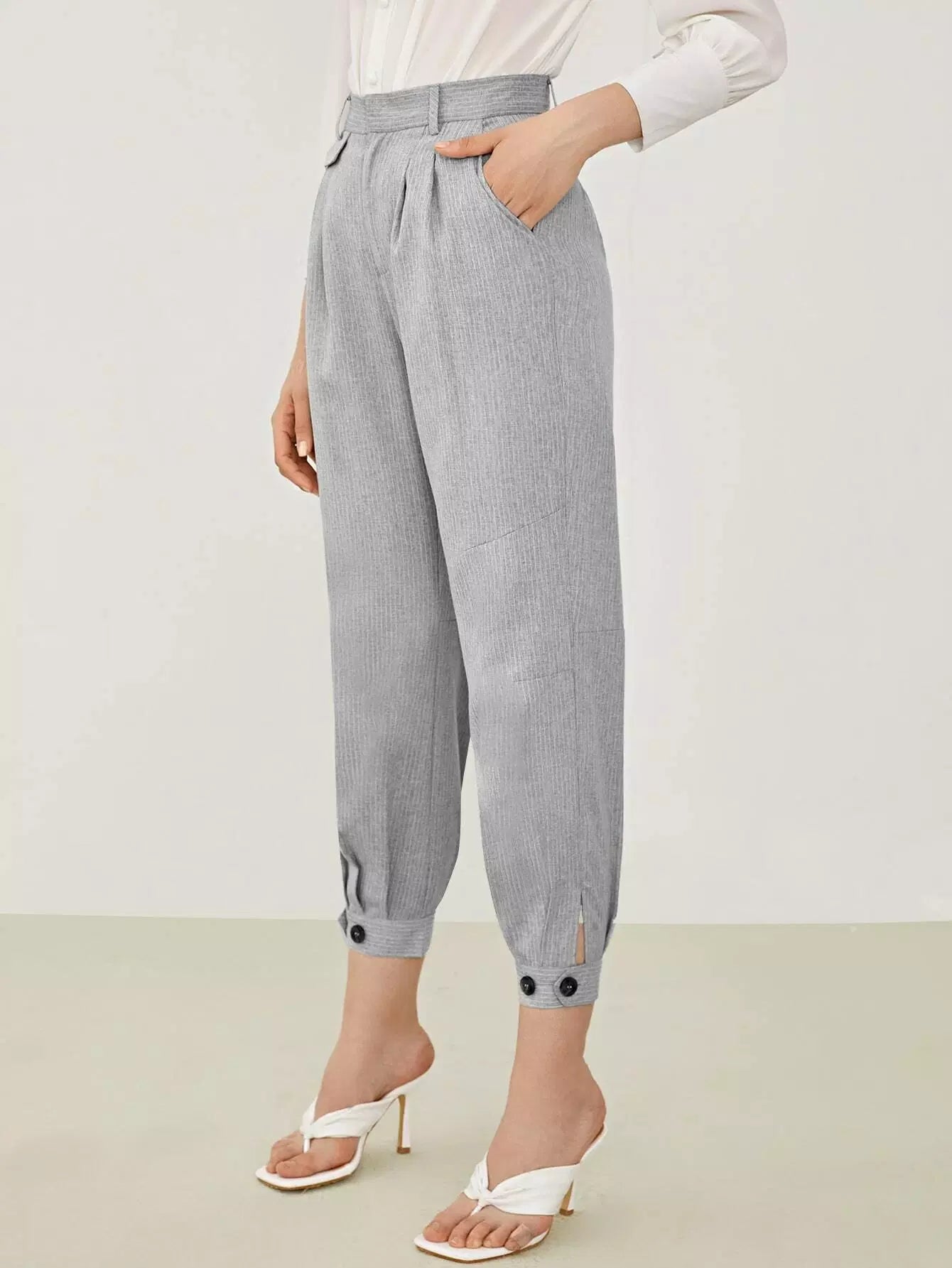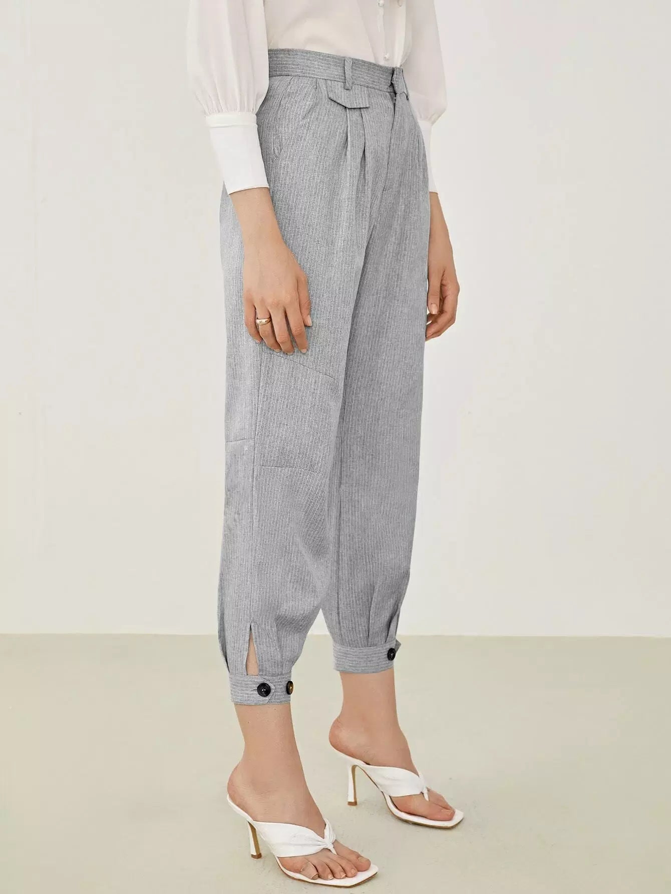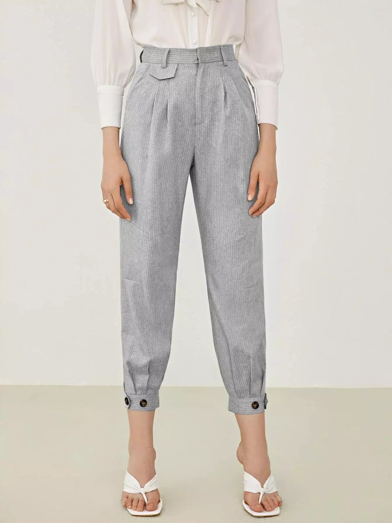 بنطلون مصمم بثنيات أمامية وغطاء أمامي وحاشية أزرار