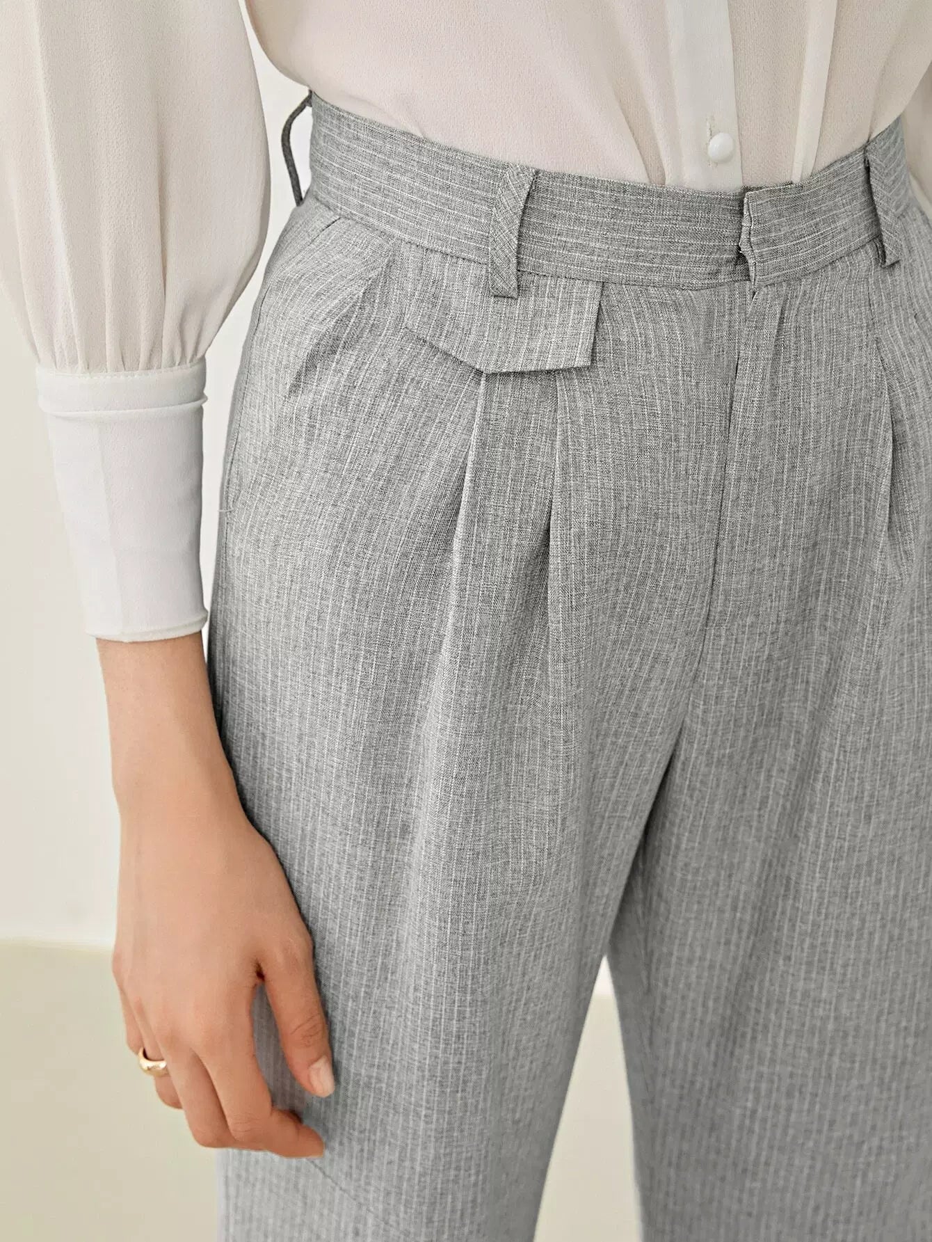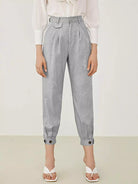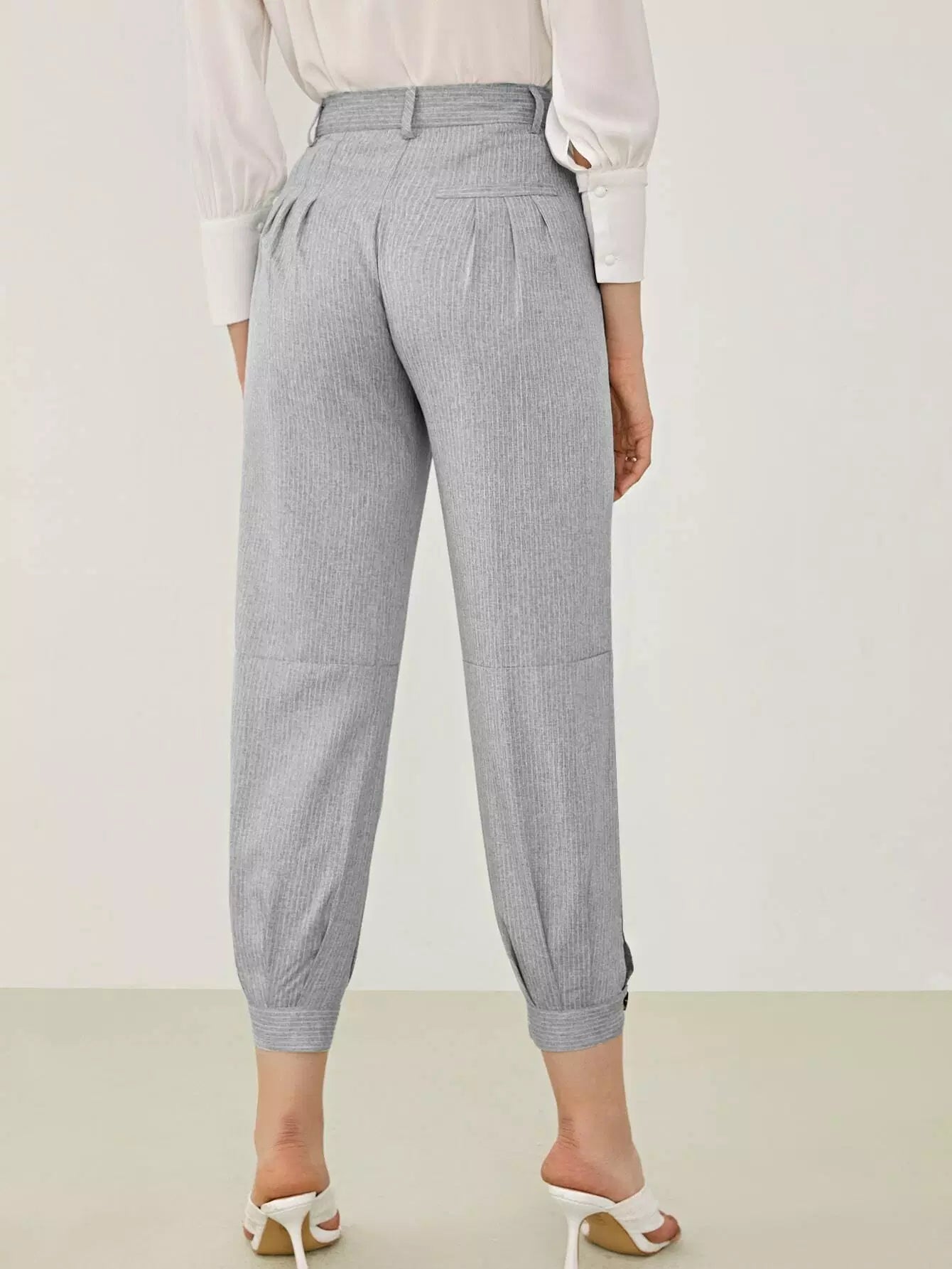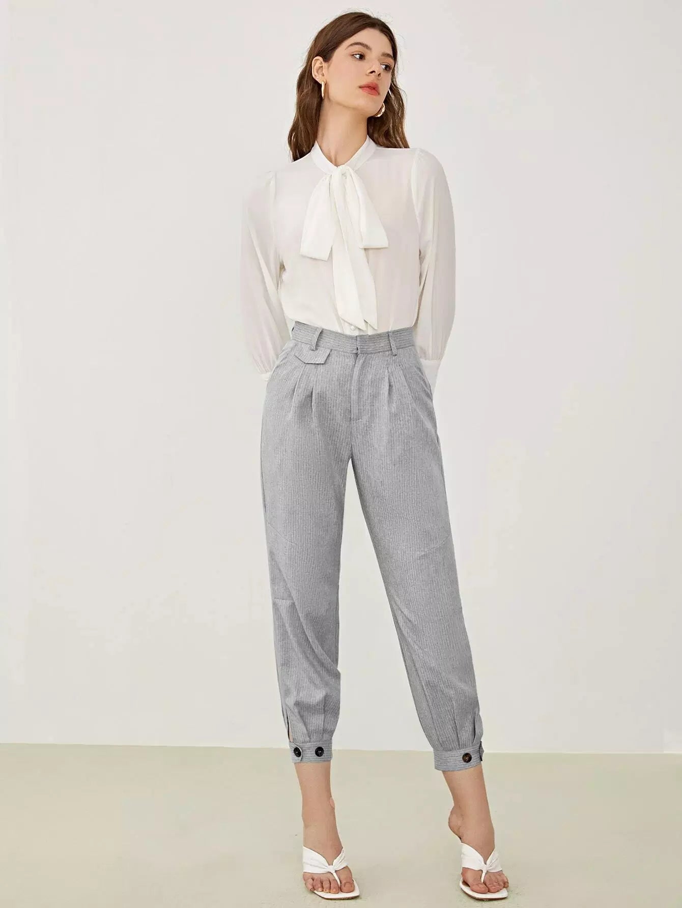 بنطلون مصمم بثنيات أمامية وغطاء أمامي وحاشية أزرار