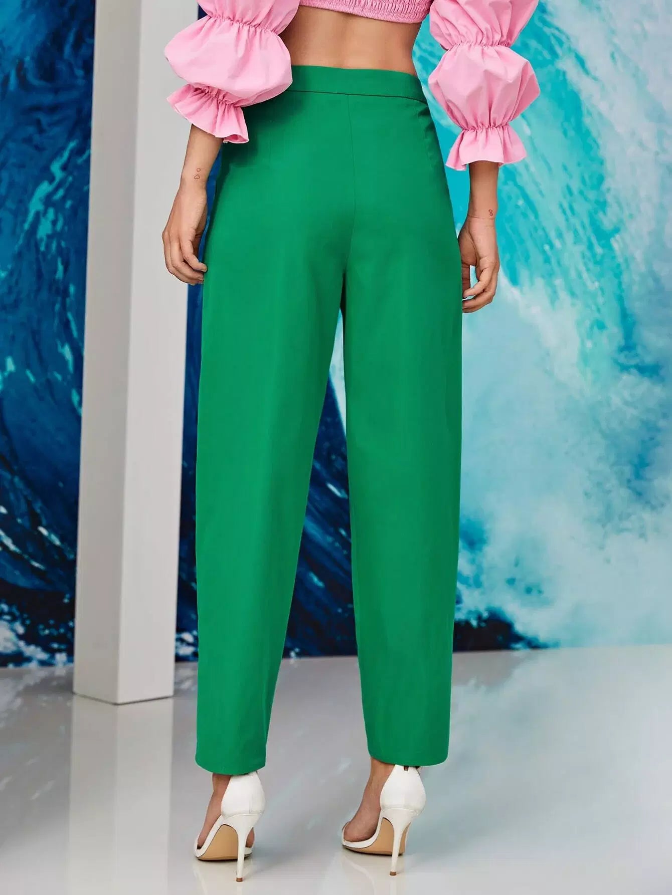 النساء - بنطال سادة مطوي ومطوي