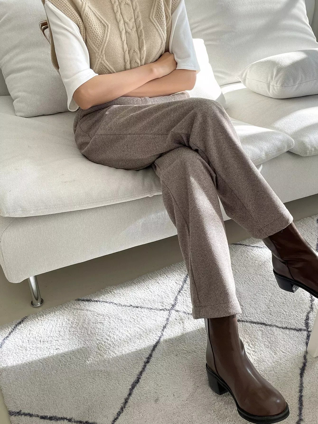بنطال مفصل بجيوب مائلة ونقشة متعرجة