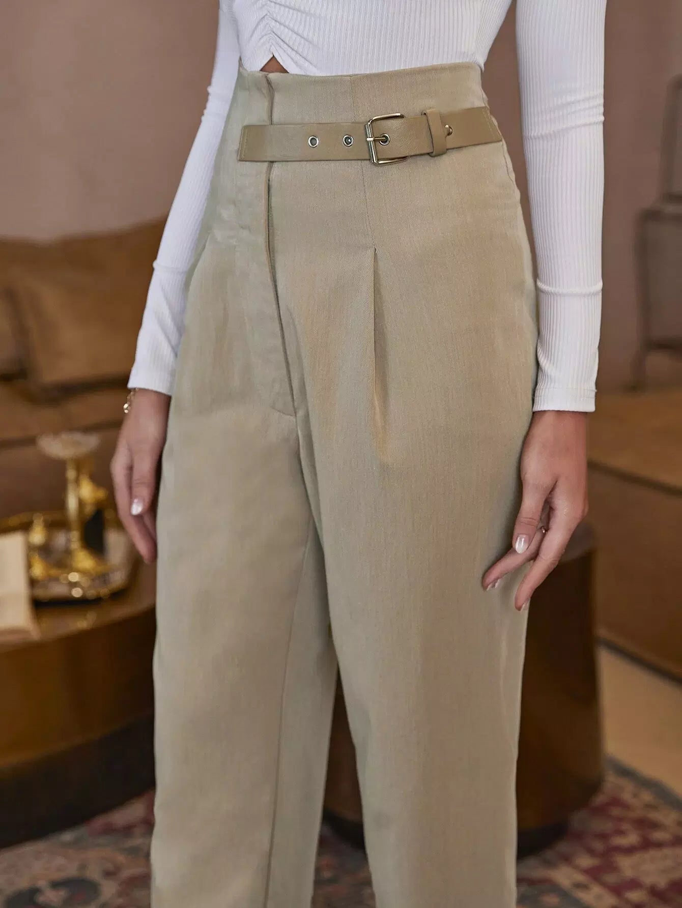 بنطلون ذو خصر عالٍ مُفصّل بإبزيمات عالية الخصر