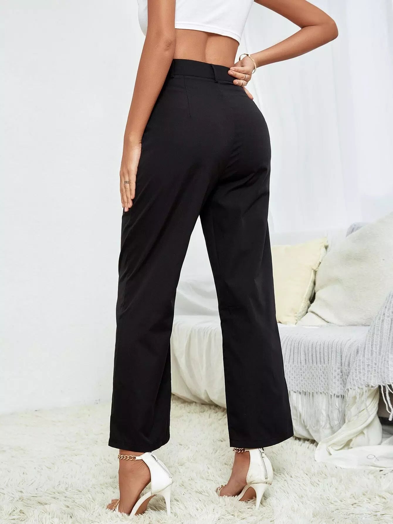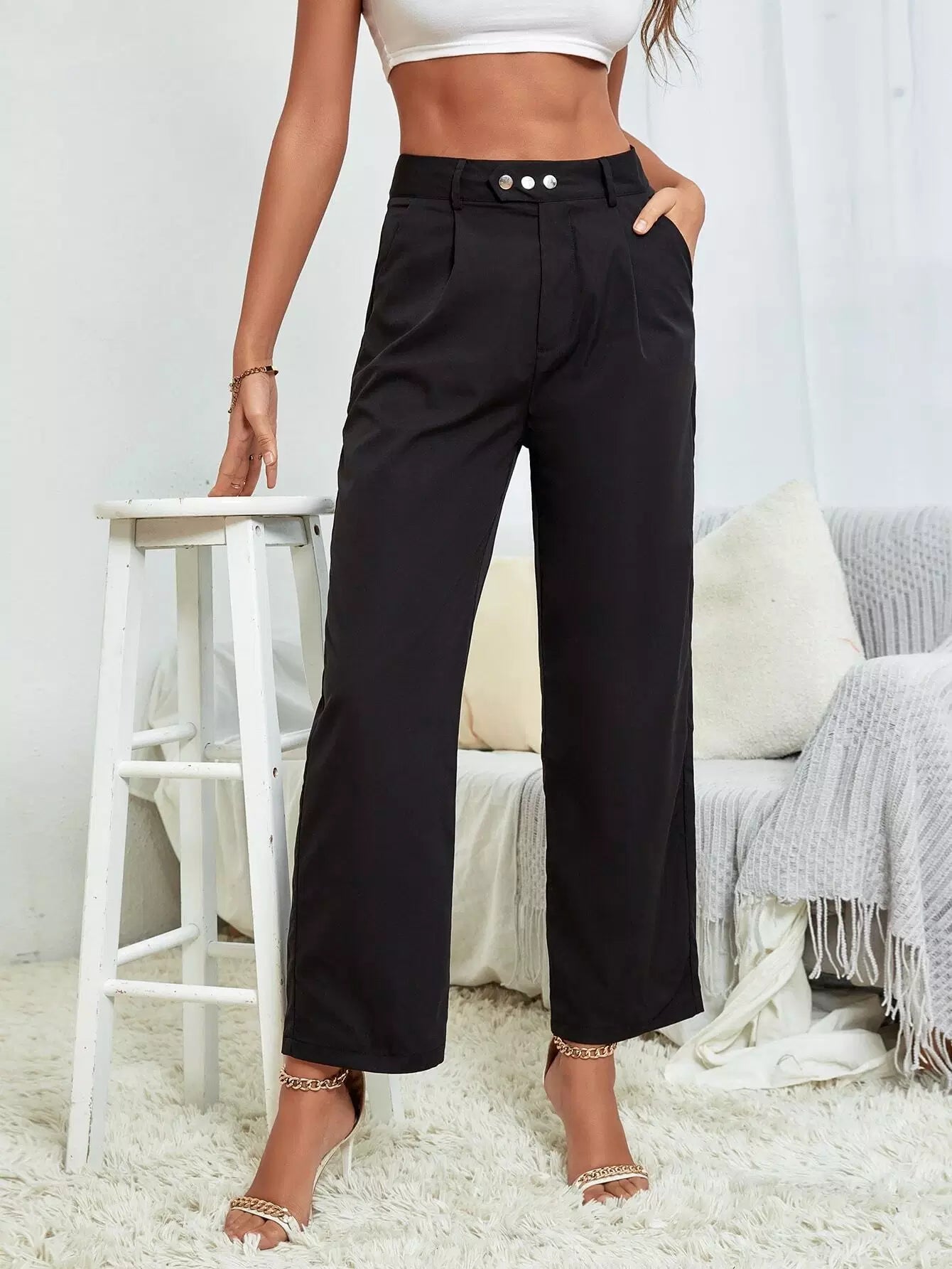 بنطلون مصمم بخصر مرتفع وجيوب مائلة