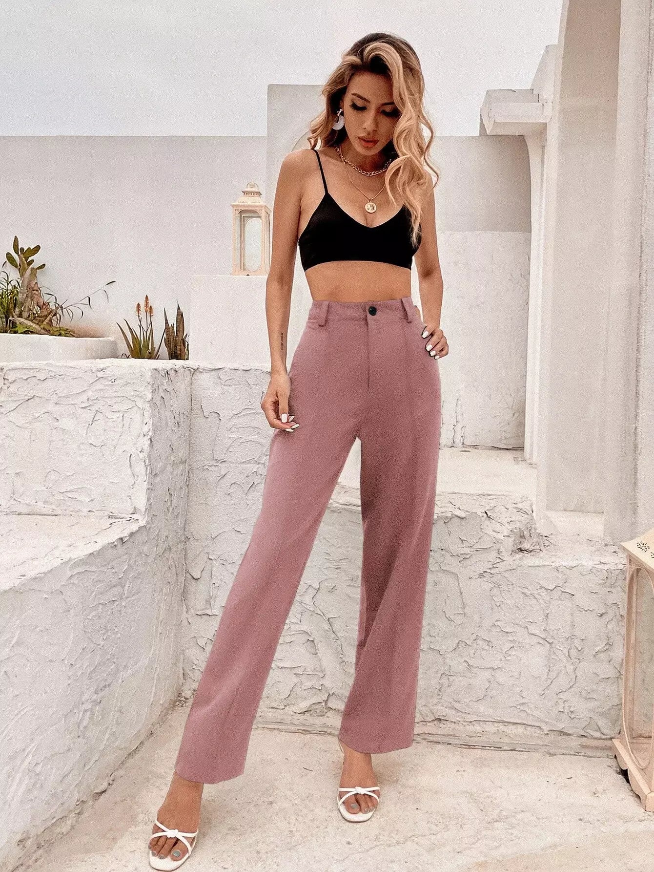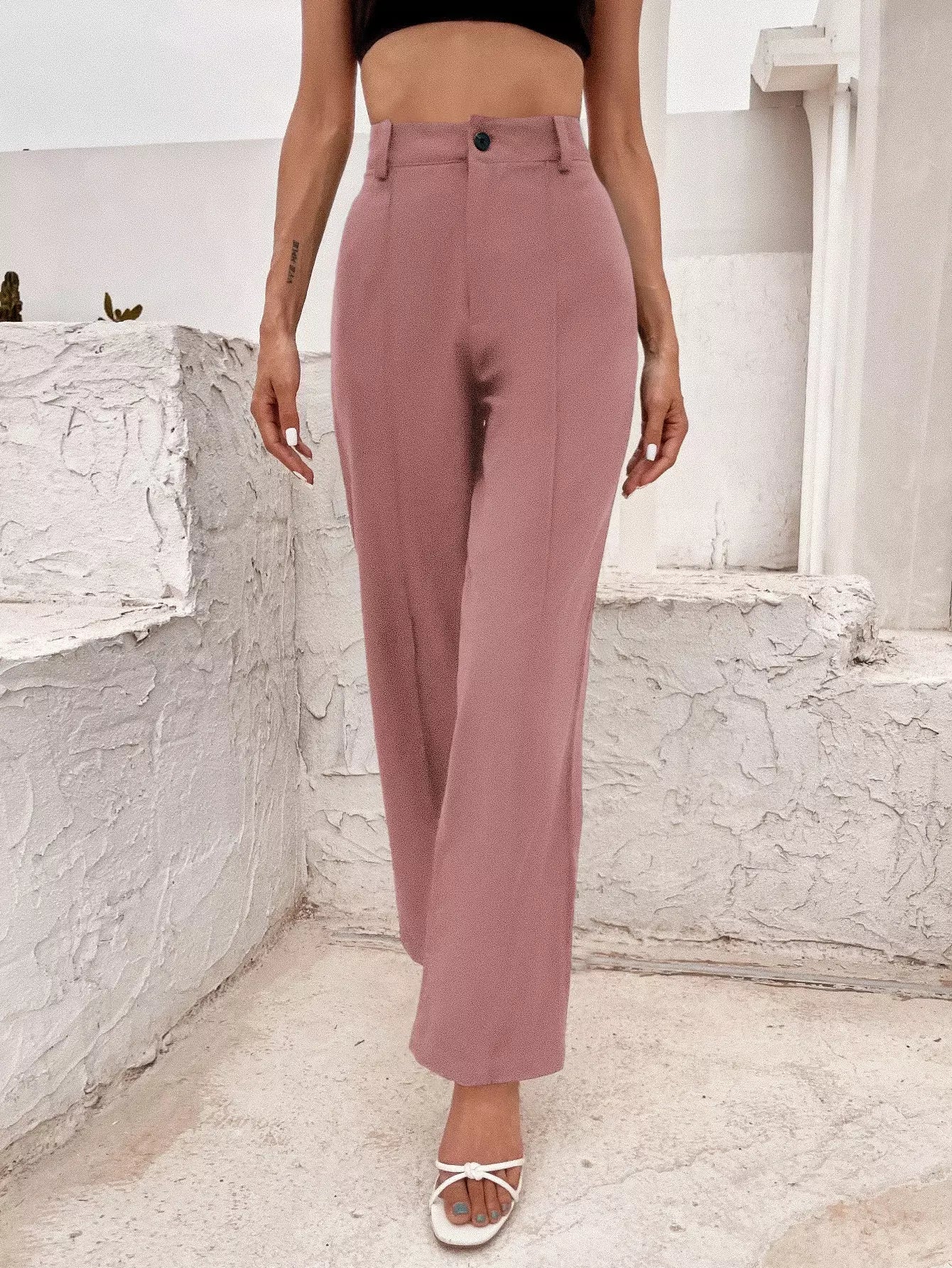 بنطلون بأزرار سادة بأزرار مصممة خصيصاً