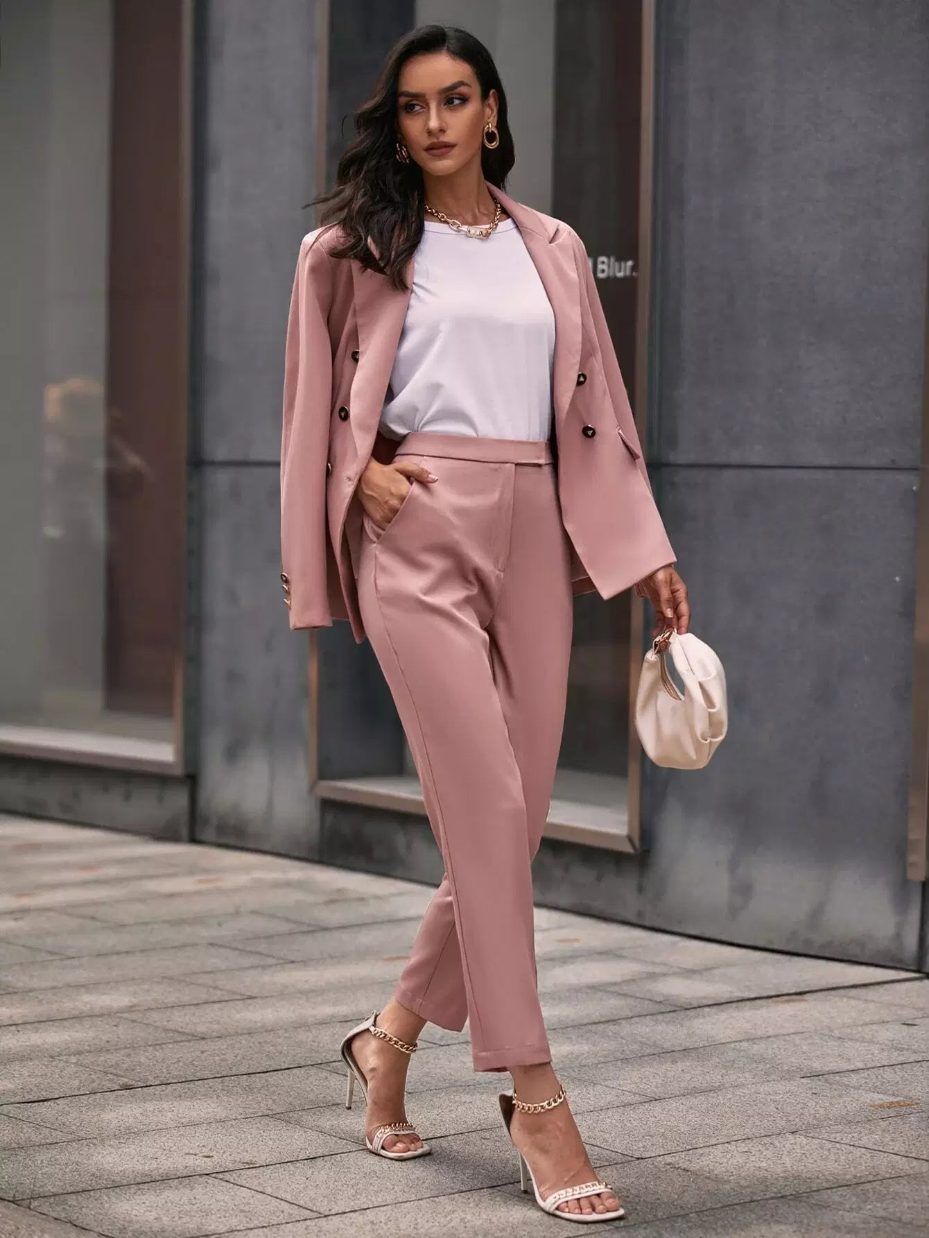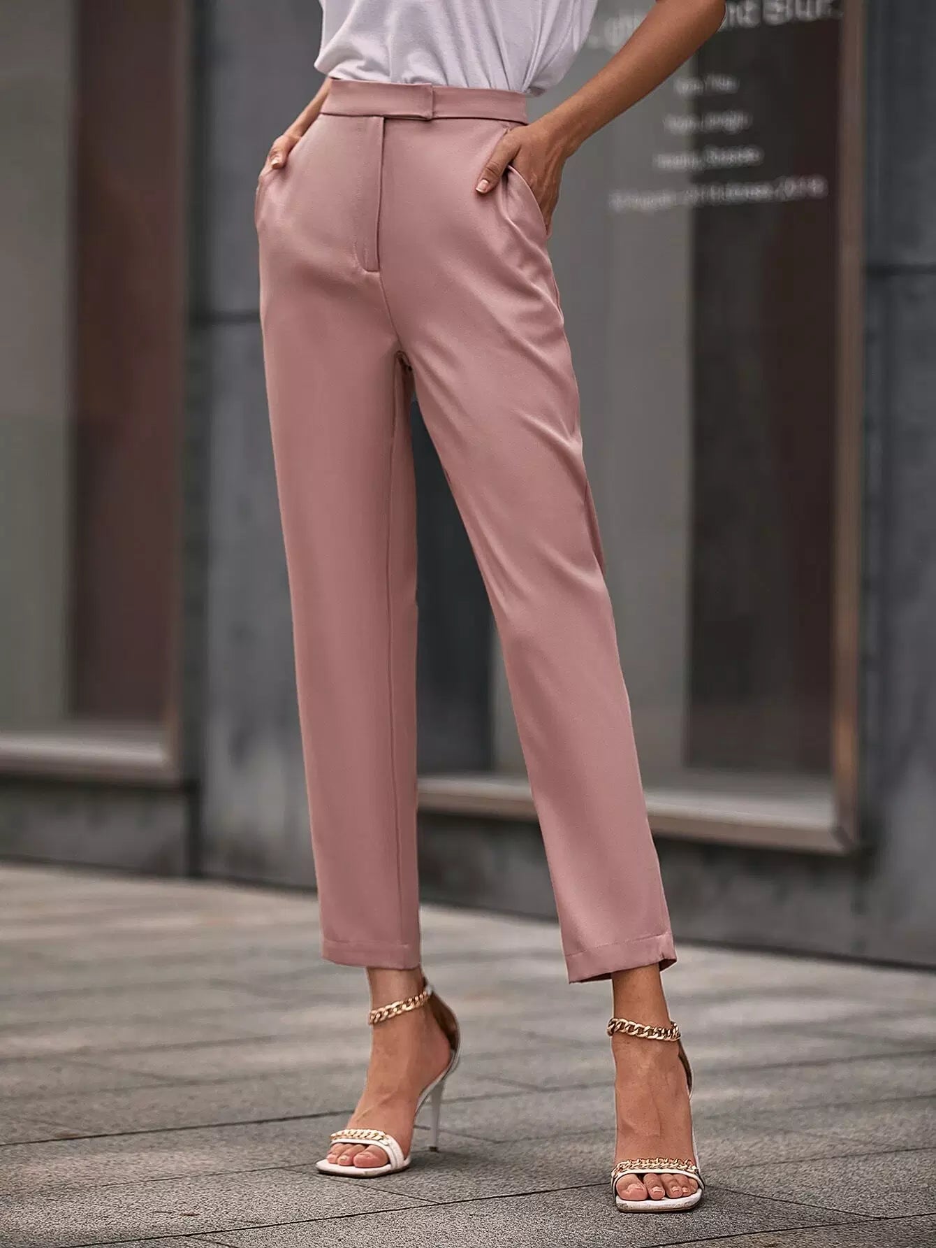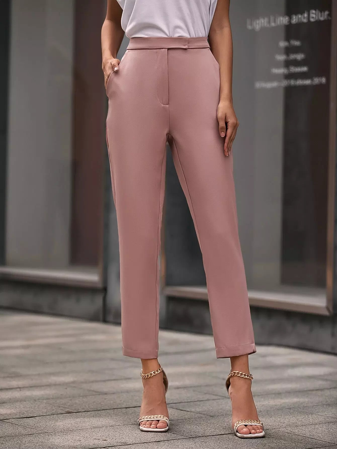 بنطلون سادة بجيب مائل بساق مستقيمة