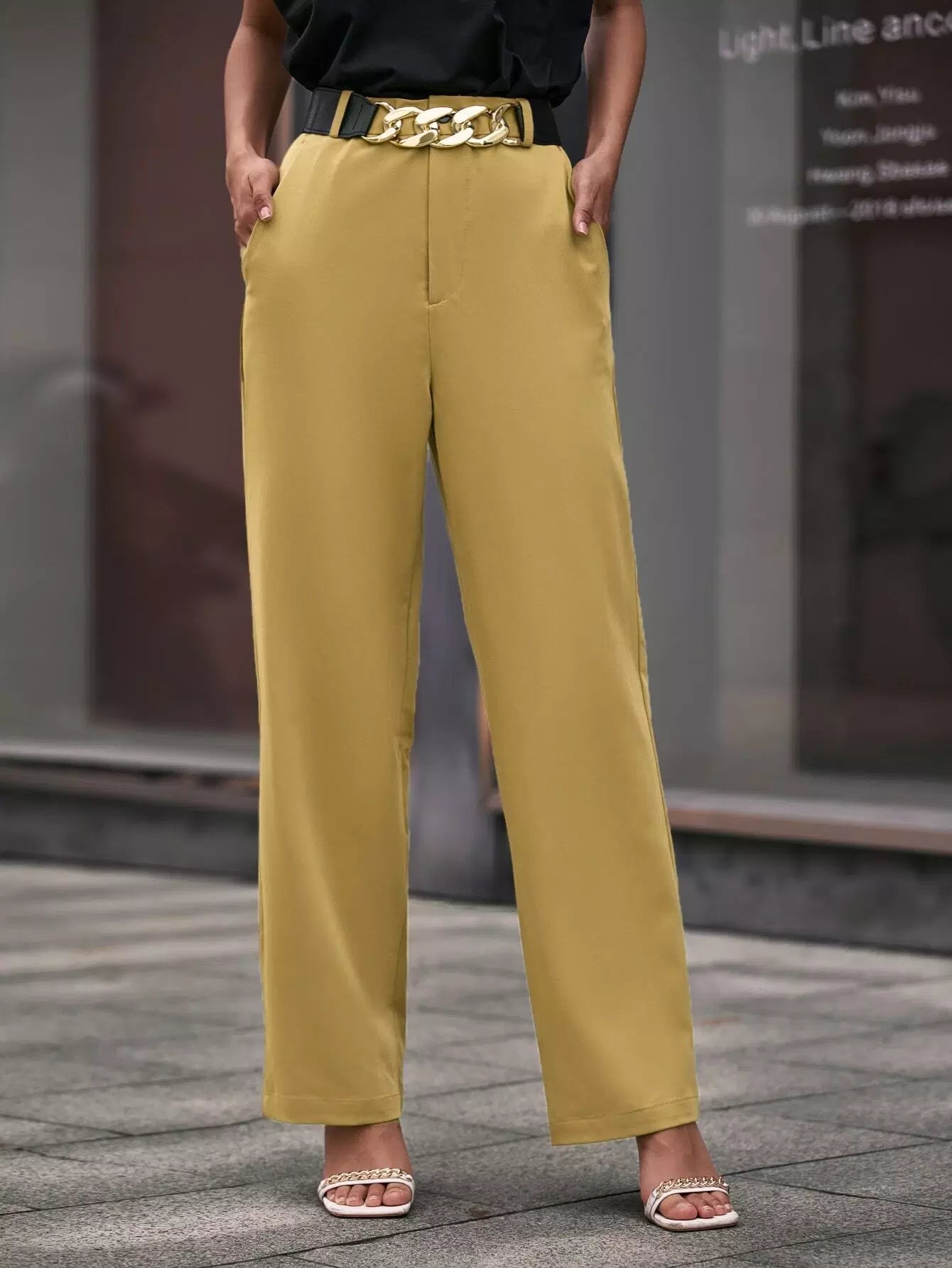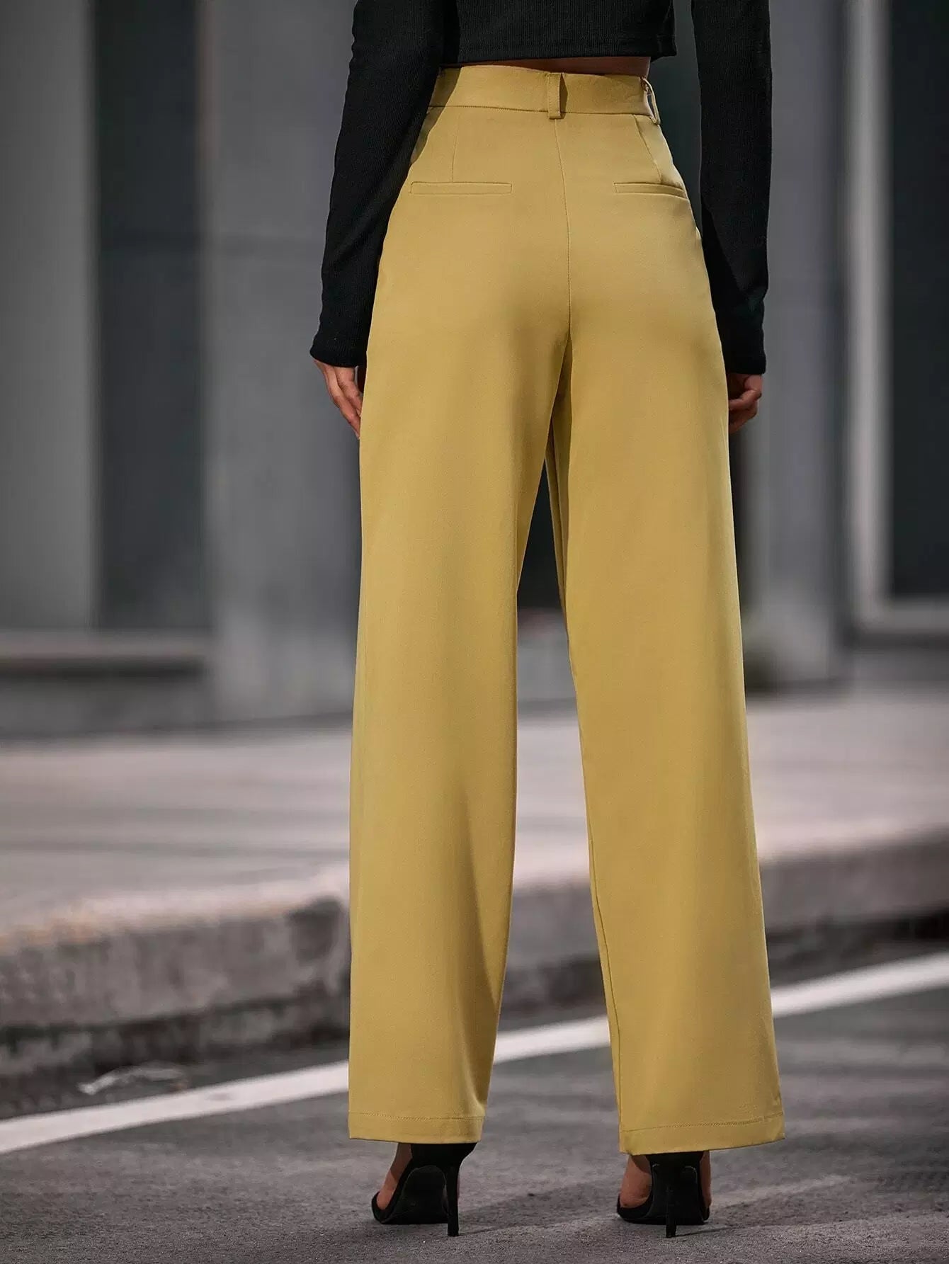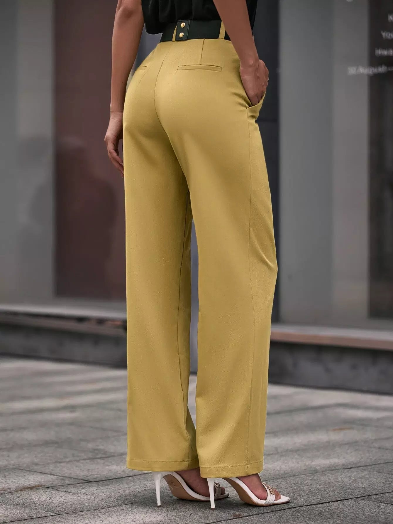 بنطلون سادة بجيوب مائلة مائلة بدون حزام