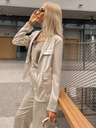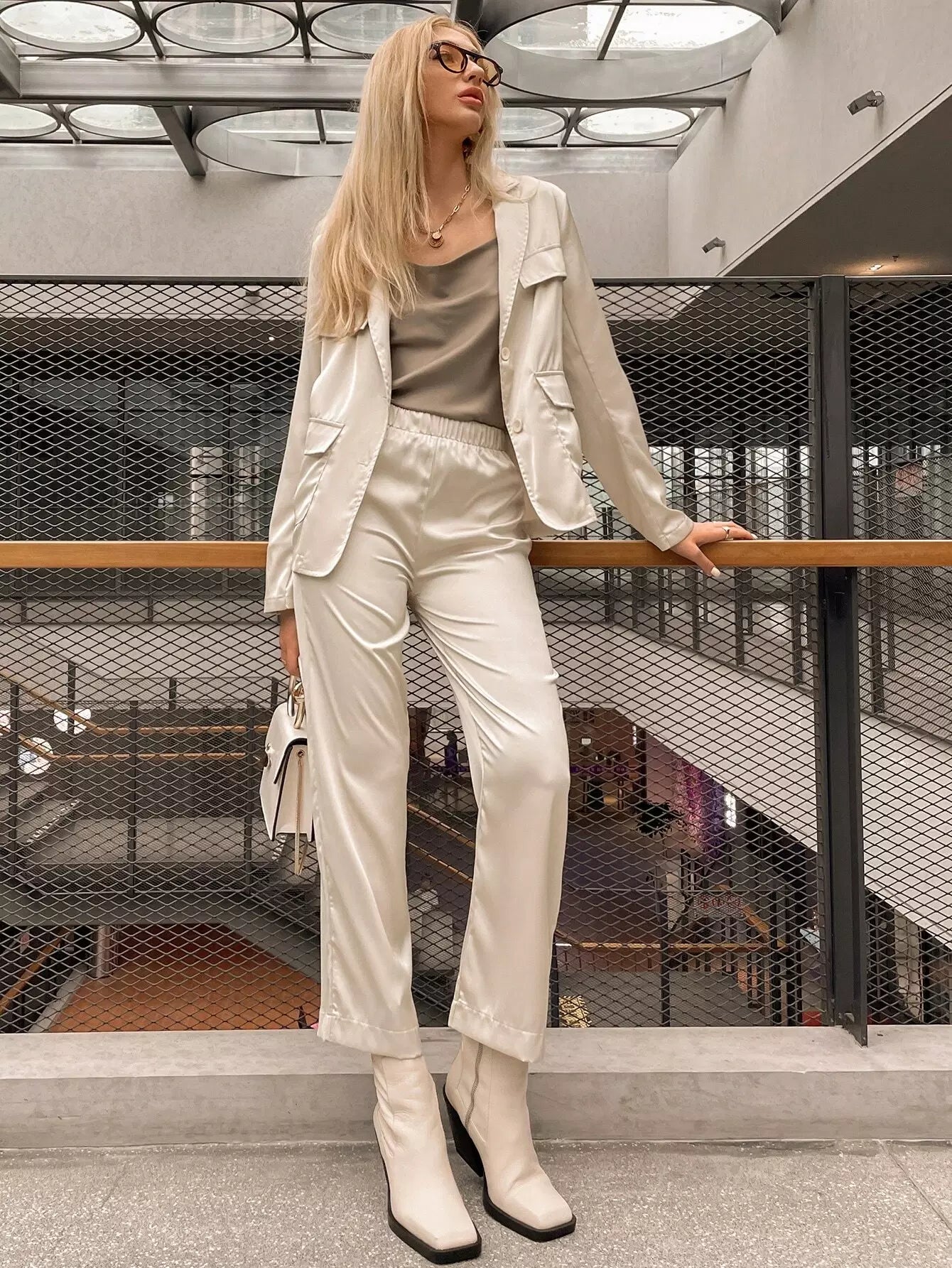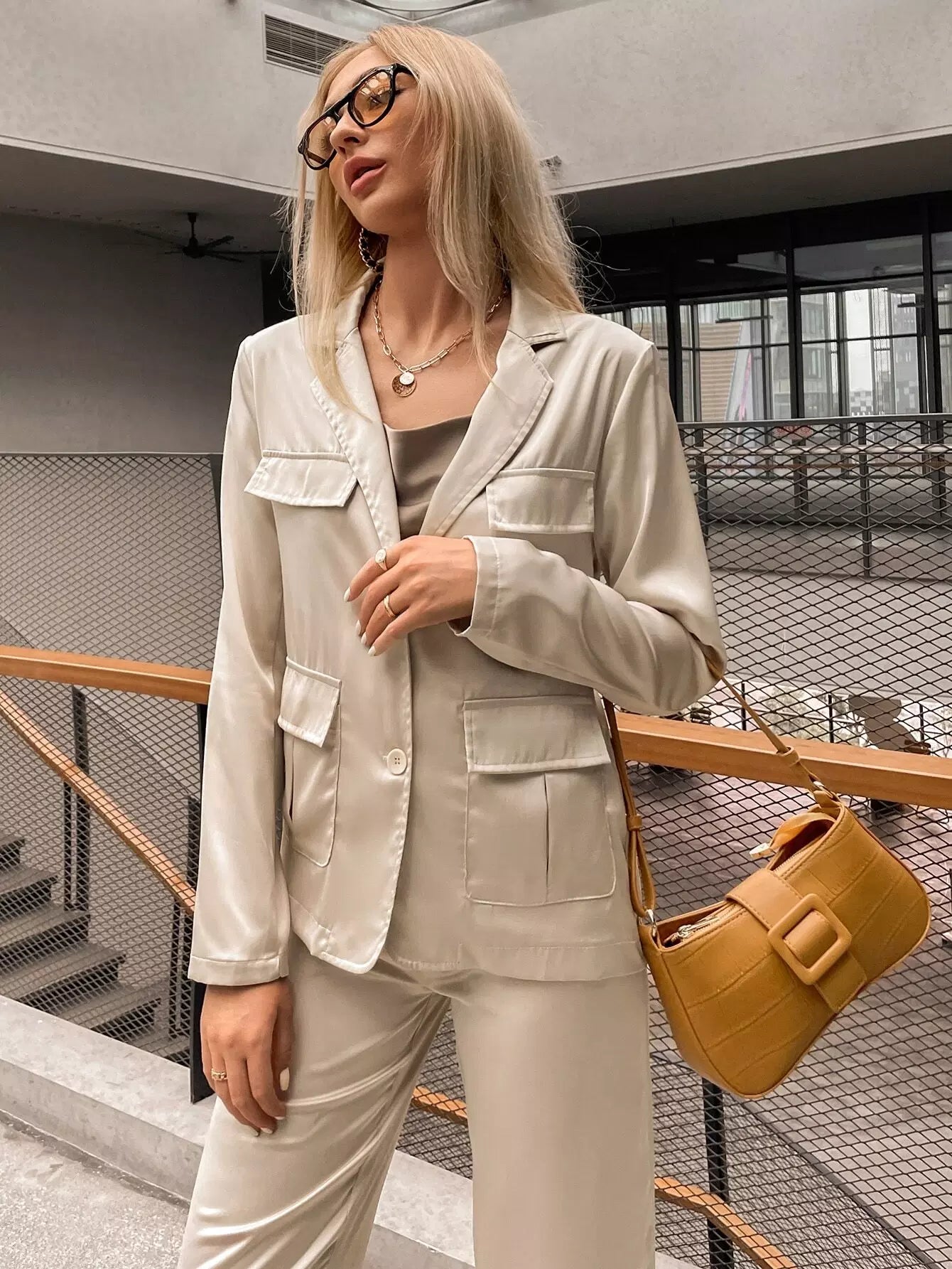 سترة وبنطلون بغطاء جيب بأزرار مزدوج وجيب بغطاءين