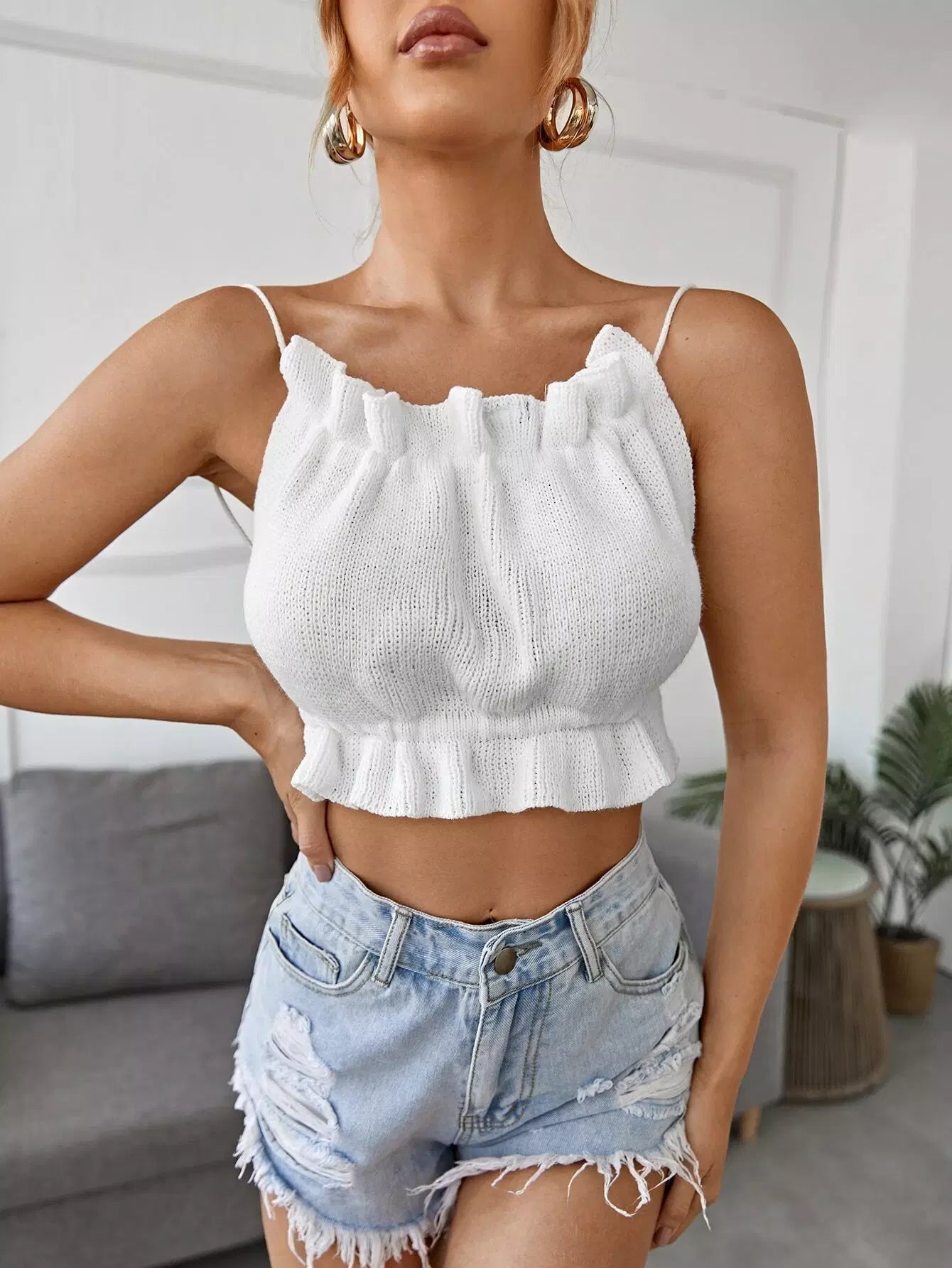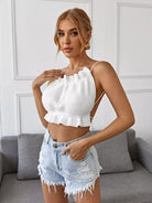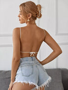 بلوزة كاميه محبوكة بدون ظهر وربطة عنق من الخلف