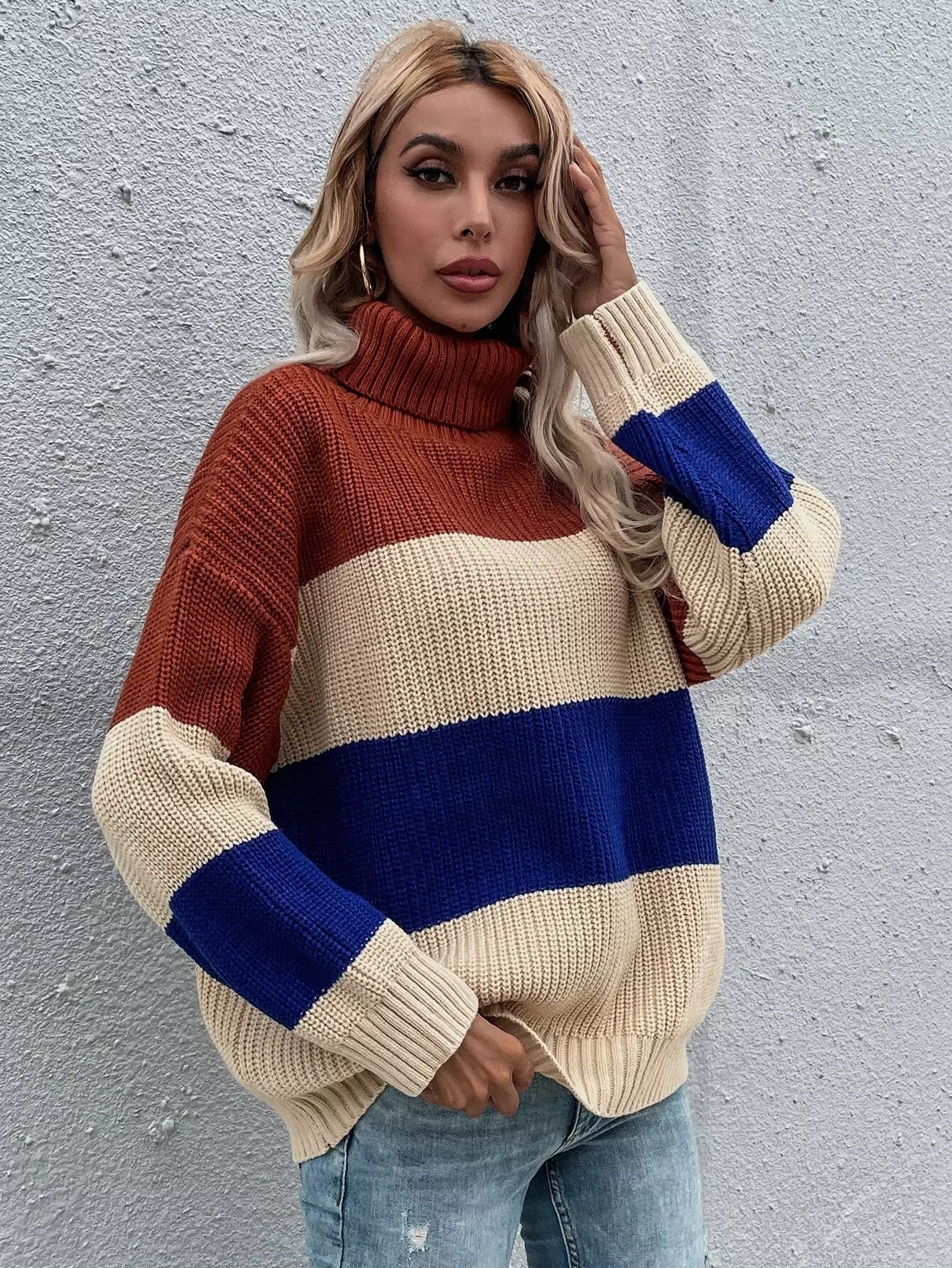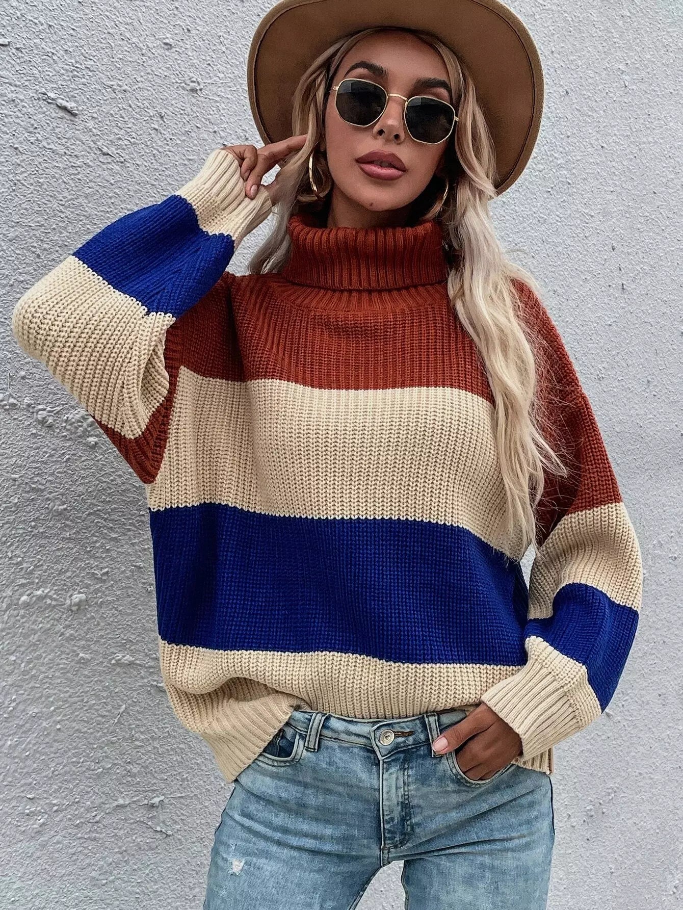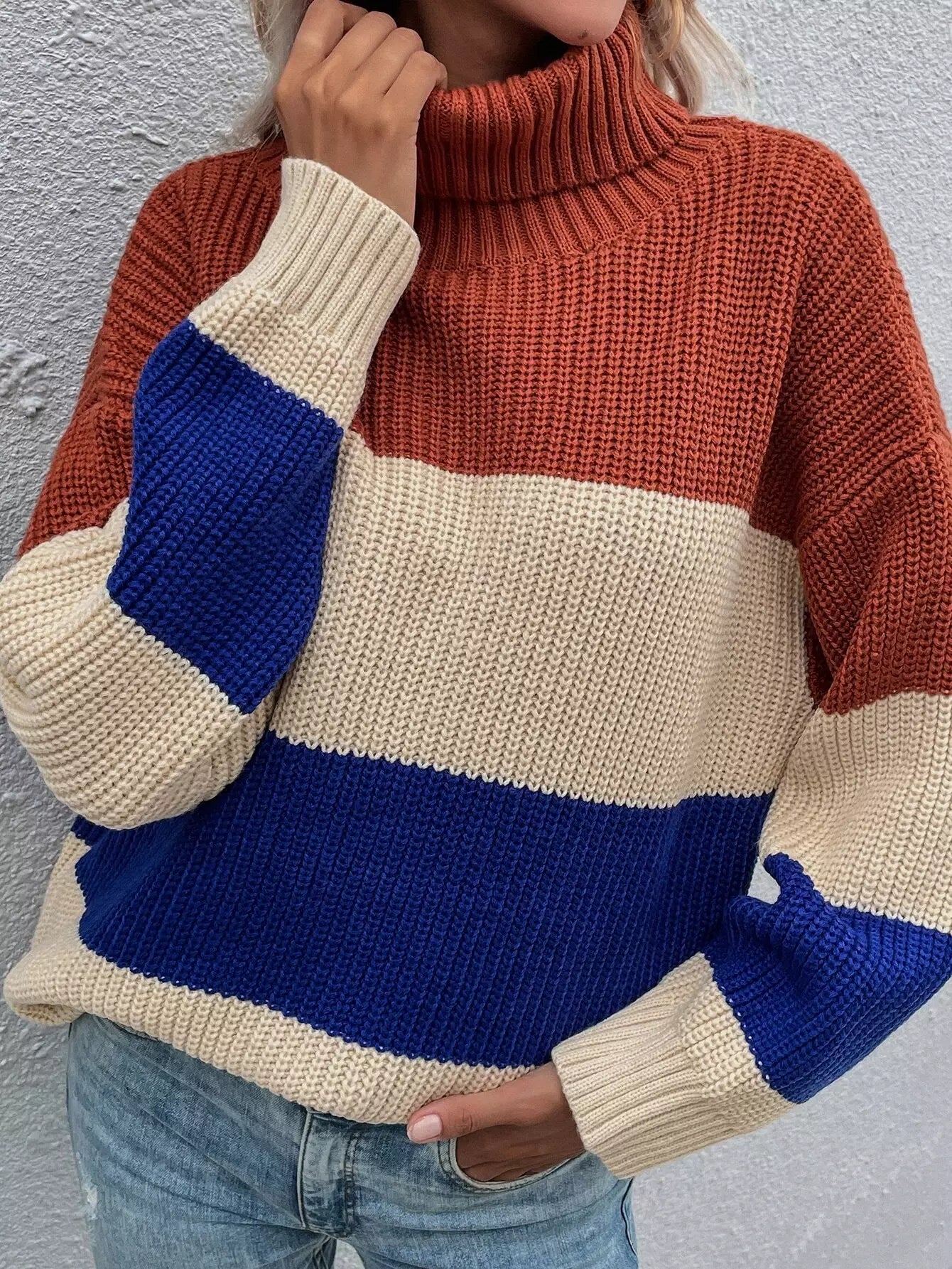 سترة برقبة سلحفاة مخططة على شكل مخطط بلوك