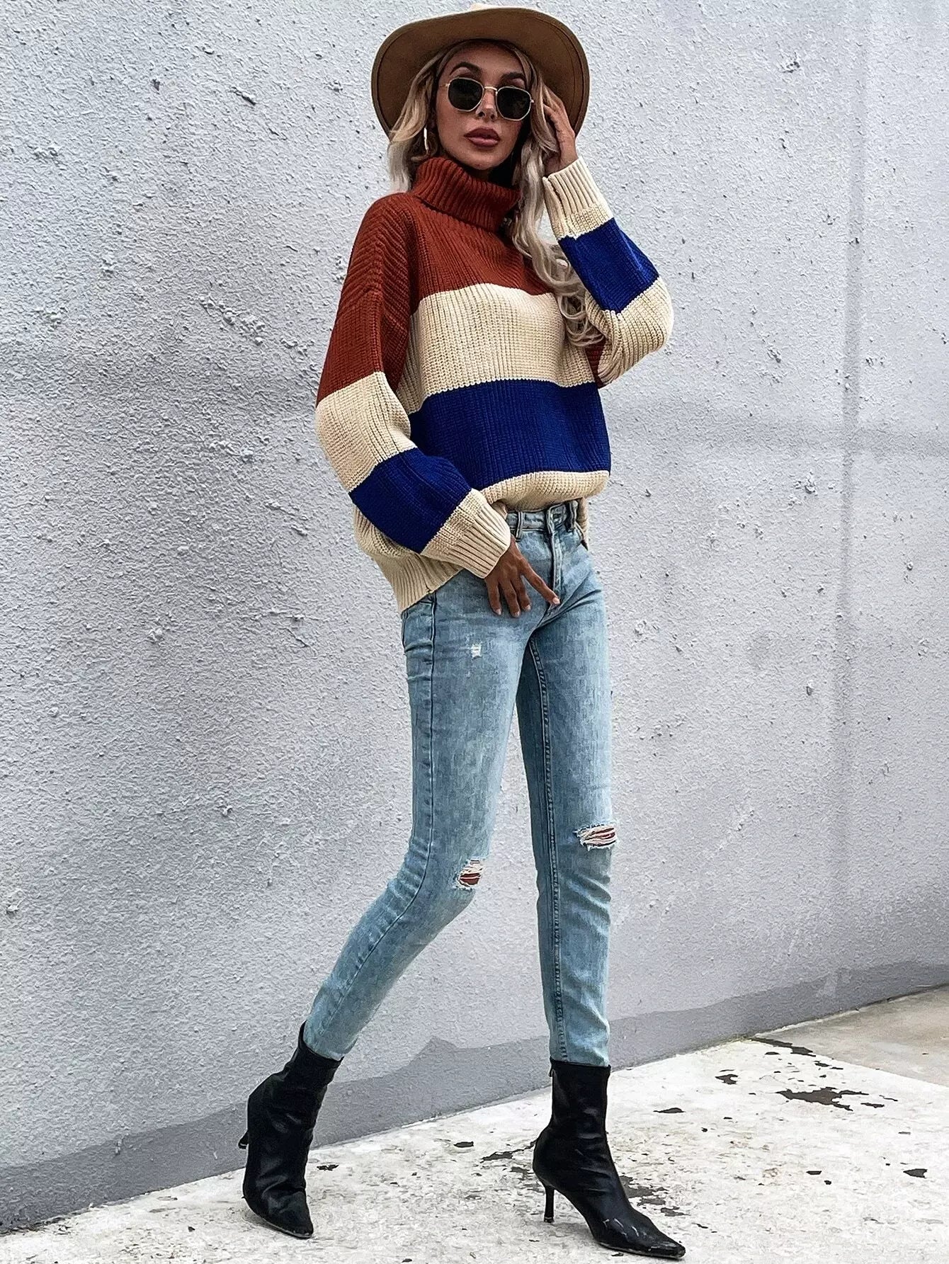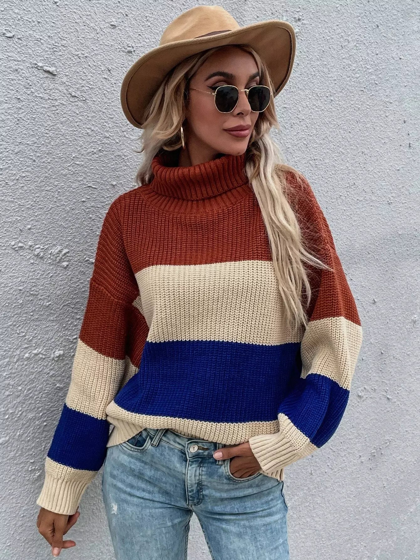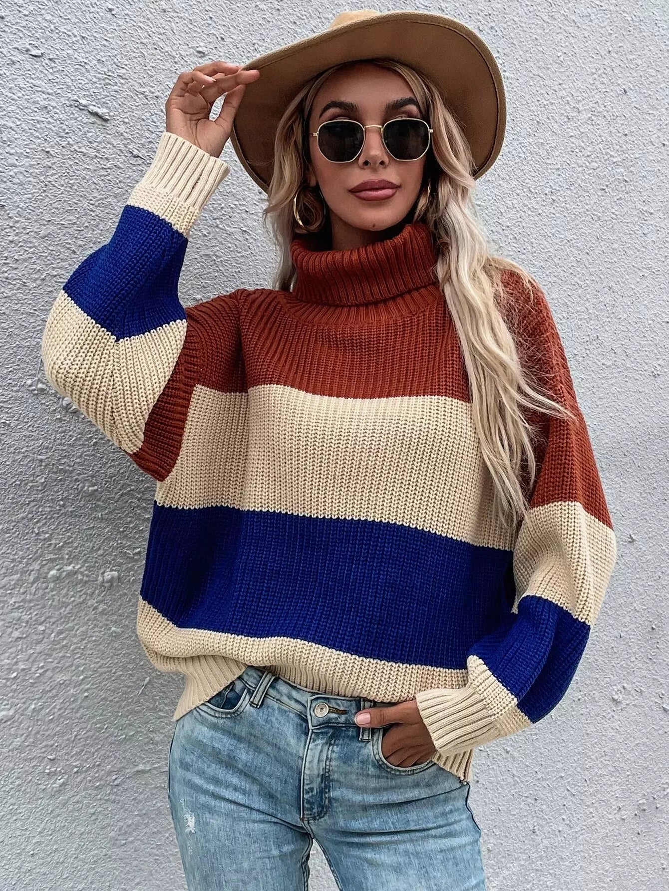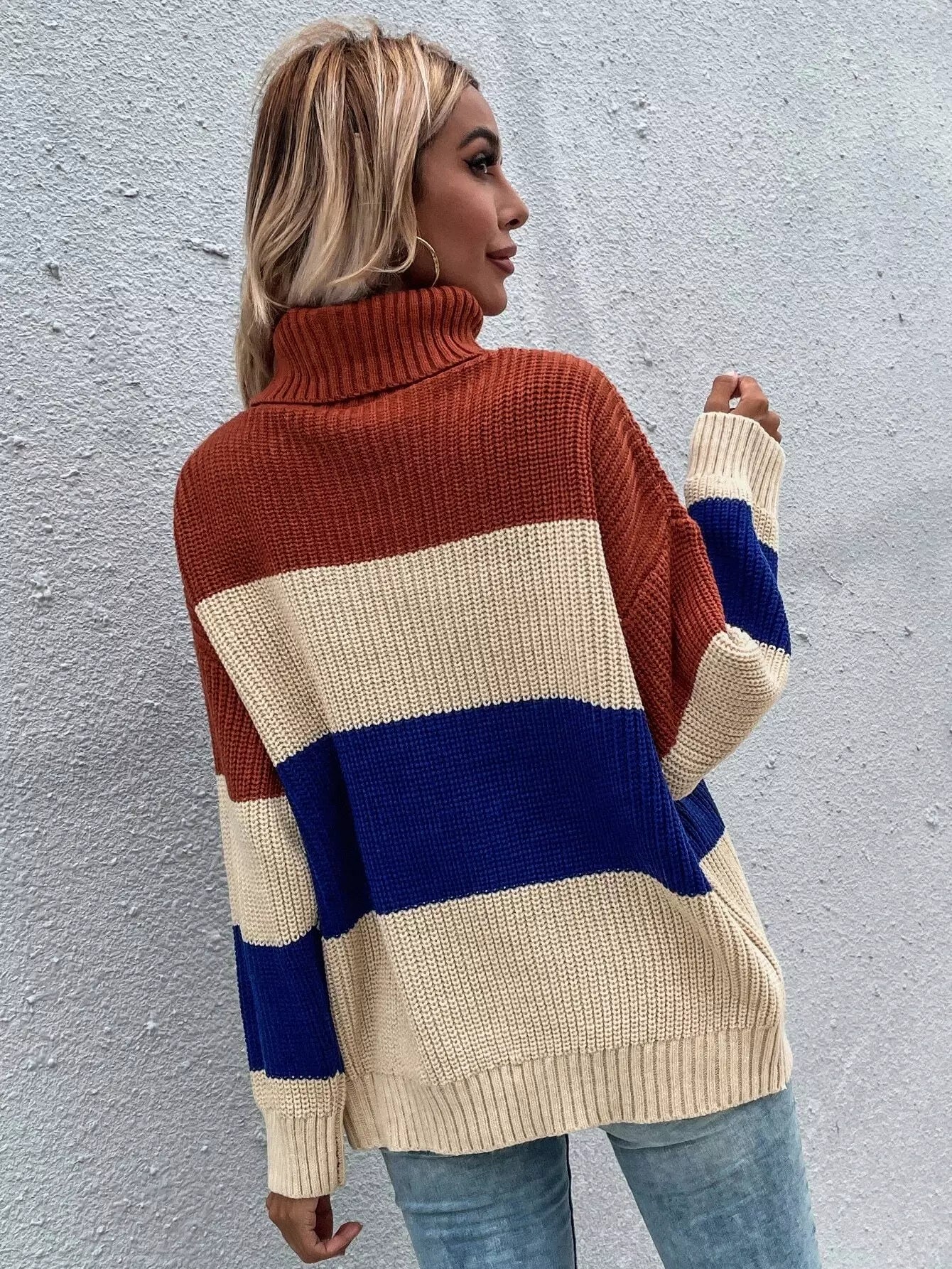 سترة برقبة سلحفاة مخططة على شكل مخطط بلوك