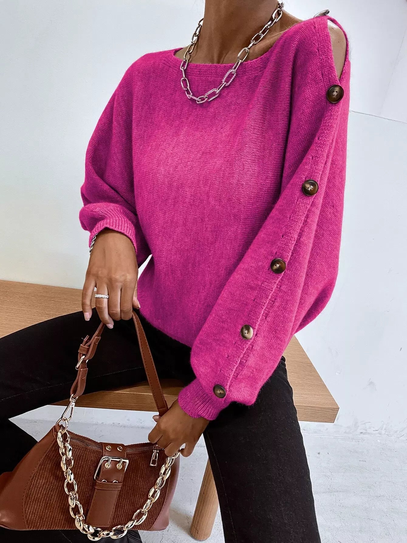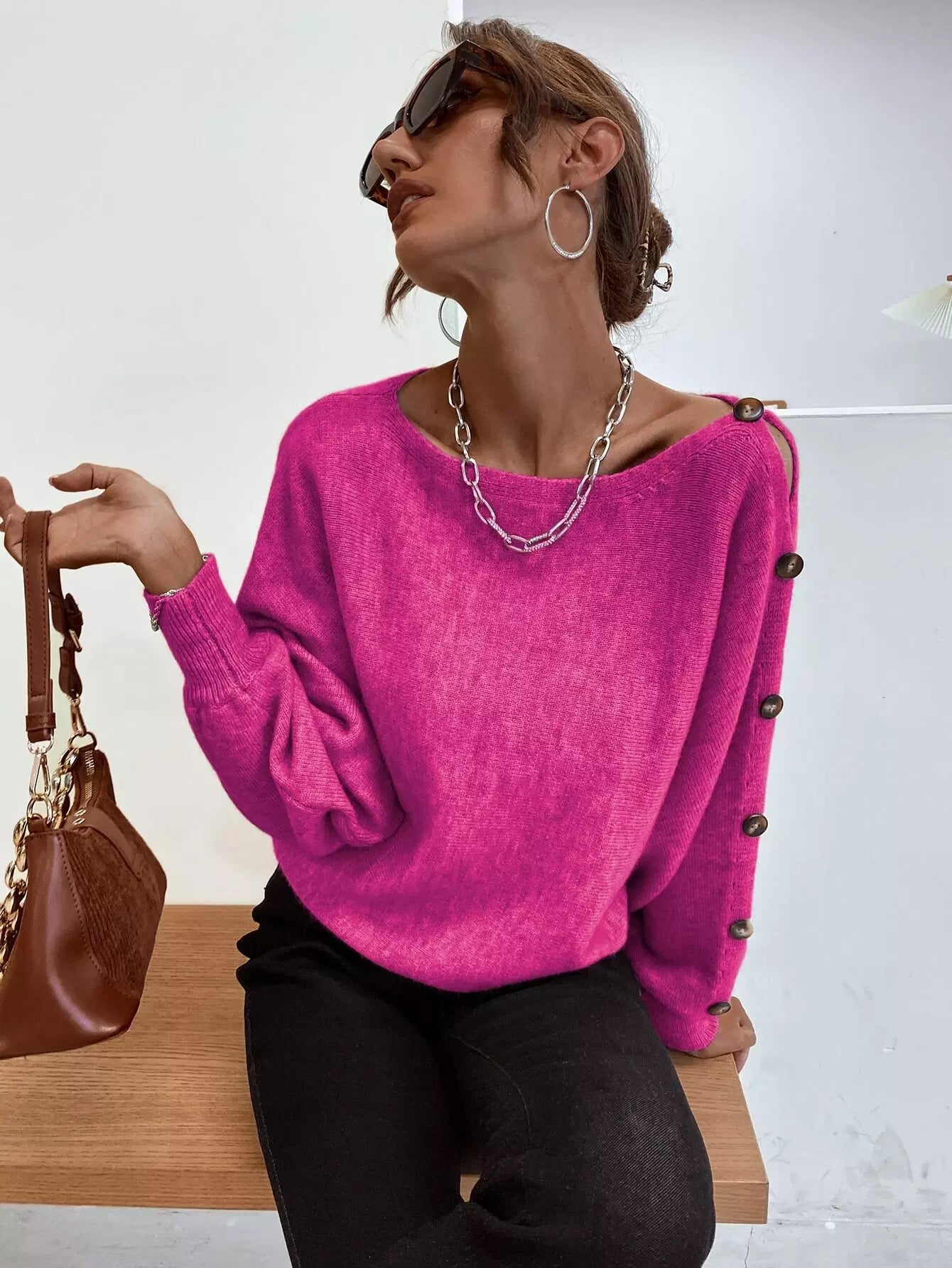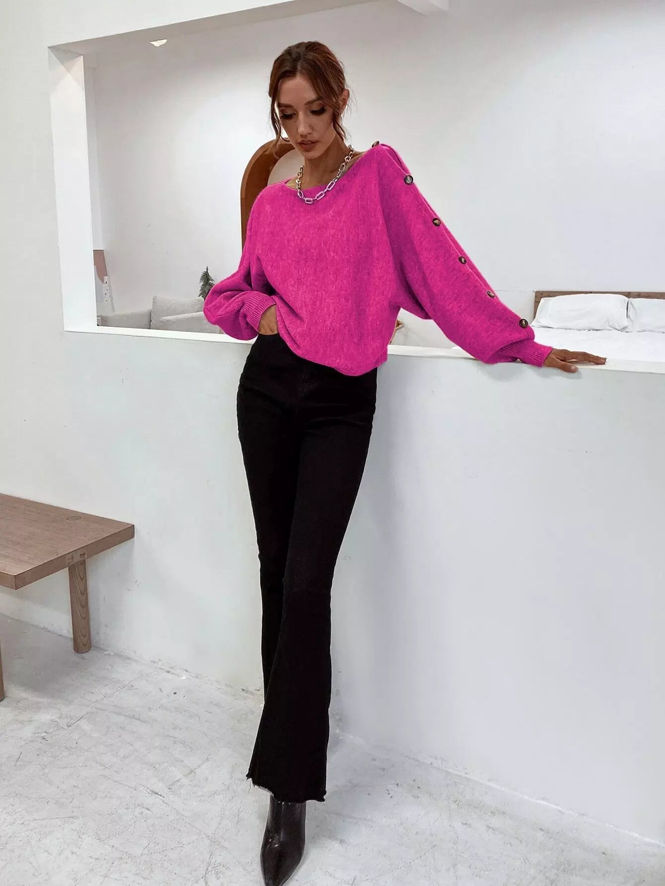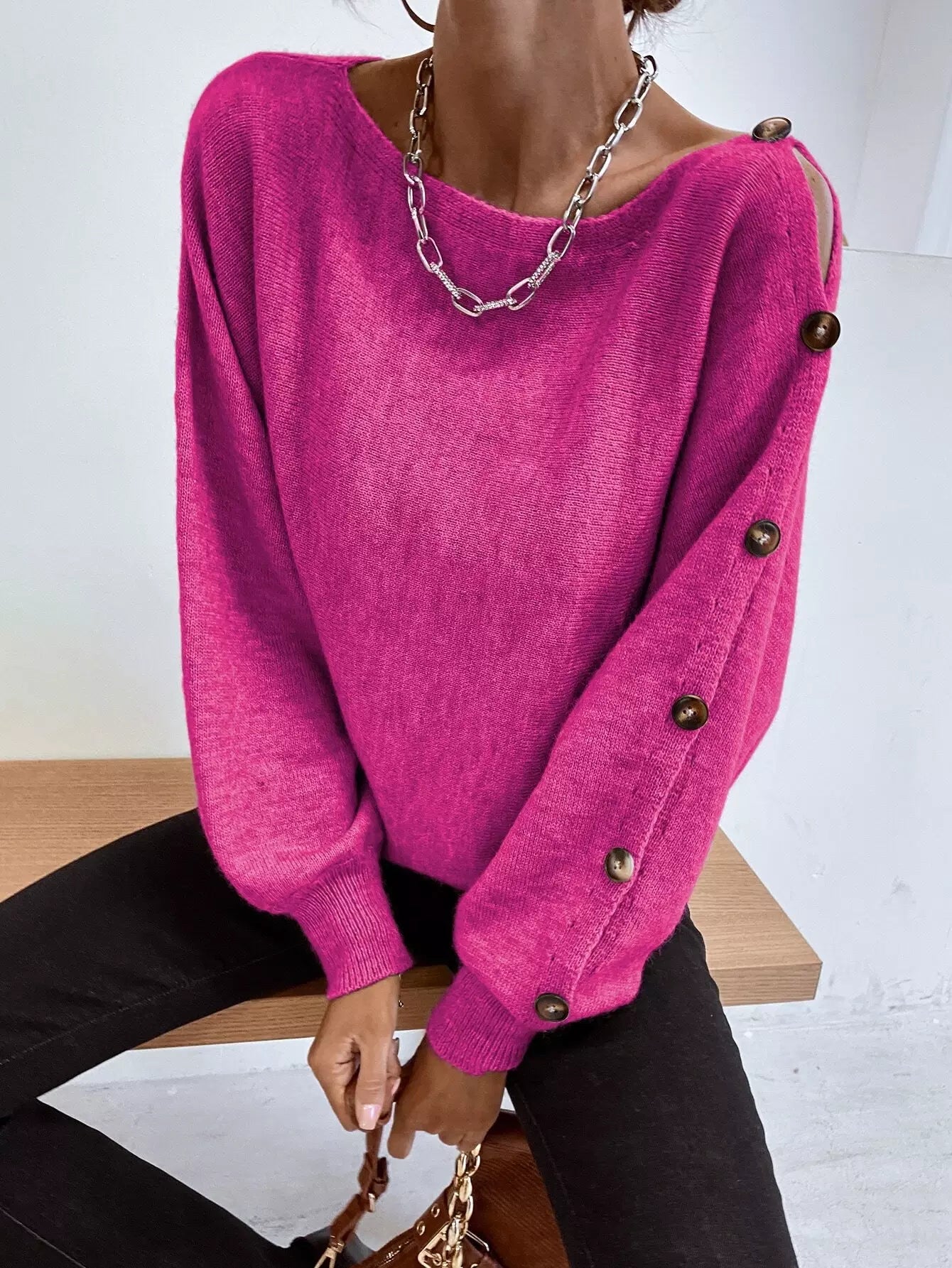 سترة بفتحة رقبة على شكل قارب وتفاصيل أزرار