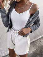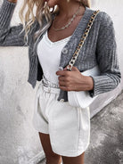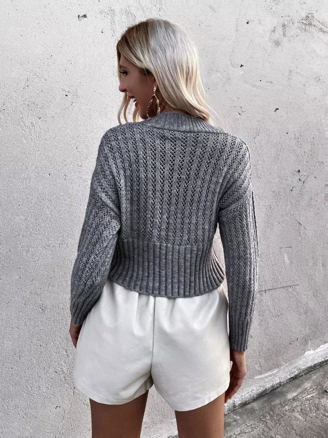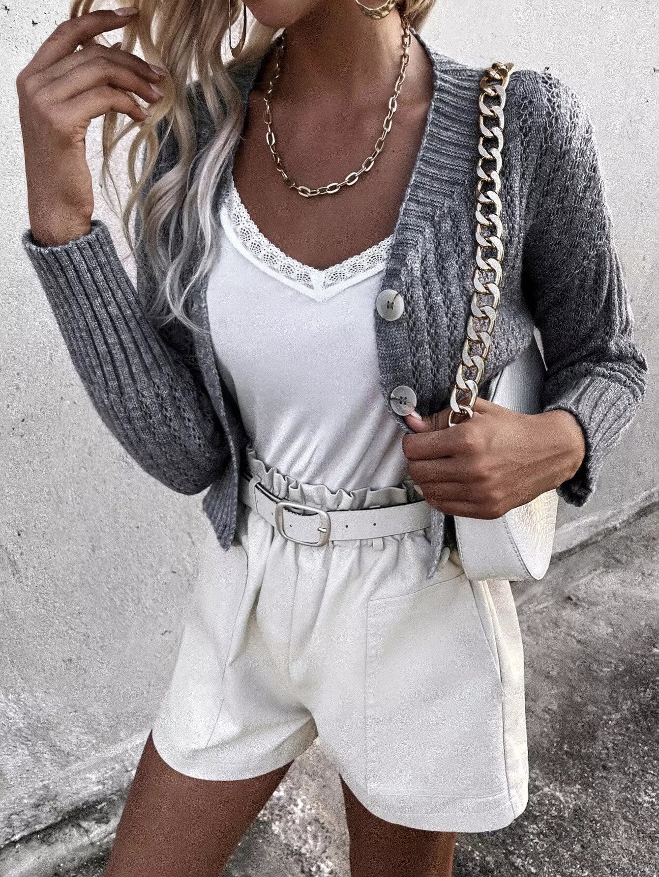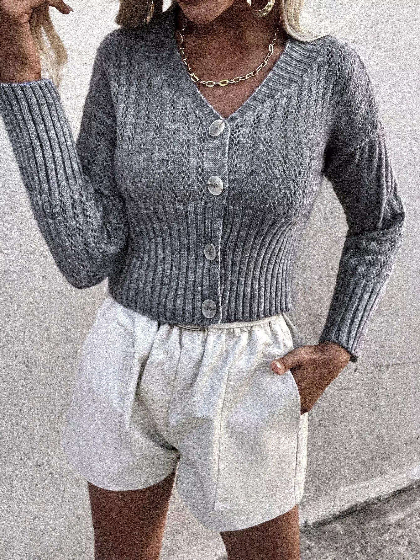 كارديغان قصير بياقة على شكل حرف V برقبة على شكل أزرار من الأمام
