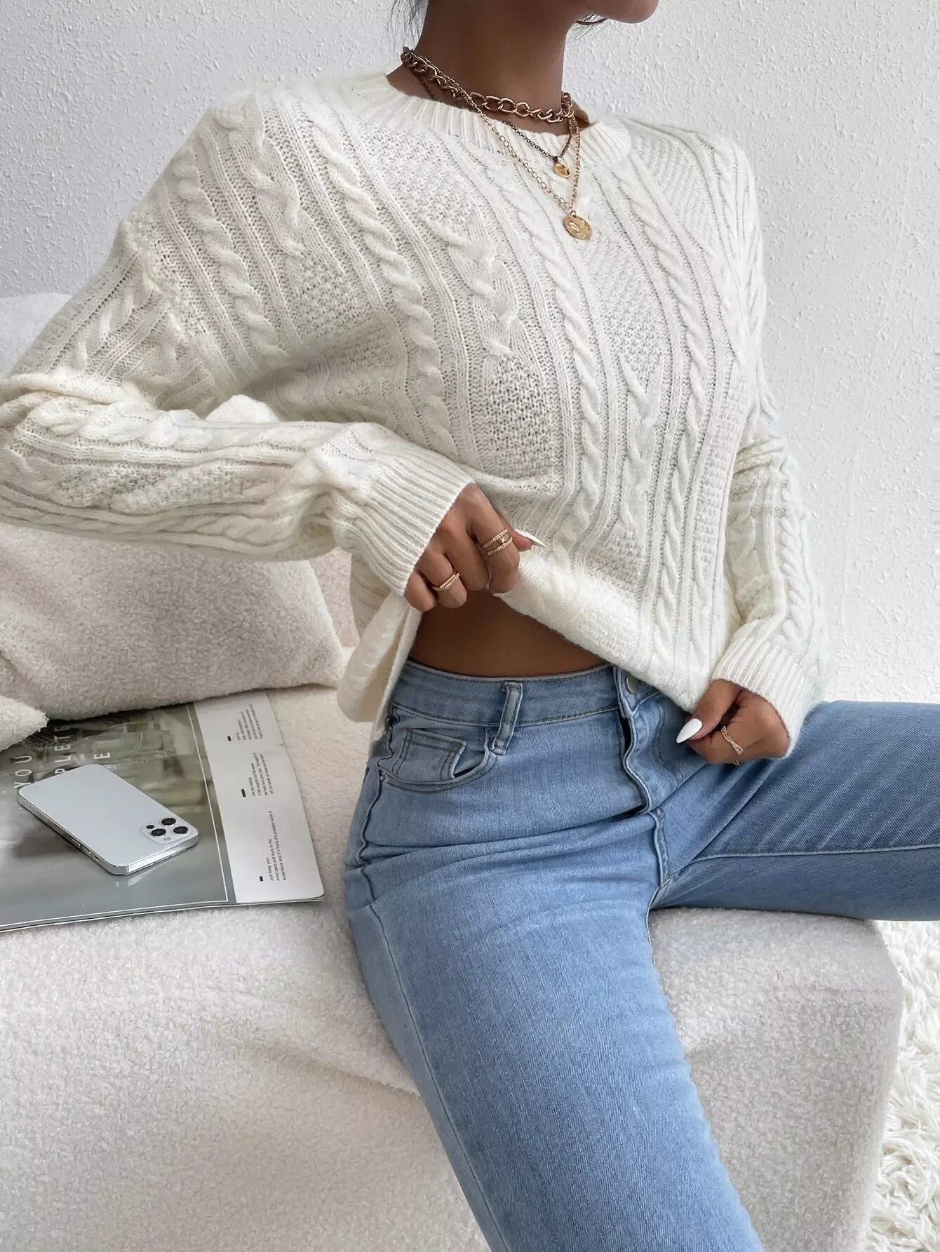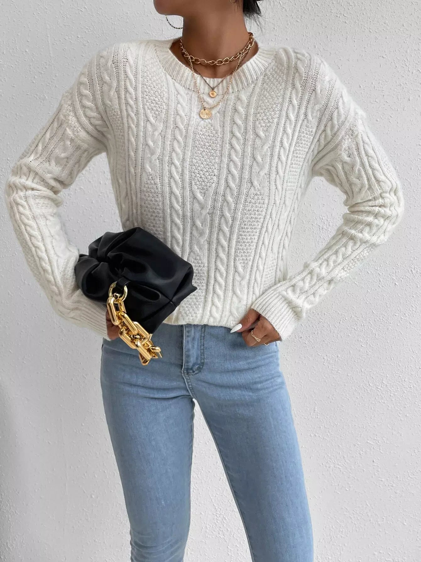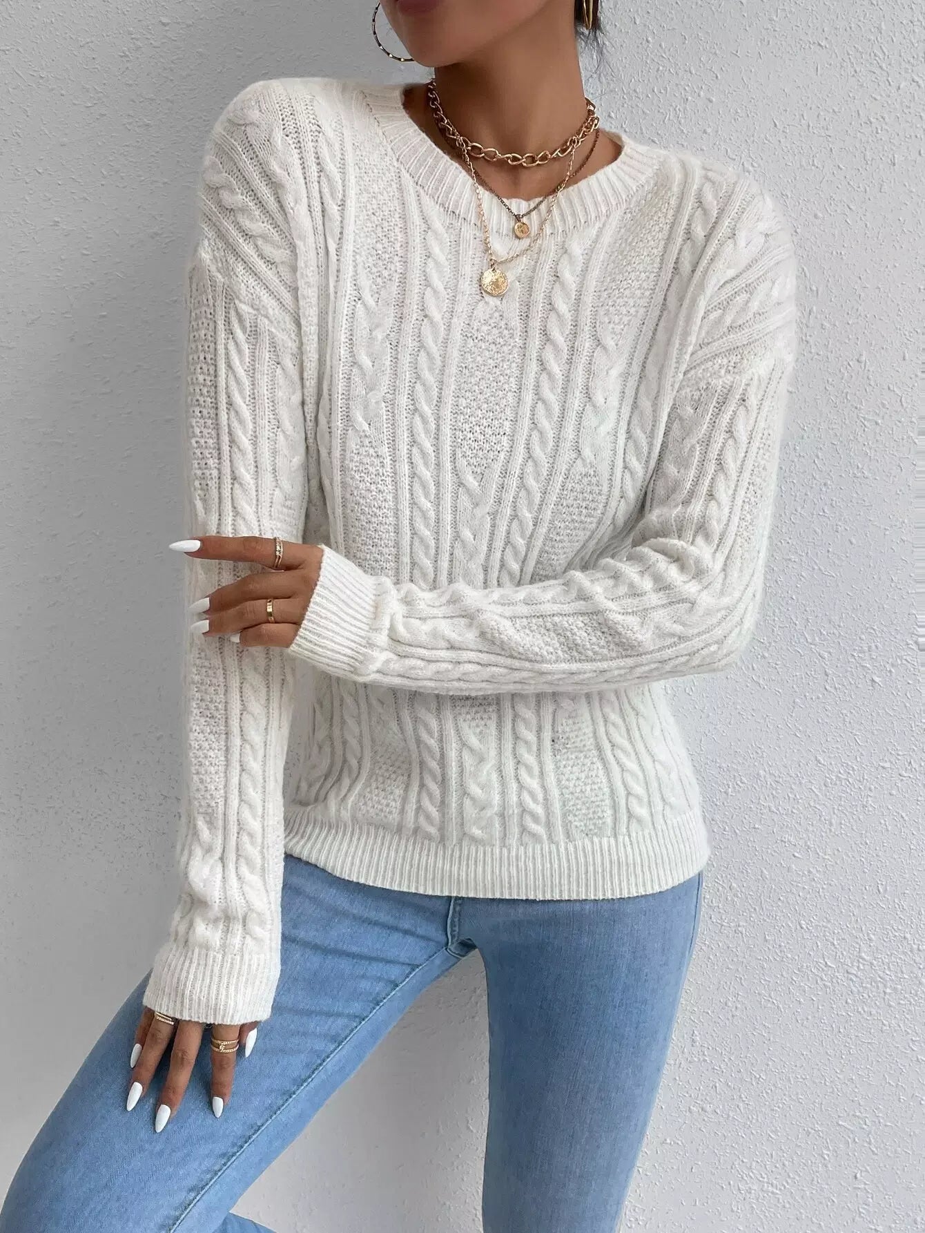 سترة كابل محبوكة منسدلة الكتفين
