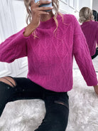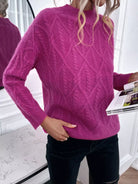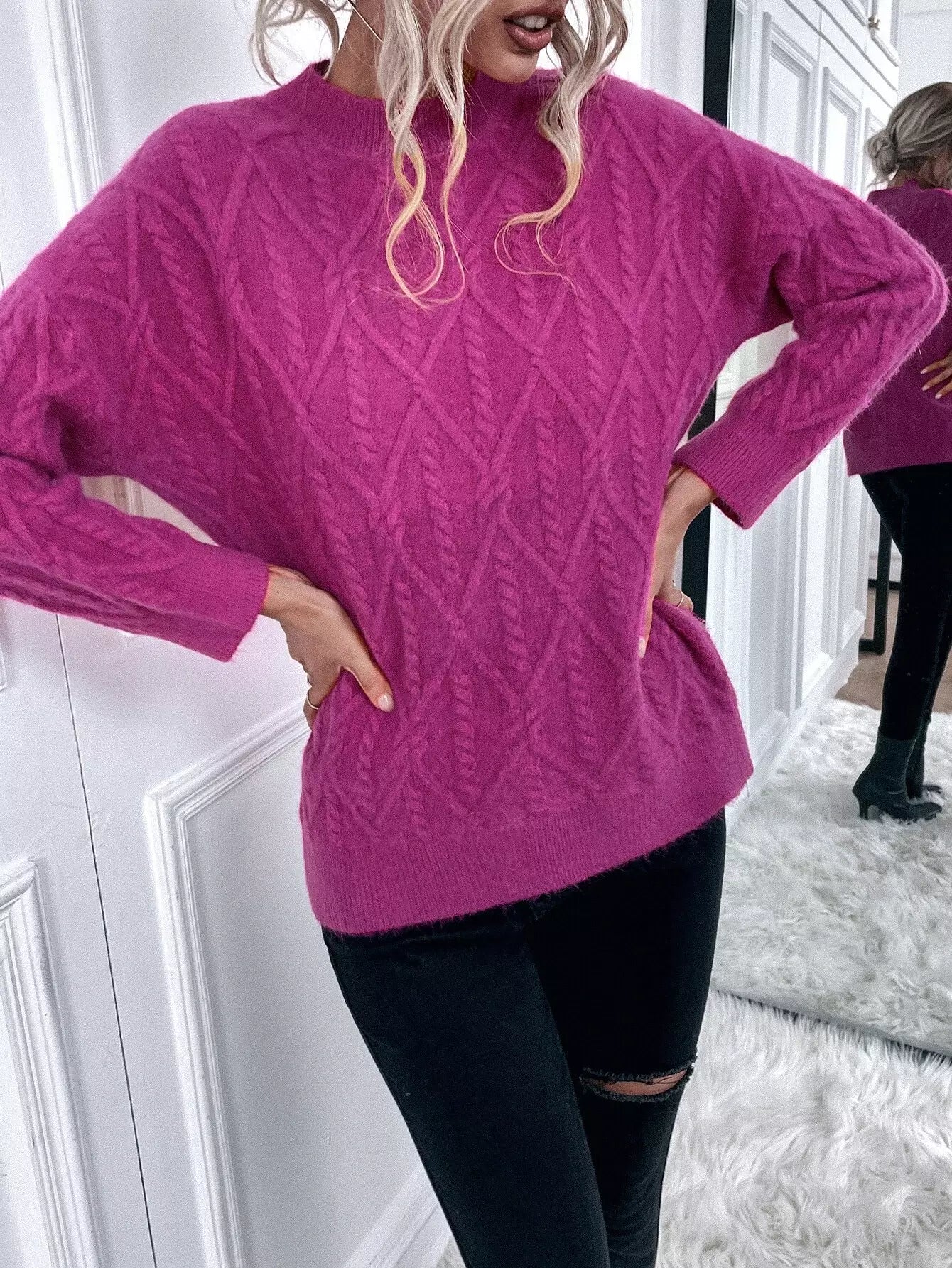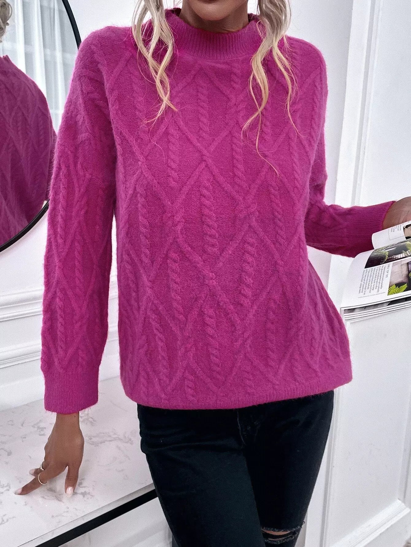 كنزة برقبة كبلية محبوكة برقبة منسدلة على الكتفين