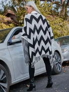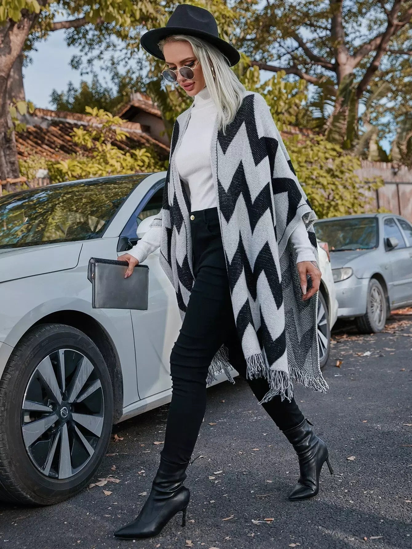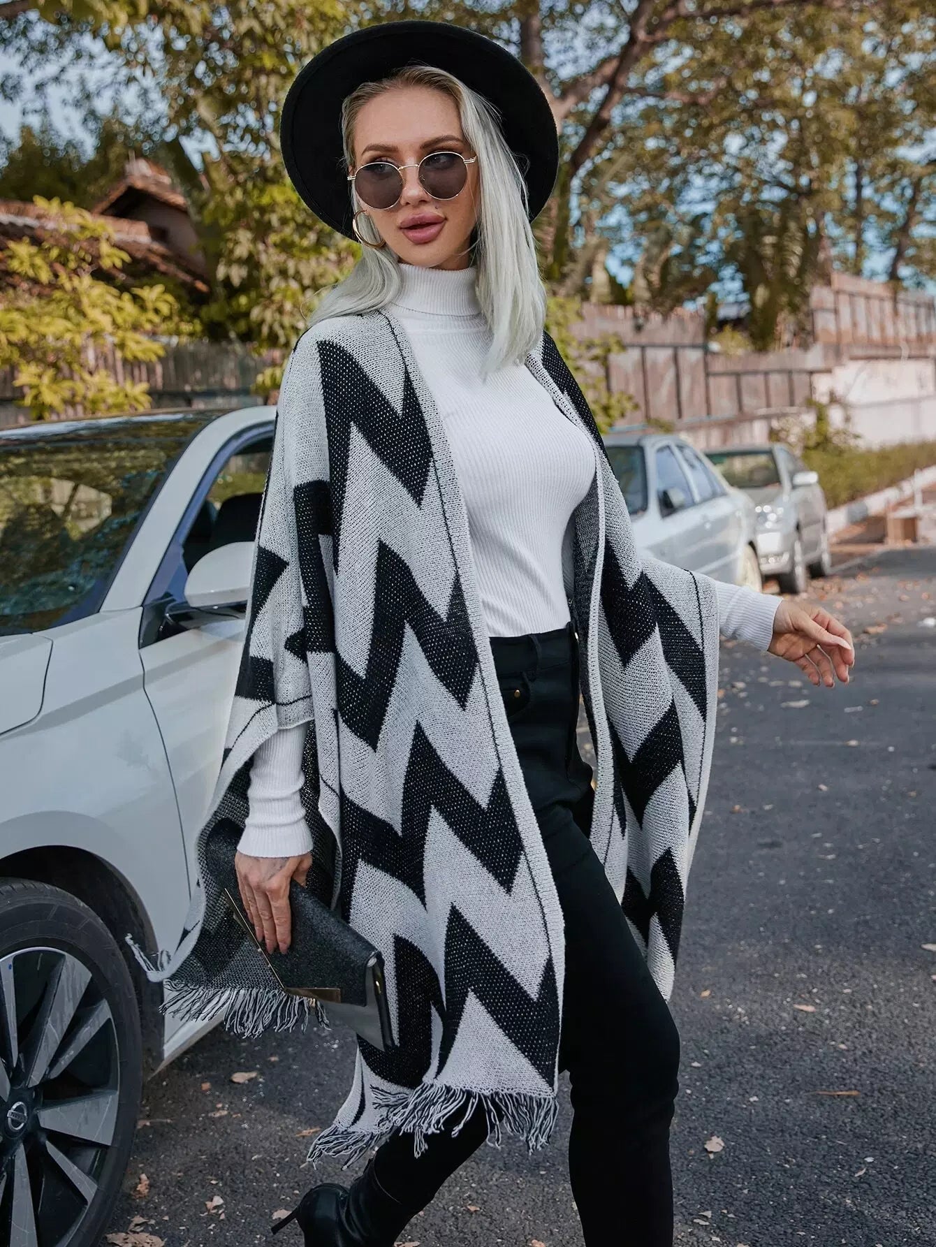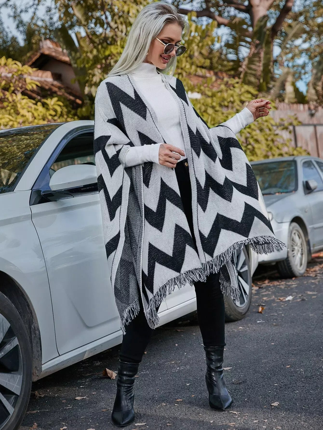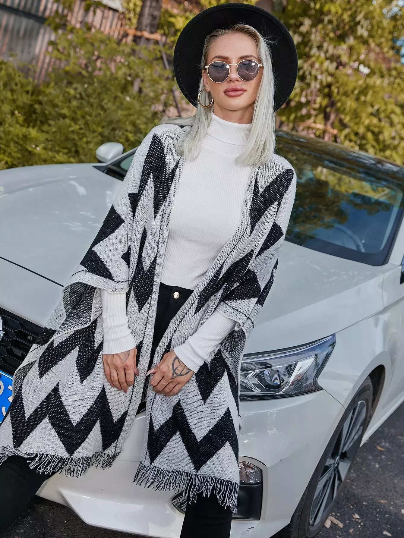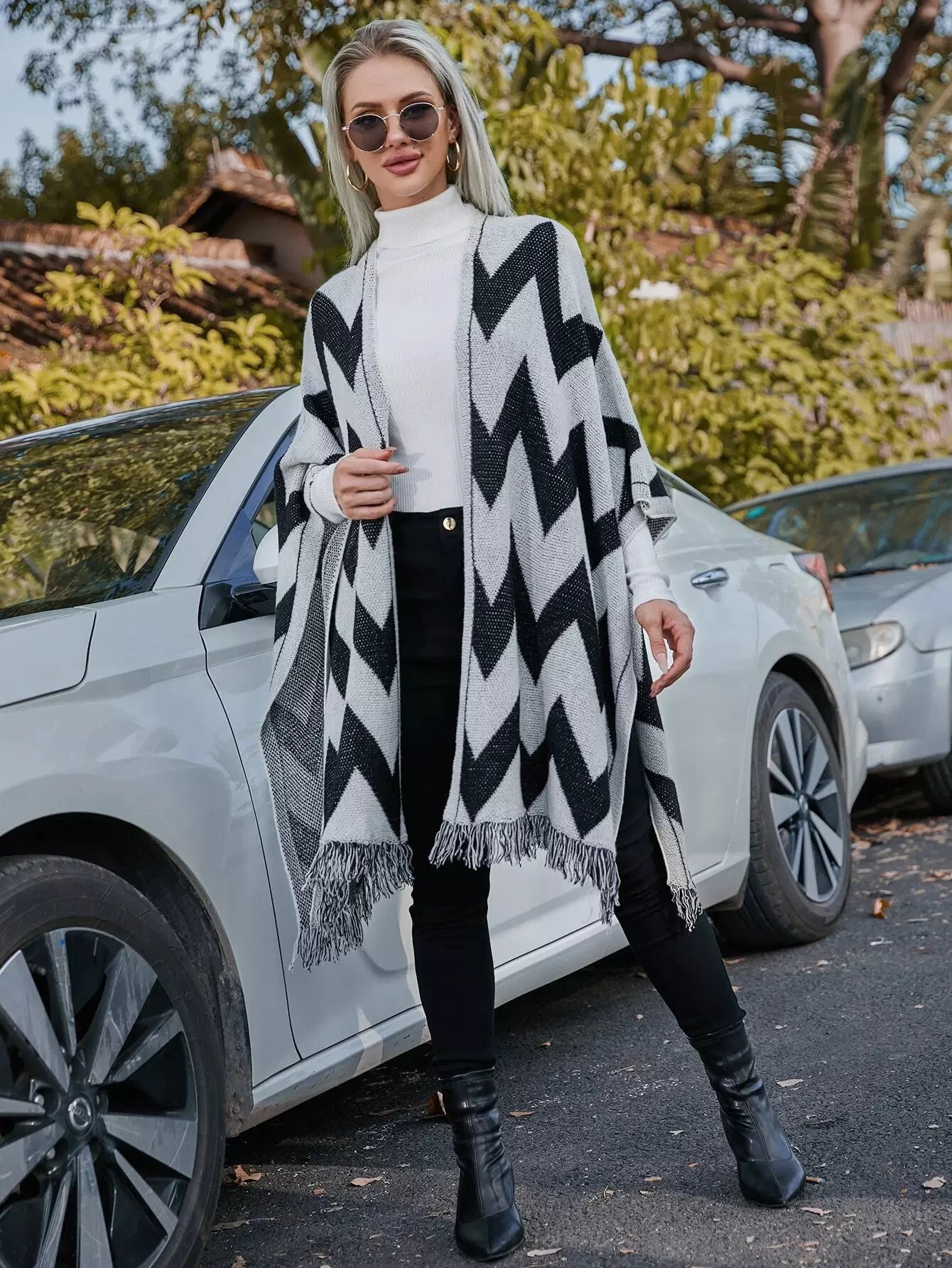 كارديجان مطرز بنقشة شيفرون مزين بشراشيب