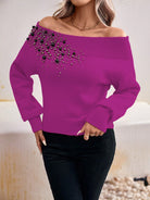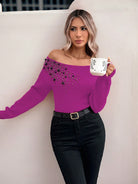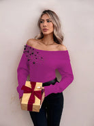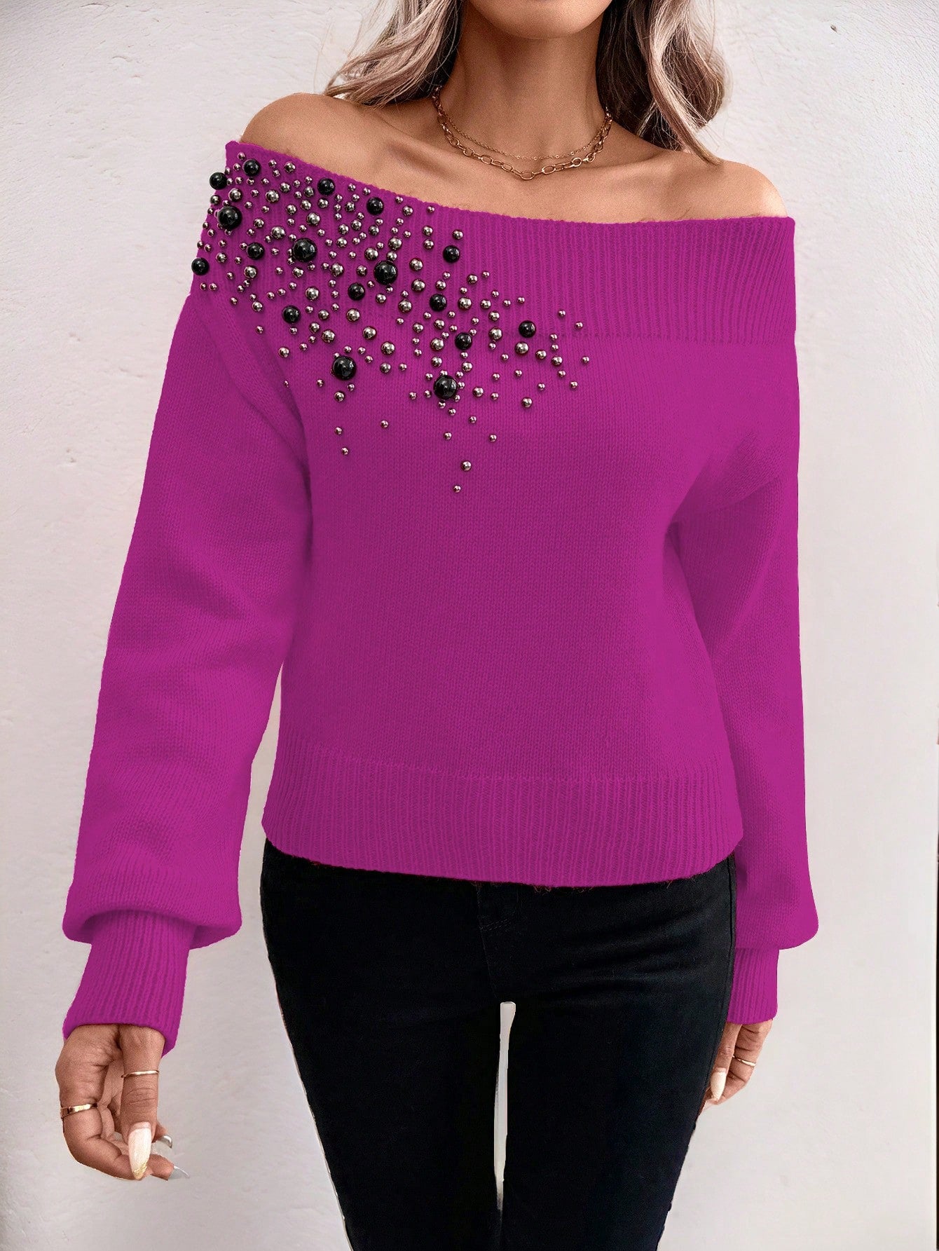 Clasi Women Off Shoulder Studded Knitted Sweater, Minimalist & Fashionable For Casual Daily Wear Fall