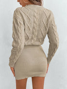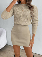 Clasi Women Plain Crew Neck Long Sleeve Minimalist Short Knit Sweater Dress, Casual Daily Wear