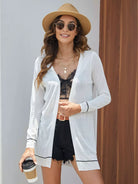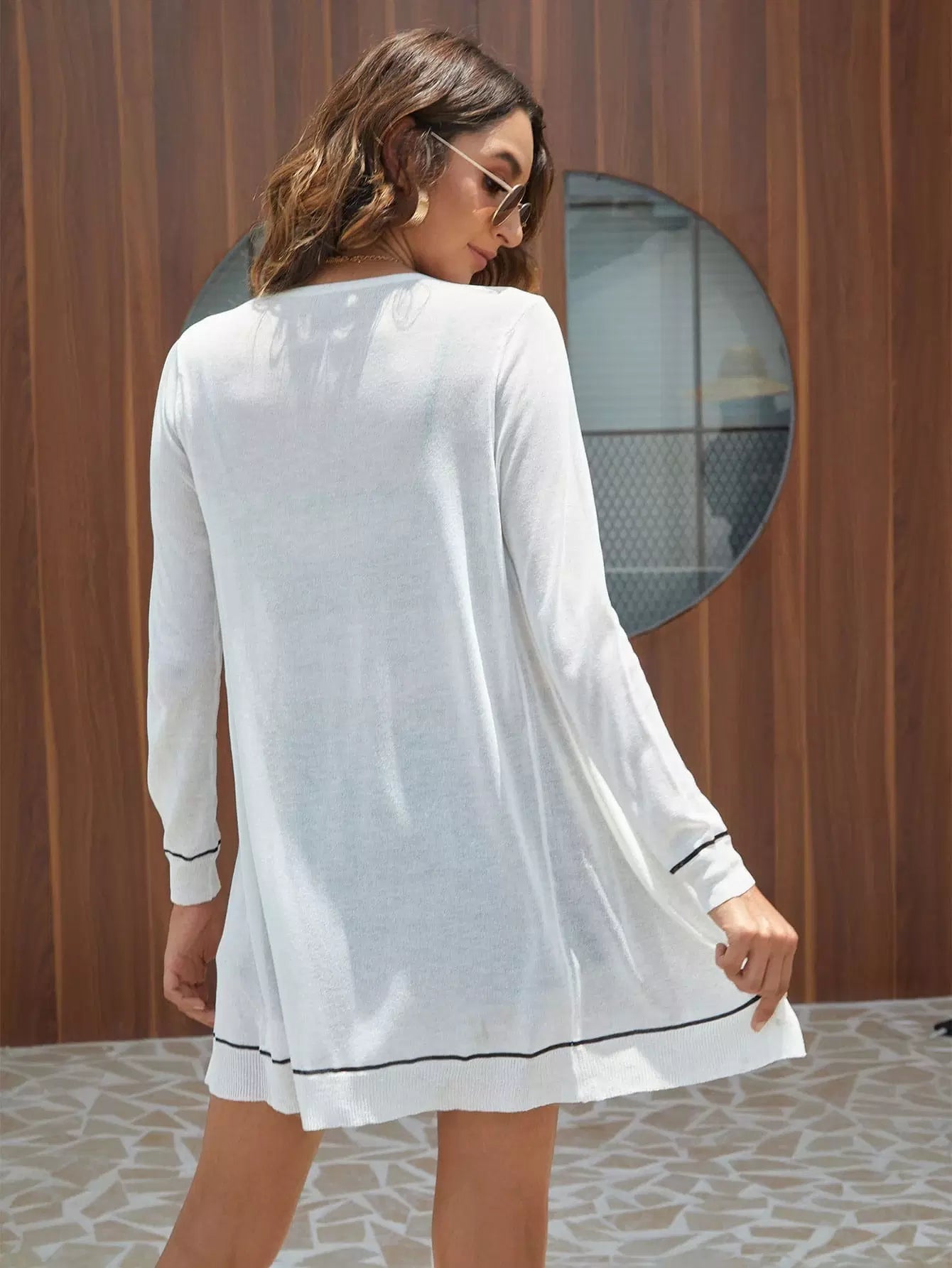 سترة صوفية مفتوحة من الأمام بربط بلون مغلف بلون مغاير